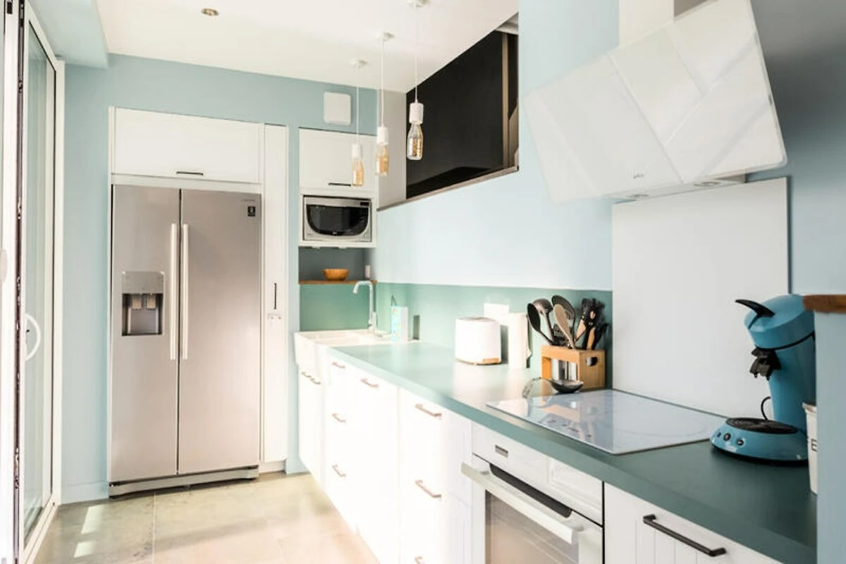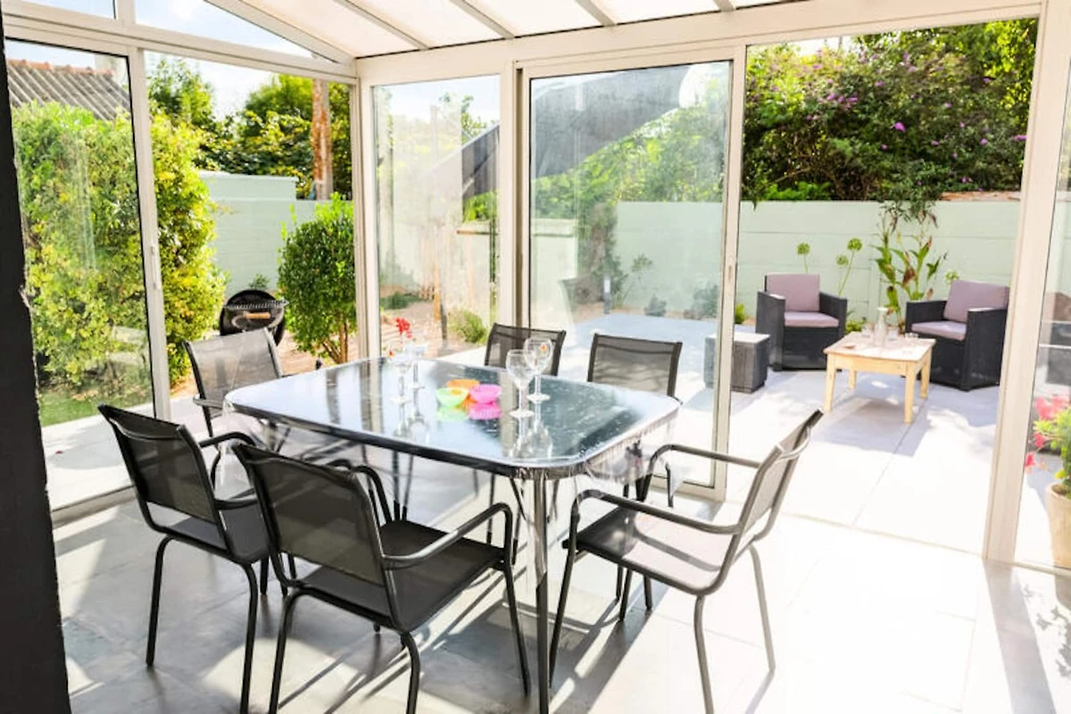 Das 115 m² große Haus bietet mit seinen drei geschmackvoll eingerichteten Schlafzimmern, einem gemütlichen Wohnzimmer mit Fernseher und einer voll ausgestatteten Küche mit modernen Geräten wie amerikanischem Kühlschrank, Mikrowelle, Backofen und Geschirrspüler bequem Platz für bis zu sechs Gäste. Es verfügt außerdem über zwei Badezimmer, eines davon mit einem separaten Waschraum mit Waschmaschine und Trockner. Die geräumige Veranda, die sonnige Terrasse und der private Garten bieten den perfekten Rahmen für unvergessliche Momente mit der Familie, ob beim morgendlichen Kaffee oder einem Abend unter dem Sternenhimmel.