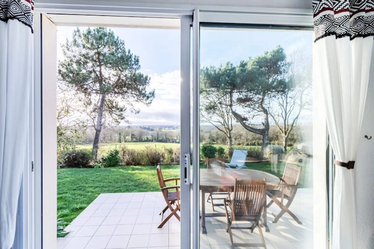 Das geräumige, 110 m² große Haus bietet bequem Platz für bis zu sechs Gäste und ist somit perfekt für Familien oder Freundesgruppen. Mit drei gemütlichen Schlafzimmern, einer hellen und offenen Küche im amerikanischen Stil und einer komplett ausgestatteten Inneneinrichtung mit modernen Geräten wie Geschirrspüler, Mikrowelle und Nespresso-Kaffeemaschine finden Sie alles, was Sie für einen erholsamen Aufenthalt benötigen. Die luftigen Wohnräume öffnen sich zu einer 30 m² großen Terrasse, auf der Sie inmitten des üppigen Grüns Ihres privaten Gartens Mahlzeiten im Freien vom Grill genießen können.
