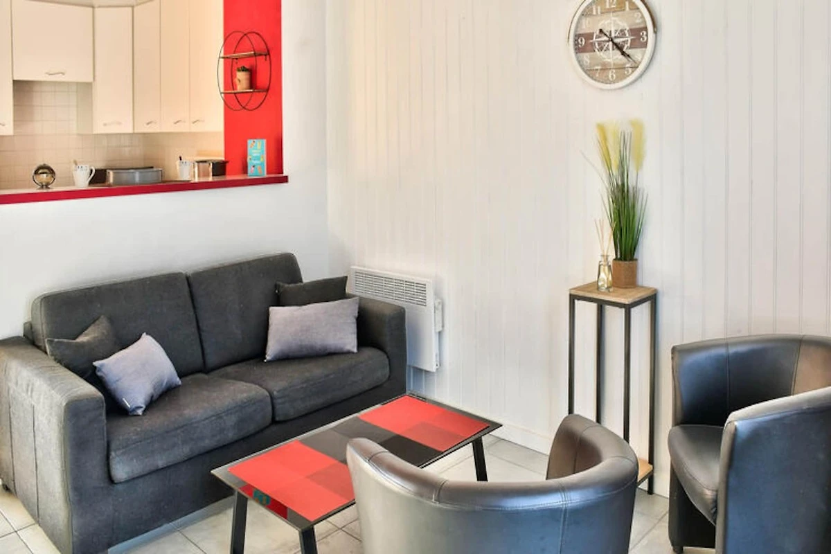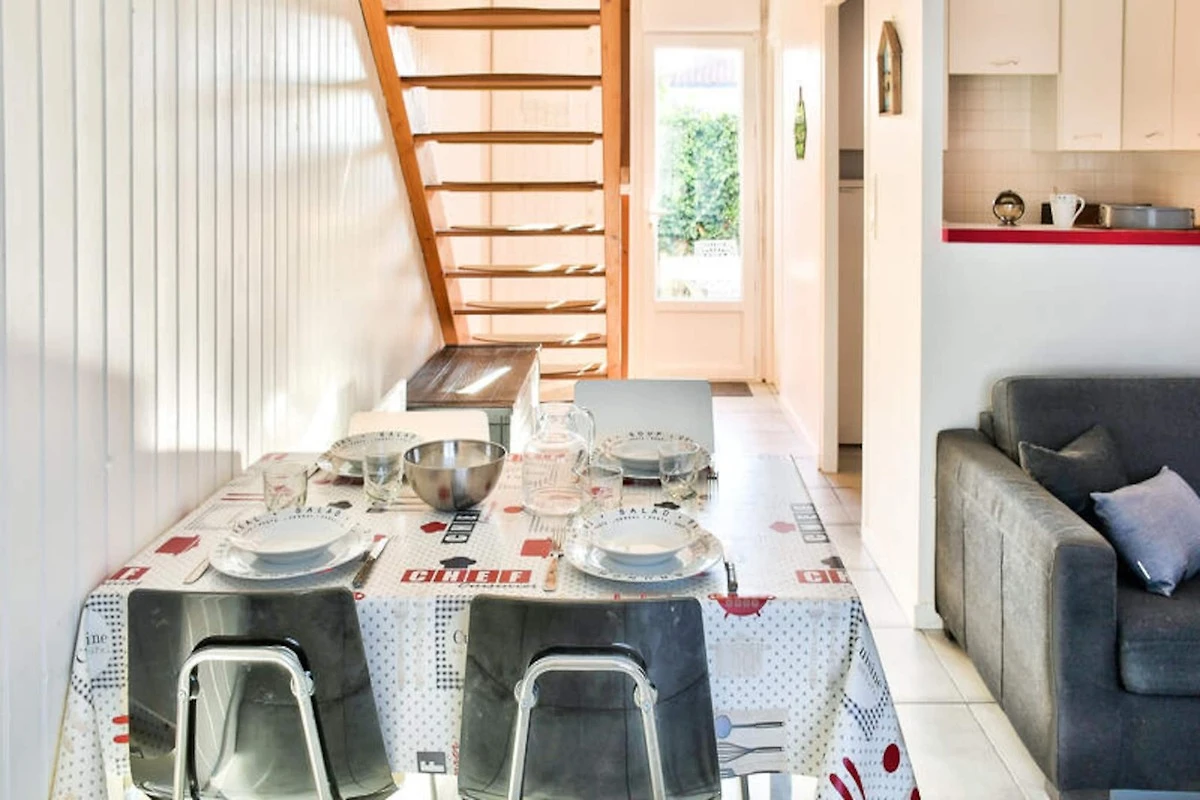In dem beschaulichen Küstenort Saint-Gilles-Croix-de-Vie bietet dieses charmante Familienhaus einen ruhigen Rückzugsort, nur wenige Minuten vom pulsierenden Herzen der Vendée entfernt. Mit seiner einladenden Terrasse und dem gemütlichen Interieur ist dieses Haus perfekt für einen erholsamen Urlaub, egal ob Sie die Sonne genießen oder die nahegelegenen Strände und Märkte erkunden möchten. Die ruhige Lage ist ideal zum Entspannen und dennoch sind alle Sehenswürdigkeiten der Umgebung bequem zu erreichen.