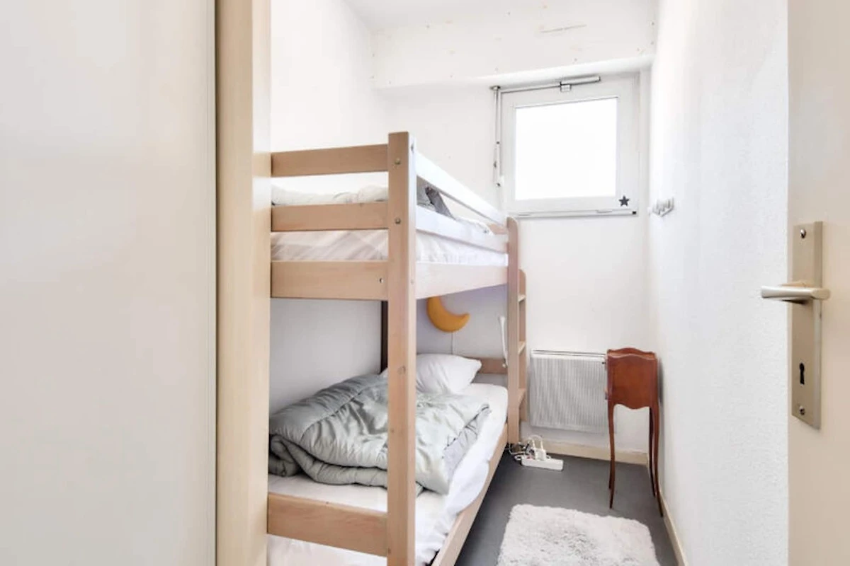 Das 42 m² große Apartment bietet Platz für bis zu vier Gäste. Die offene Küche mit modernen Geräten wie Induktionskochfeld, Kühlschrank, Mikrowelle, Backofen und Nespresso-Maschine geht fließend in den gemütlichen Wohn- und Essbereich über. Nach einem erlebnisreichen Tag können Sie den Tag bei einem gemeinsamen Essen oder einem Film auf dem Flachbildfernseher ausklingen lassen. Die Schlafgelegenheiten umfassen ein geräumiges Schlafzimmer mit Kingsize-Bett für erholsame Nächte und ein zweites Schlafzimmer mit Etagenbett, ideal für Kinder. Zusätzliche Annehmlichkeiten wie Badezimmer, Waschmaschine, privater Parkplatz und WLAN sorgen für einen komfortablen Aufenthalt.