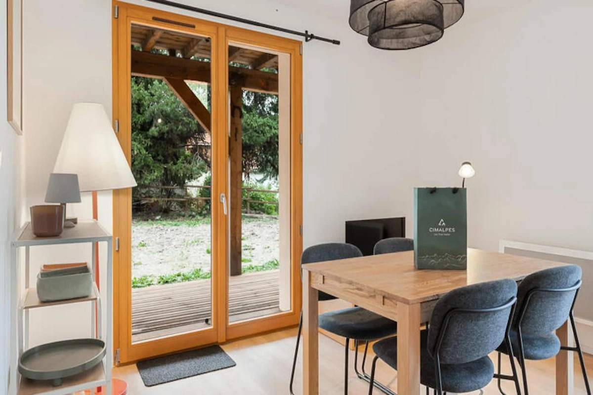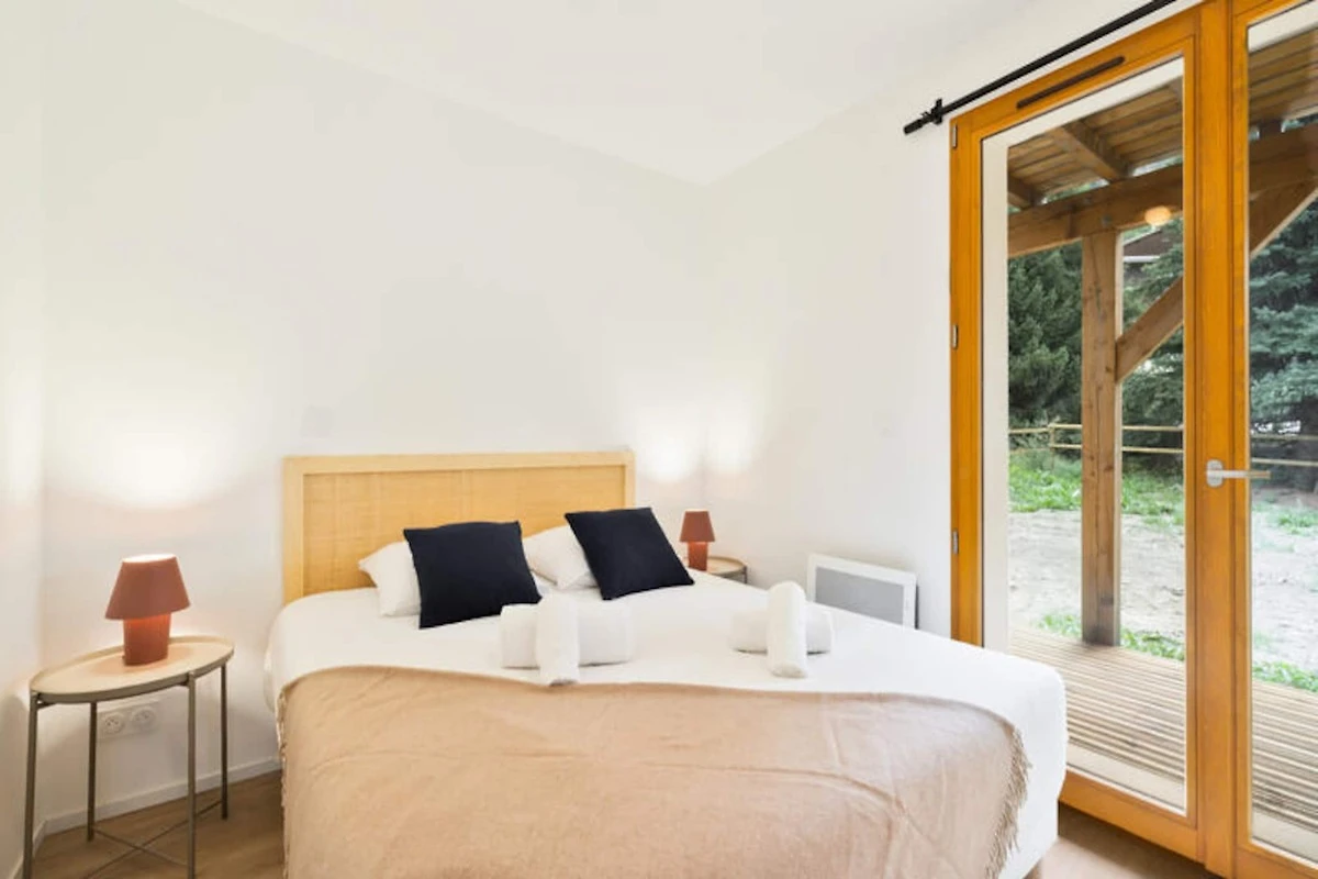 Im malerischen Dorf Monêtier-les-Bains, wo alpiner Charme auf modernen Luxus trifft, lädt die Résidence Violaine Sie zu einem unvergesslichen Bergurlaub ein. Das ehemalige Hotel, heute ein exklusiver Apartmentkomplex mit Service, bietet eine harmonische Verbindung von Komfort und Stil. Stellen Sie sich vor, Sie erwachen mit der frischen Bergluft, treten auf Ihre private Terrasse und genießen die friedliche Schönheit der umliegenden Gipfel. Ob Winterabenteuer oder Sommerurlaub – diese Residenz ist Ihr Tor zu unvergesslichen Momenten. \n\nOréade, im Gartengeschoss gelegen, ist ein helles und einladendes Apartment für bis zu 4 Erwachsene und 2 Kinder. Es verfügt über eine voll ausgestattete Küche mit angrenzendem, gemütlichem Essbereich, ein geräumiges Wohnzimmer mit direktem Gartenzugang und zwei elegante Doppelzimmer, eines davon mit eigenem Duschbad und Zugang zur Terrasse. Eine Schlafnische mit Etagenbett sorgt für zusätzlichen Spielspaß für die kleinen Gäste. Moderne Annehmlichkeiten wie ein Skischrank mit Schuhtrockner, private Außenparkplätze und Inklusivleistungen wie Bettwäsche, Badartikel und bezogene Betten bei Ankunft sorgen für einen unbeschwerten Aufenthalt. \n\nDirekt gegenüber befindet sich eine kostenlose Shuttlebus-Haltestelle, von der aus Sie bequem ins nur 400 Meter entfernte Ortszentrum und in nur 900 Meter zu den Skipisten gelangen. Im Winter lockt das renommierte Skigebiet Serre Chevalier, während der Sommer Wanderwege, Thermalbäder und atemberaubende Alpenlandschaften bietet. \n\nOb Sie Abenteuer oder Entspannung suchen – die Résidence Violaine bietet den perfekten Rahmen für unvergessliche Momente im Herzen der französischen Alpen.