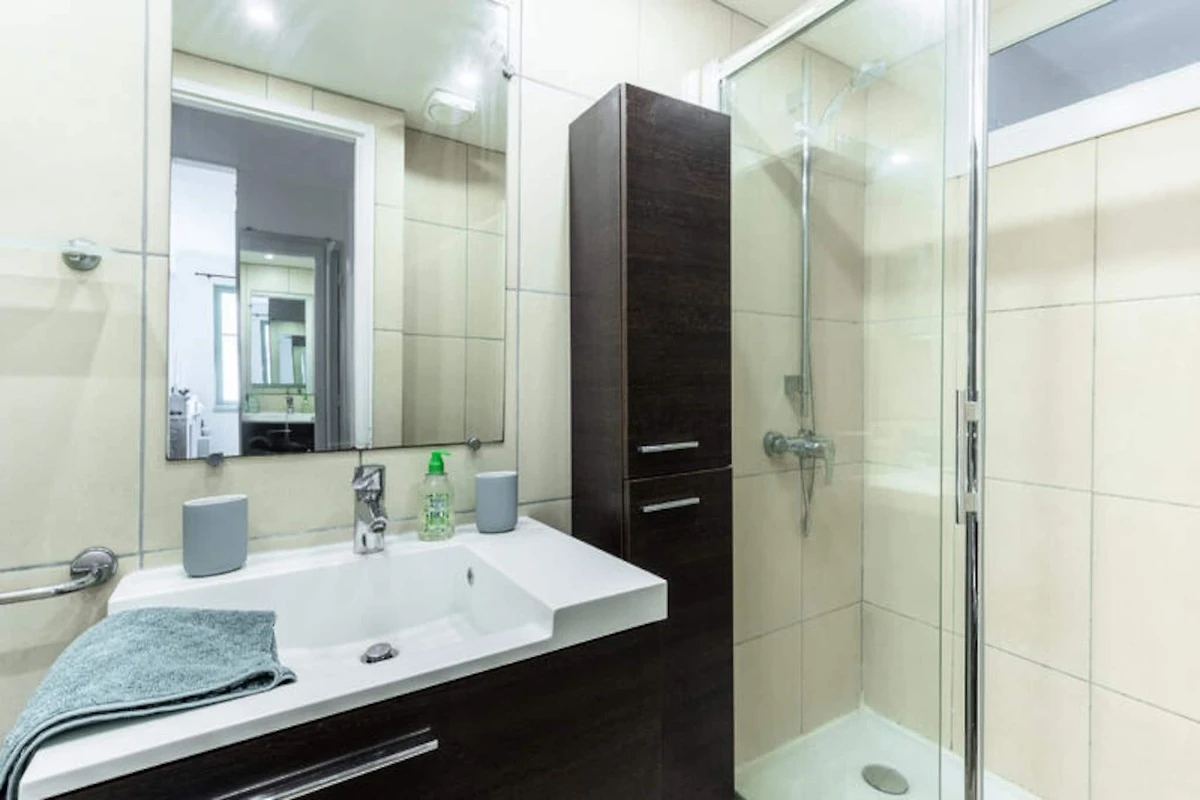 Treten Sie ein und entdecken Sie einen hellen und geschmackvoll eingerichteten Wohnbereich mit einem komfortablen Schlafsofa und einer offenen Küche, die mit allem ausgestattet ist, was Sie für die Zubereitung köstlicher Mahlzeiten benötigen. Das separate Doppelzimmer bietet einen ruhigen Ort zum Entspannen, und das moderne Duschbad sorgt für einen ebenso komfortablen wie stilvollen Aufenthalt. Dank Klimaanlage im Wohn- und Schlafzimmer fühlen Sie sich zu jeder Jahreszeit erfrischt. Doppelt verglaste Fenster bieten Ihnen eine Oase der Ruhe inmitten des pulsierenden Stadtlebens.