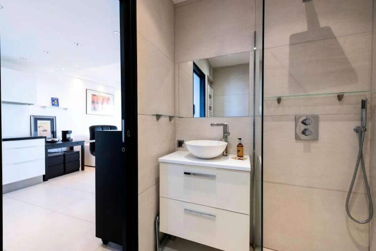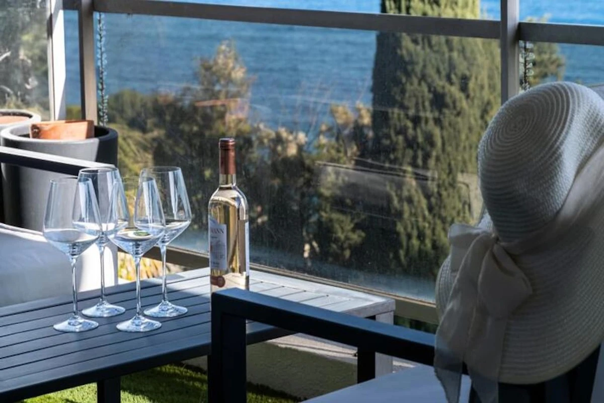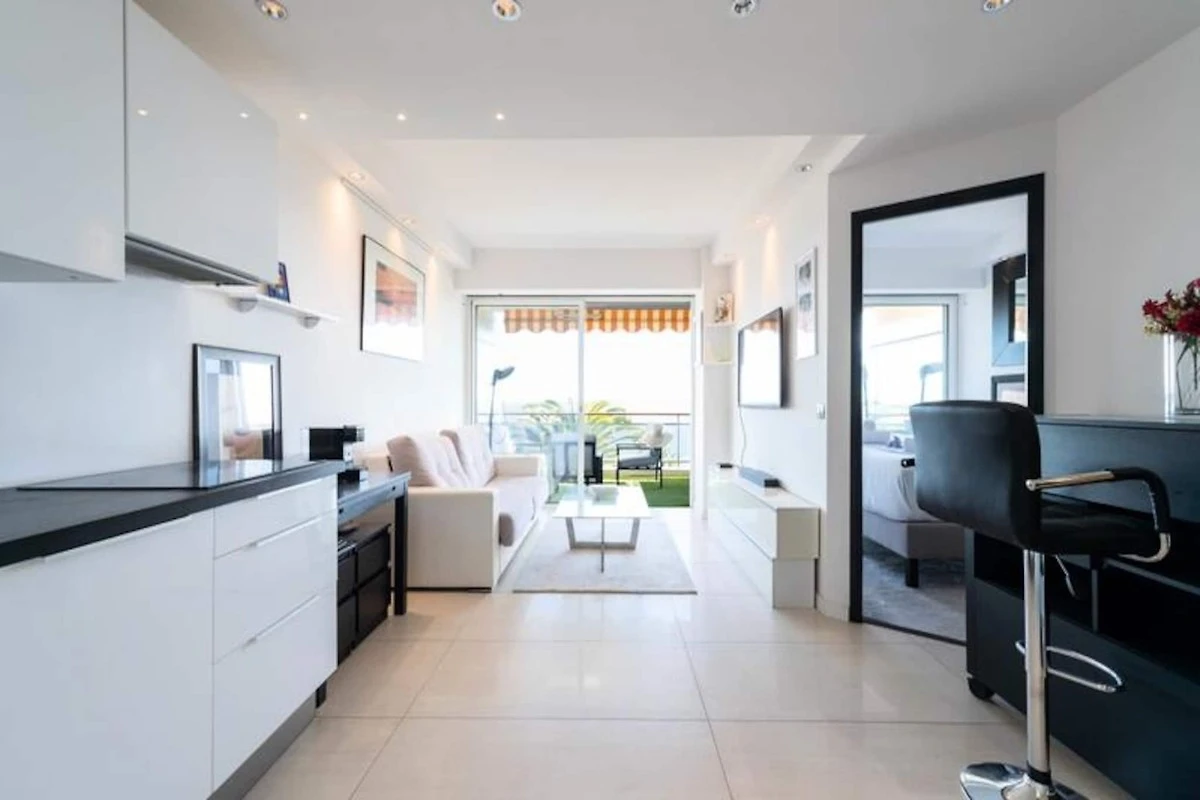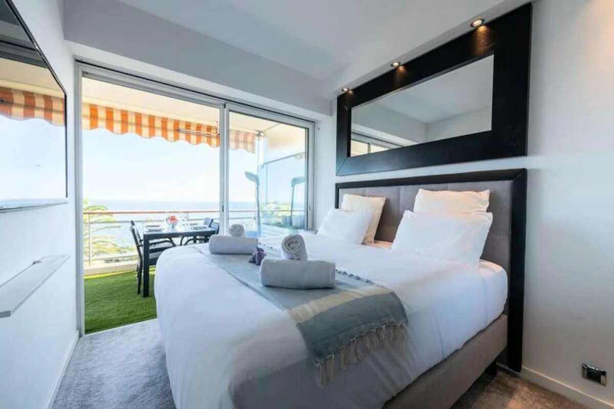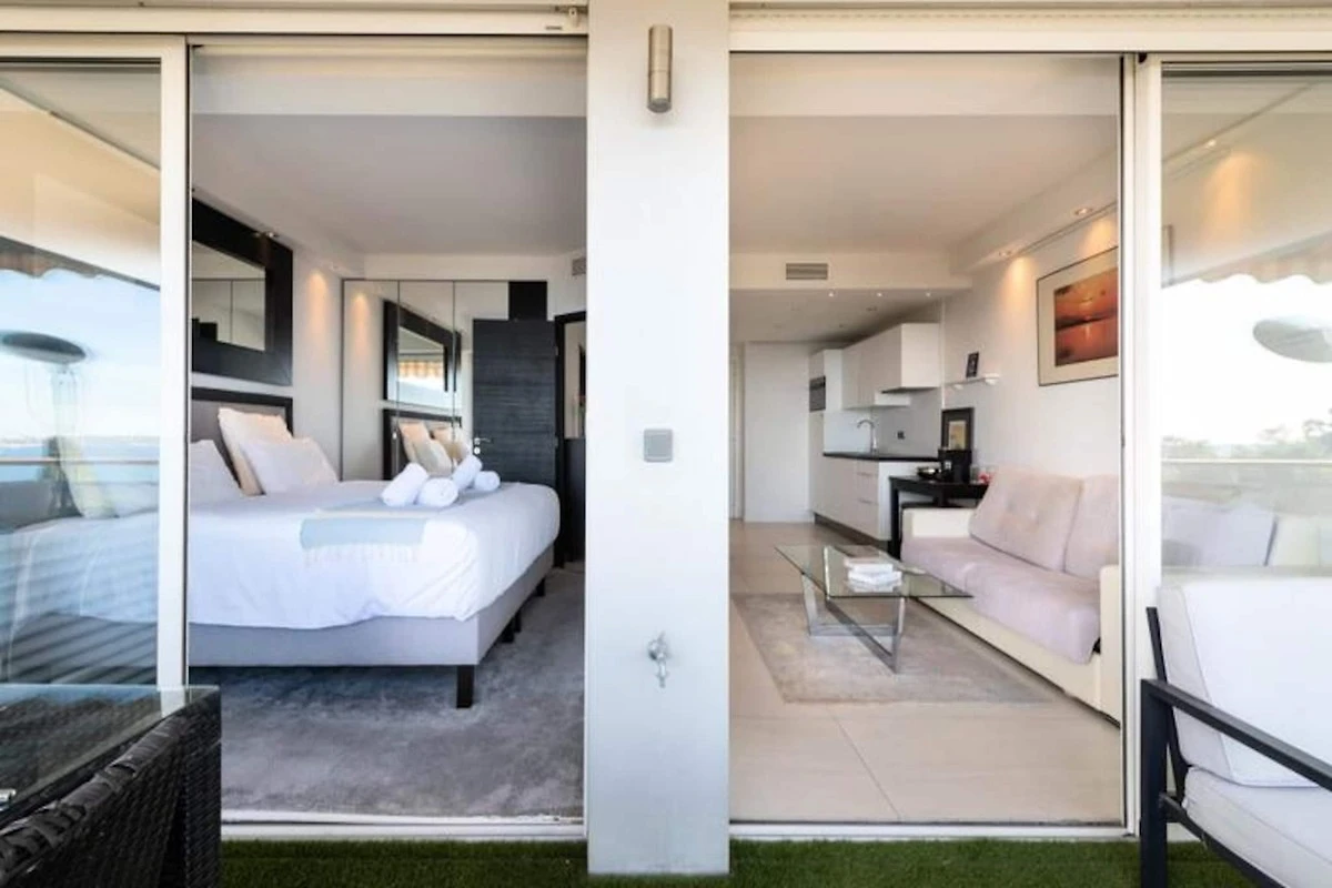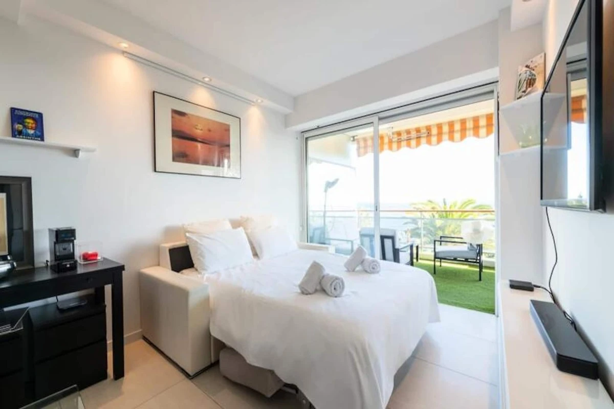 Hoch oben an einem sonnigen Hang mit Blick auf das glitzernde Mittelmeer bietet dieses elegante Apartment einen idyllischen Rückzugsort für Ihren Urlaub an der Côte d'Azur. Von der nach Süden ausgerichteten Terrasse genießen Sie einen ungestörten Blick auf das azurblaue Meer, die üppigen Gärten der Anlage und den einladenden Pool. Ob Sie Ihren Morgenkaffee genießen oder ein Abendessen im Freien verbringen – die Terrasse ist der perfekte Ort, um zu entspannen und die Schönheit der Côte d'Azur zu erleben. \n\nDas Apartment ist komfortabel und stilvoll eingerichtet. Der helle Wohnbereich verfügt über ein gemütliches Schlafsofa und einen Smart-TV, während die offene Küche komplett für die Zubereitung köstlicher Mahlzeiten ausgestattet ist. Das Schlafzimmer mit seinem luxuriösen Kingsize-Bett und direktem Zugang zur Terrasse sorgt für erholsame Nächte und entspannte Morgenstunden. Moderne Annehmlichkeiten wie WLAN und eine Klimaanlage mit Heiz- und Kühlfunktion im Wohn- und Schlafzimmer garantieren einen komfortablen Aufenthalt das ganze Jahr über. Das elegante Badezimmer mit ebenerdiger Dusche bietet Ihnen einen Hauch von Luxus für Ihren Alltag. Die Residenz selbst ist eine Oase der Entspannung mit einem großen Swimmingpool, Tennis- und Bouleplätzen sowie Tischtennisplatten. Ein privater Weg führt direkt zu einem abgeschiedenen Strand, der nur fünf Gehminuten entfernt liegt. Sichere Parkplätze, ein bewachter Eingang und ein Concierge-Service tragen zum Komfort und zur Exklusivität Ihres Aufenthalts bei. Dieses Apartment in Golfe-Juan ist der ideale Ausgangspunkt, um die Côte d’Azur zu erkunden. In wenigen Minuten erreichen Sie die luxuriösen Yachten des Hafens von Port Camille Rayon, können an Sandstränden entspannen oder in Restaurants am Meer speisen. Das nahegelegene Cannes bietet den Glamour des Palais des Festivals und den Charme von Le Suquet, während Antibes mit seiner historischen Altstadt und dem berühmten Picasso-Museum lockt. Ob Sie Entspannung, Kultur oder Abenteuer suchen – dieses Apartment ist der ideale Ausgangspunkt für einen unvergesslichen Urlaub.
