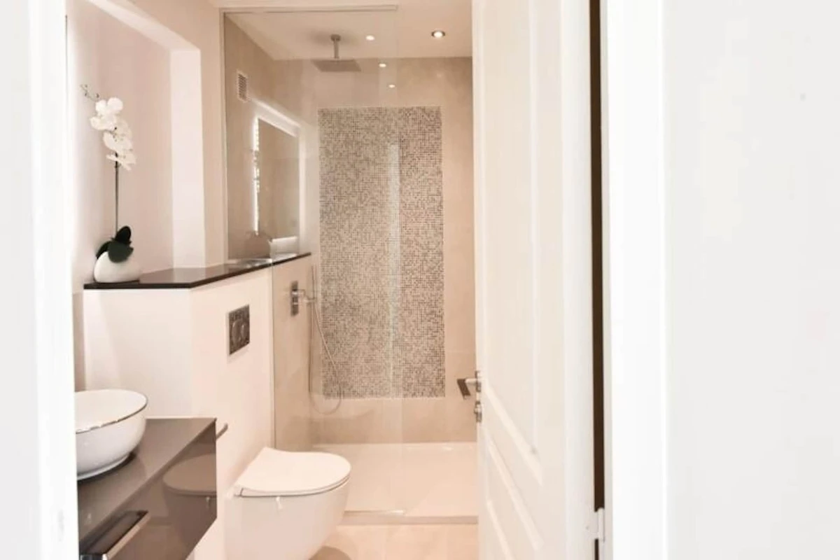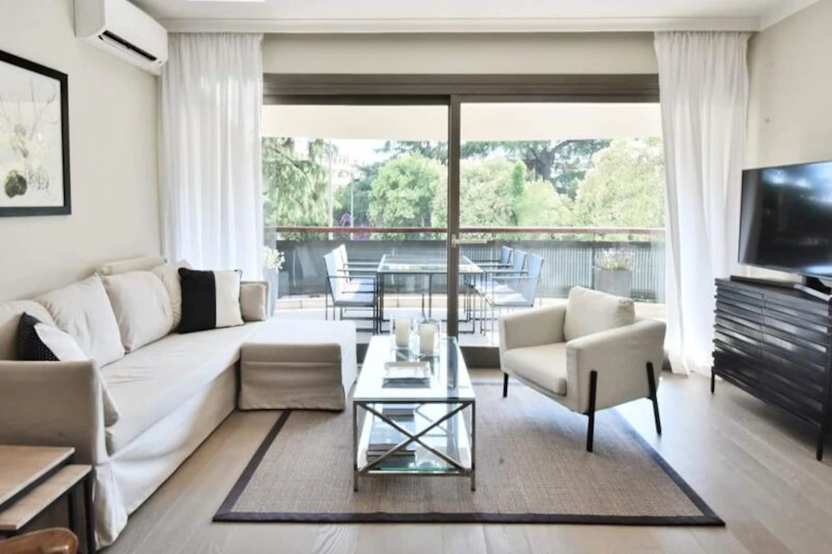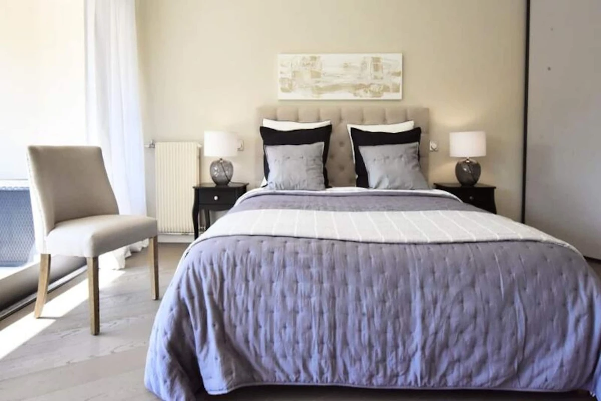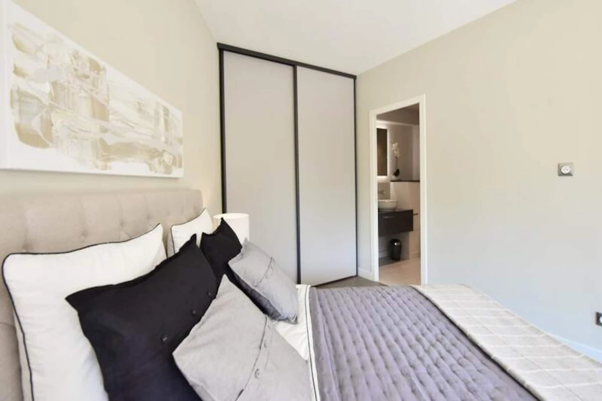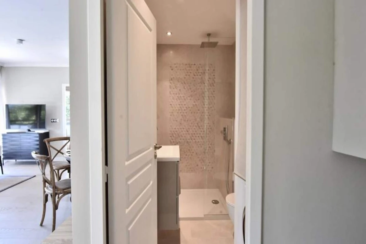 Tauchen Sie ein in eine Welt voller Eleganz und Komfort in diesem wunderschön renovierten Apartment im Herzen von Cannes. Entworfen von erfahrenen Innenarchitekten, bietet dieses helle und luftige Juwel die perfekte Mischung aus moderner Raffinesse und mediterranem Charme. Ob Sie geschäftlich oder privat reisen, die erstklassige Lage und die durchdachten Annehmlichkeiten versprechen einen unvergesslichen Aufenthalt. Stellen Sie sich vor, wie Sie morgens vom sanften Sonnenlicht geweckt werden, das durch die großen Fenster fällt, Ihr Frühstück auf der weitläufigen Terrasse genießen und nur wenige Minuten zur berühmten Croisette schlendern. Dies ist Ihr Tor zum Besten von Cannes. \n\nDas Apartment verfügt über zwei ruhige Schlafzimmer, jeweils mit einem Queensize-Bett und viel Stauraum. Das erste Schlafzimmer bietet ein eigenes Duschbad und direkten Zugang zur Terrasse – ideal, um sonnige Morgenstunden zu genießen. Das zweite Schlafzimmer bietet denselben Komfort, mit einem Duschbad in unmittelbarer Nähe. Der offene Wohnbereich ist ein echtes Highlight: eine gemütliche Lounge mit Smart-TV, ein Essbereich für vier Personen und eine voll ausgestattete Küche mit Backofen und Geschirrspüler. Highspeed-WLAN und eine Klimaanlage mit Heiz- und Kühlfunktion sorgen ganzjährig für angenehmen Komfort. \n\nEntdecken Sie das lebhafte Viertel Montfleury mit seinen charmanten Geschäften wie Bäckereien, Weinhandlungen und Blumenläden, die eine einladende, dörfliche Atmosphäre schaffen. Die Rue d’Antibes, das Stadtzentrum, erreichen Sie in nur 5 Gehminuten, die glamouröse Croisette mit ihren Stränden in 10 Minuten. Für Reisende mit Bahn oder Flugzeug ist die Unterkunft ideal gelegen, in der Nähe des Bahnhofs Cannes und des Flughafens Nizza Côte d’Azur. \n\nMit seiner sicheren Anlage, dem großen Gemeinschaftsparkplatz und dem Concierge-Service ist dieses Apartment die ideale Wahl für einen unkomplizierten und luxuriösen Aufenthalt in Cannes. Ob Filmfestival, romantischer Kurzurlaub oder erholsamer Urlaub – diese Unterkunft ist der perfekte Rückzugsort.