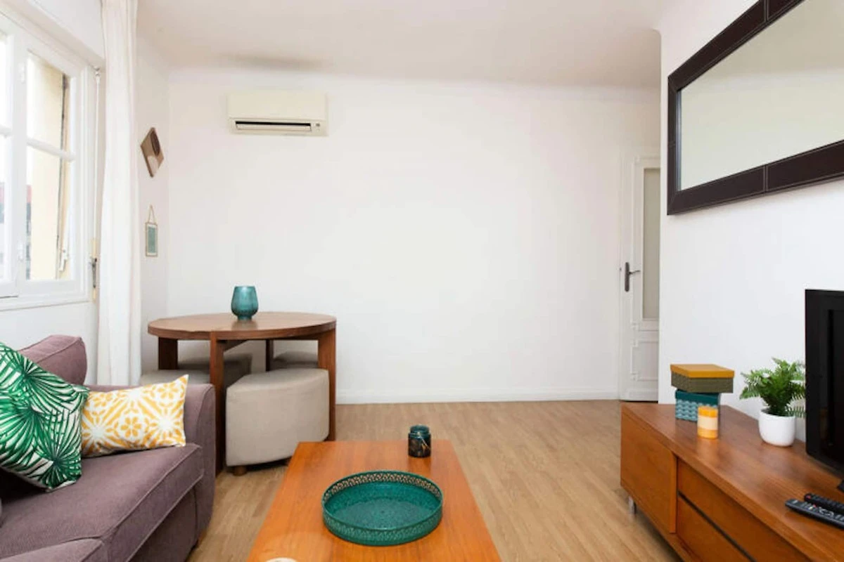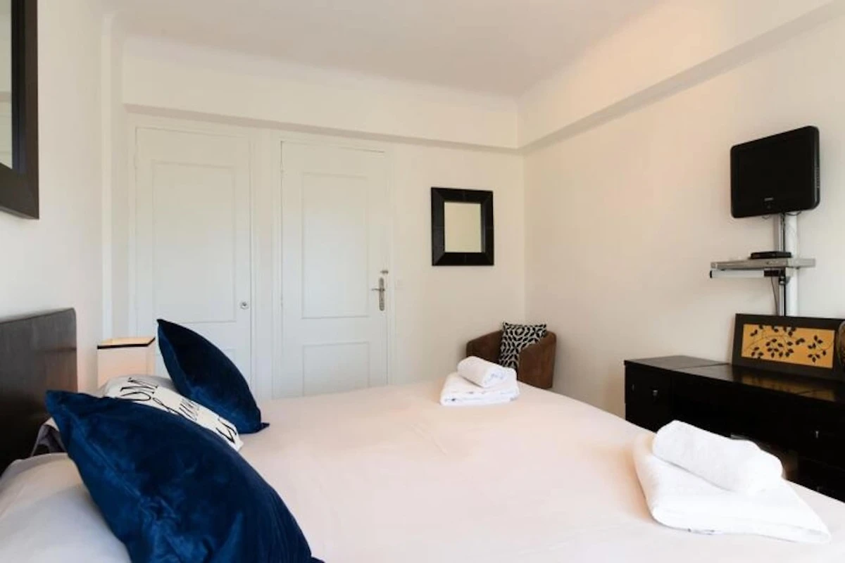 Treten Sie ein in das Herz von Cannes und genießen Sie die Eleganz dieses 70 m² großen Apartments mit zwei Schlafzimmern in perfekter Lage am Anfang der Rue d'Antibes. Mit seinem warmen und einladenden Ambiente bietet diese Residenz einen ruhigen Rückzugsort inmitten des pulsierenden Stadtlebens. Ob romantischer Kurzurlaub oder Familienurlaub – das durchdachte Design und die erstklassige Lage versprechen einen unvergesslichen Aufenthalt. Stellen Sie sich vor, wie Sie morgens vom sanften Sonnenlicht geweckt werden, Ihren Kaffee auf dem privaten Balkon genießen und Ihren Tag im glamourösen Ambiente von Cannes planen. \n\nDas Apartment verfügt über ein geräumiges Wohnzimmer mit bequemen Sitzgelegenheiten, einem Flachbildfernseher und einem Esstisch für vier Personen – der perfekte Ort zum Entspannen nach einem erlebnisreichen Tag in der Stadt. Die separate Küche ist mit modernen Geräten wie Wasserkocher, Toaster und Frühstückstisch ausgestattet und lädt zum Kochen und Genießen ein. Das Hauptschlafzimmer bietet ein Kingsize-Bett, einen Kleiderschrank, einen Flachbildfernseher und einen privaten Balkon, während das zweite Schlafzimmer mit zwei Einzelbetten, einem Schreibtisch und viel Stauraum ausgestattet ist. Ein elegantes Duschbad und ein separates WC runden die Ausstattung ab und sorgen für Komfort während Ihres gesamten Aufenthalts. \n\nNur 10 Gehminuten vom Bahnhof Cannes und 30 Autominuten vom Flughafen Nizza Côte d'Azur entfernt, ist das Apartment bequem zu erreichen. Ein privater Parkplatz steht Ihnen nur 100 Meter entfernt zur Verfügung und trägt zu Ihrer entspannten Anreise bei. Schlendern Sie die Rue d'Antibes entlang und entdecken Sie exklusive Geschäfte, genießen Sie Gebäck und Cocktails in den nahegelegenen Cafés oder bewundern Sie die berühmte Croisette und den Palais des Congrès. Auch das Altstadtviertel Suquet ist schnell zu erreichen und bietet Ihnen einen Einblick in das reiche Erbe von Cannes. \n\nOb Sie sich vom Charme der Côte d'Azur angezogen fühlen oder eine Auszeit vom Alltag suchen – dieses Apartment vereint modernen Komfort mit optimaler Anbindung an die beliebtesten Sehenswürdigkeiten von Cannes. Lassen Sie Ihren Traumurlaub hier beginnen.