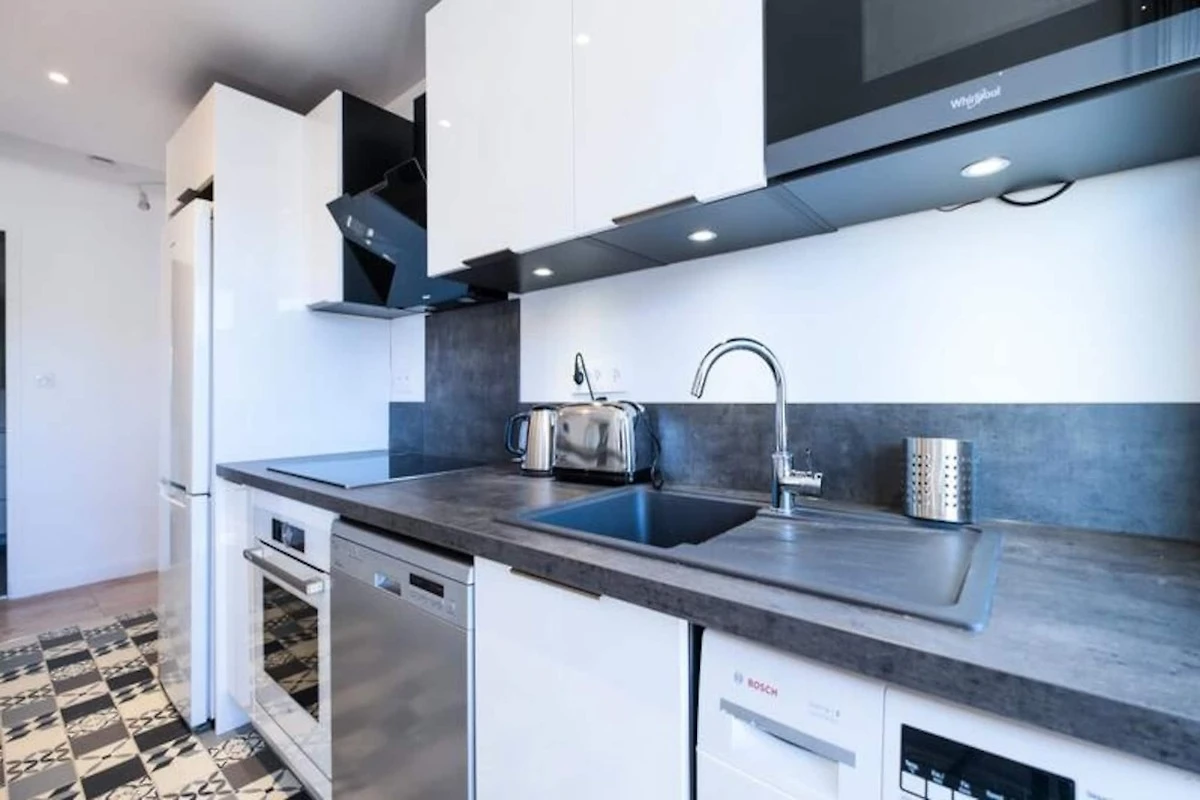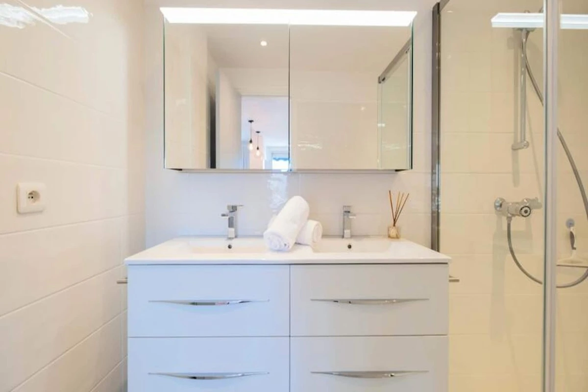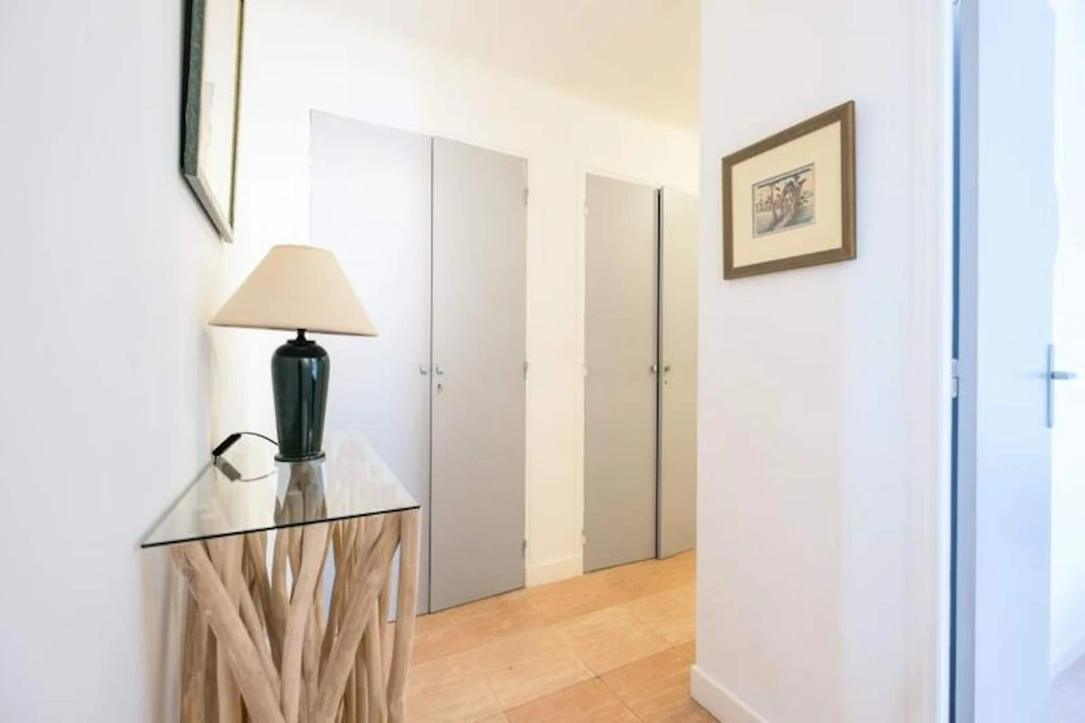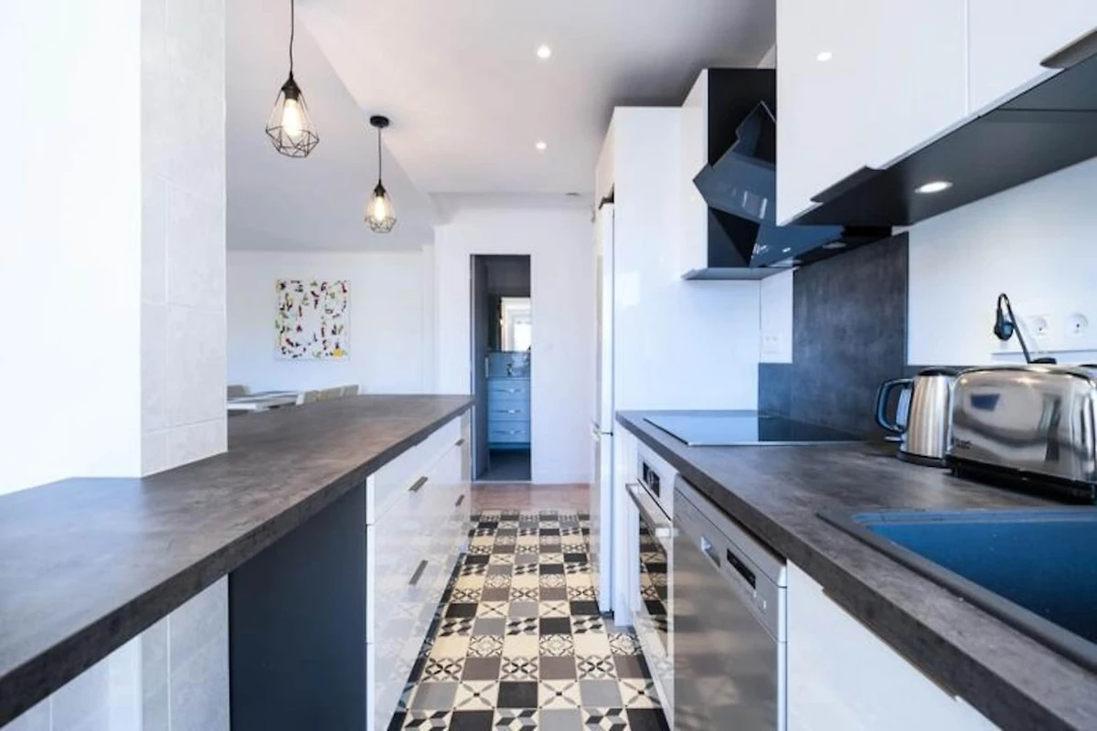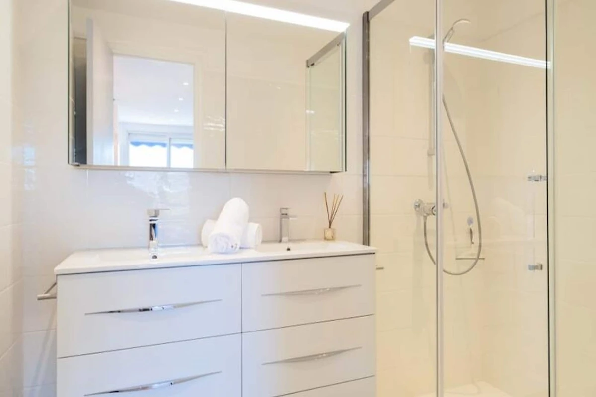 Eine sanfte Brise trägt den Duft des Mittelmeers herüber, wenn Sie die Terrasse dieses eleganten, 85 m² großen Apartments betreten, das sich in perfekter Lage im Herzen von Palm Beach, Cannes, befindet. Nur zwei Gehminuten vom Sandstrand Mouré Rouge entfernt, lädt Sie diese Unterkunft ein, den typischen Lebensstil der Côte d’Azur zu genießen. Ob Sie Ihren Morgenkaffee mit Blick aufs Meer schlürfen oder einen entspannten Spaziergang entlang der berühmten Croisette unternehmen – jeder Moment hier ist ein Fest des Küstencharmes. \n\nIm Inneren bietet das Apartment eine harmonische Verbindung von Komfort und Stil. Das geräumige Wohnzimmer öffnet sich zur nach Osten ausgerichteten Terrasse, ideal für ein sonniges Frühstück oder ruhige Nachmittage. Eine voll ausgestattete offene Küche ermöglicht die mühelose Zubereitung von Mahlzeiten, während zwei ruhige Schlafzimmer – jeweils mit Queensize-Betten, viel Stauraum und privatem Zugang ins Freie – erholsame Rückzugsorte bieten. Moderne Annehmlichkeiten wie Klimaanlage, WLAN und doppelt verglaste Fenster sorgen für einen ruhigen und komfortablen Aufenthalt. Das sichere Gebäude mit Fernzugriff und privatem Parkplatz für einen Kleinwagen bietet zusätzlichen Komfort für Ihren Urlaub. \n\nEntdecken Sie das lebhafte Viertel Palm Beach mit seinen charmanten Geschäften, Bäckereien und Restaurants in unmittelbarer Nähe. Spazieren Sie zum Strand Mouré Rouge für ein erfrischendes Bad oder entspannen Sie bei einem Cocktail auf einer Terrasse am Meer. Die berühmte Croisette mit ihrem Karussell und den Bootsrennen erreichen Sie in nur fünf Minuten zu Fuß, während die historischen Straßen von Le Suquet und der Panoramablick von Notre-Dame d’Espérance bequem mit dem Auto erreichbar sind. \n\nOb Sie sonnige Tage am Meer, kulinarische Genüsse oder kulturelle Entdeckungen suchen – dieses Apartment ist der perfekte Ausgangspunkt für einen unvergesslichen Urlaub an der Riviera. Lassen Sie sich vom Zauber von Cannes verzaubern und schaffen Sie Erinnerungen, die Sie für immer in Ihrem Herzen bewahren werden.