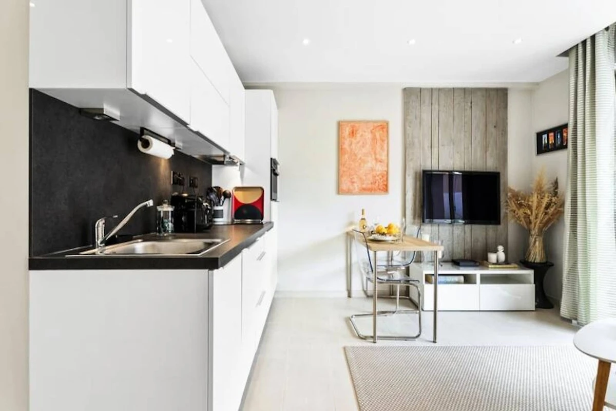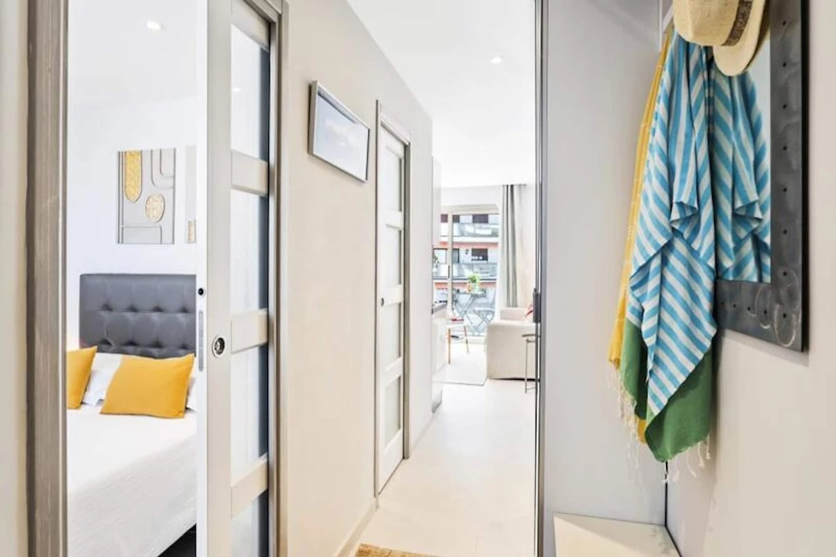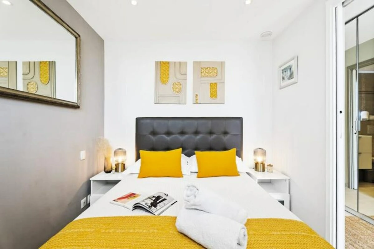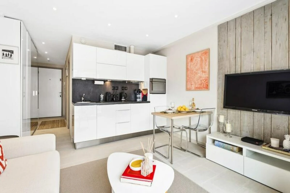 Erleben Sie den Charme von Cannes in diesem modernen und stilvollen Apartment, nur wenige Schritte von der berühmten Croisette entfernt. Genießen Sie Ihren Morgenkaffee oder einen abendlichen Aperitif auf der privaten Terrasse – ein ruhiger Ort, um die pulsierende Atmosphäre der Stadt aufzusaugen. Das mit viel Liebe zum Detail gestaltete Apartment vereint zeitgenössische Eleganz mit höchstem Komfort und ist somit der ideale Rückzugsort für Paare oder Alleinreisende, die einen stilvollen Urlaub im Herzen der Côte d’Azur verbringen möchten. \n\nIm Inneren erwartet Sie ein heller und luftiger Wohnbereich mit einem bequemen Sofa, einem Flachbildfernseher und einem Couchtisch, der sich raffiniert in einen Esstisch verwandeln lässt. Die offene Küche ist mit modernen Geräten wie einer Nespresso-Maschine, einem Wasserkocher und einem Toaster ausgestattet und bietet Ihnen alles für kulinarische Genüsse. Das Schlafzimmer verfügt über ein komfortables Doppelbett, und das Badezimmer bietet eine geräumige, ebenerdige Dusche für ein luxuriöses Ambiente. Doppelverglasung und eine Klimaanlage mit Heiz- und Kühlfunktion garantieren Ihnen ruhige Nächte und einen angenehmen Aufenthalt das ganze Jahr über. Großzügiger Stauraum im Flur sorgt dafür, dass Ihre Sachen ordentlich verstaut sind. \n\nTreten Sie vor die Tür und tauchen Sie ein in das Beste von Cannes. Schlendern Sie die glamouröse Croisette entlang, entdecken Sie die luxuriösen Boutiquen und feinen Sandstrände oder besuchen Sie den berühmten Palais des Congrès. Die Rue d'Antibes mit ihren eleganten Geschäften ist nur einen kurzen Spaziergang entfernt, und das Casino du 3.14 verspricht einen aufregenden Abend. Wer die Umgebung weiter erkunden möchte, erreicht vom Bahnhof aus bequem nahegelegene Juwelen wie Antibes, Nizza und Monaco. \n\nMit seiner unschlagbaren Lage, modernen Annehmlichkeiten und liebevollen Details ist dieses Apartment der perfekte Ausgangspunkt für einen unvergesslichen Urlaub an der Riviera. Lassen Sie sich vom Charme von Cannes verzaubern und entspannen Sie sich stilvoll.