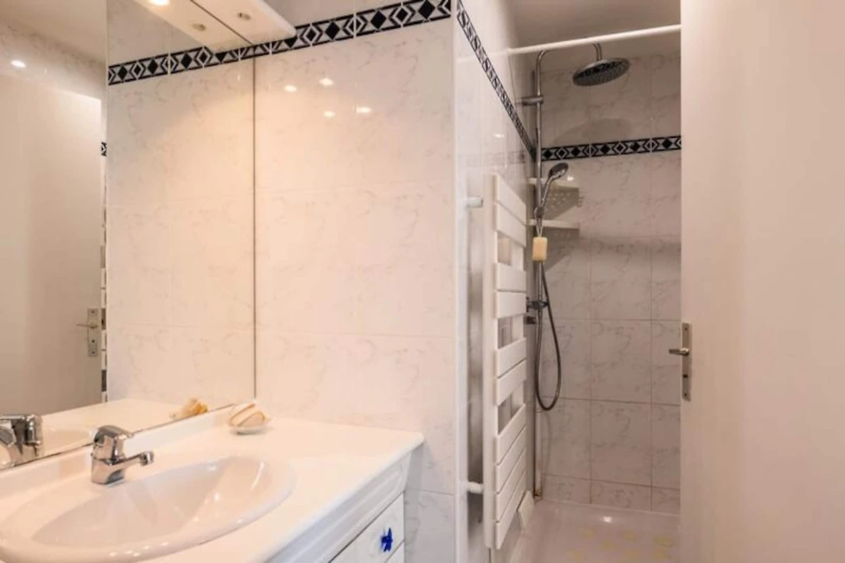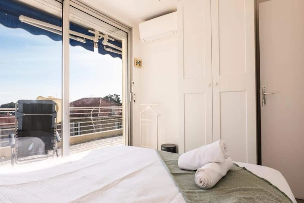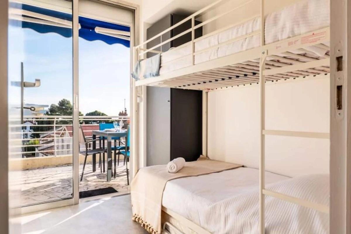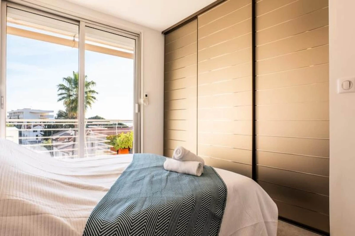 Die Lage ist unschlagbar. In nur zwei Gehminuten erreichen Sie den Sandstrand von Mouré Rouge, wo Sie entspannen oder eine Partie Boule spielen können. Die berühmte Croisette, Palm Beach und eine Vielzahl an Geschäften, Bäckereien und Restaurants mit köstlicher Küche sind ebenfalls fußläufig erreichbar. Wer die Umgebung erkunden möchte, erreicht den Palais des Festivals, die Rue d’Antibes und das historische Viertel Le Suquet in nur sieben Autominuten. Dank der guten Anbindung an den öffentlichen Nahverkehr, inklusive eines praktischen Shuttlebusses, lässt sich die Côte d’Azur auch ohne Auto bequem erkunden.