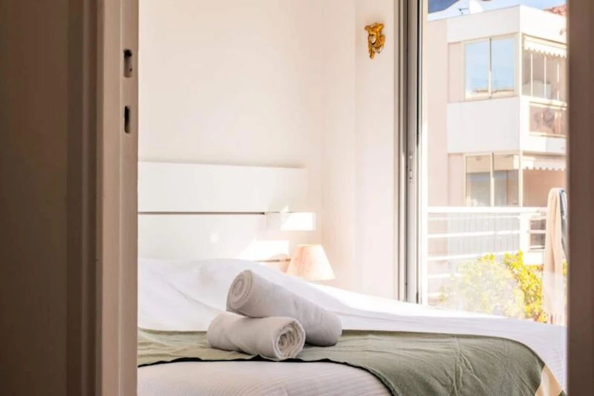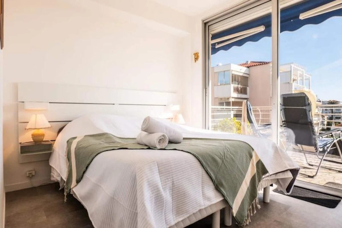 Erwachen Sie zum sanften Rauschen der Wellen und dem Glanz der mediterranen Sonne in diesem eleganten 3-Sterne-Apartment mit Blick auf den malerischen Hafen von Le Mouré Rouge in Cannes. Dank seiner erstklassigen Lage nur wenige Schritte vom Strand entfernt bietet dieses 70 m² große Refugium eine harmonische Verbindung von modernem Komfort und maritimem Charme – der perfekte Ort für Familien, Freunde oder Geschäftsreisende, die einen ruhigen und gleichzeitig lebendigen Urlaub suchen. Die großzügige Terrasse mit stilvoller Lounge und Sonnenliegen lädt zum Entspannen ein und bietet einen atemberaubenden Blick auf das Meer und den geschäftigen Hafen.