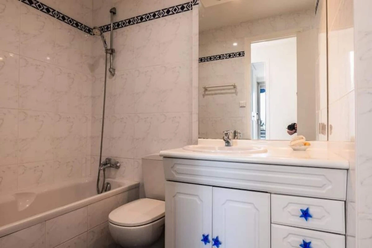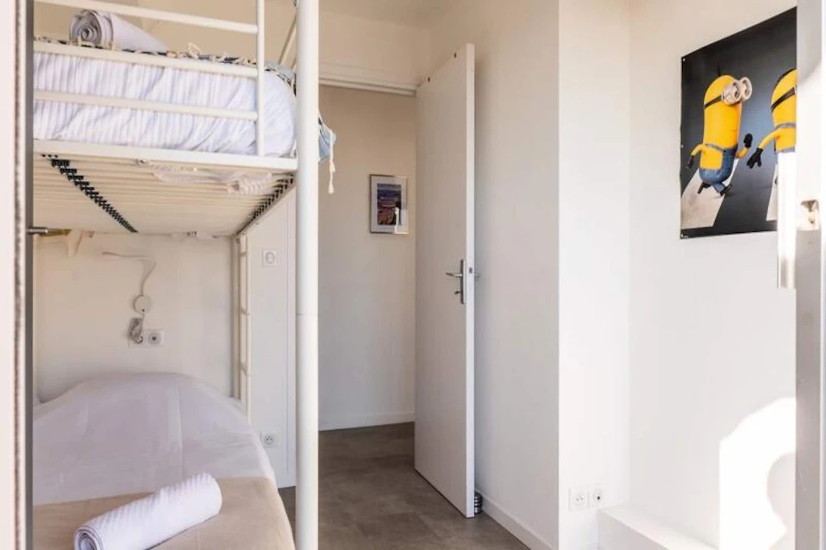 Das Apartment ist durchdacht gestaltet und bietet Platz für bis zu sechs Gäste. Das in mediterranen Farben gehaltene Wohnzimmer mit Smart-TV öffnet sich nahtlos zur Terrasse und schafft so einen hellen und einladenden Raum. Die voll ausgestattete Küche mit Essbereich bietet alles, was Sie zum gemeinsamen Kochen und Genießen benötigen. Die Schlafräume umfassen ein Hauptschlafzimmer mit Queensize-Bett, viel Stauraum und einem Schreibtischbereich, ein zweites Schlafzimmer mit Kingsize-Bett und ein gemütliches drittes Schlafzimmer mit Etagenbetten. Zwei moderne Badezimmer, eines mit Badewanne und Dusche und das andere mit integrierter Dusche und WC, garantieren Komfort und Privatsphäre für alle Gäste.
