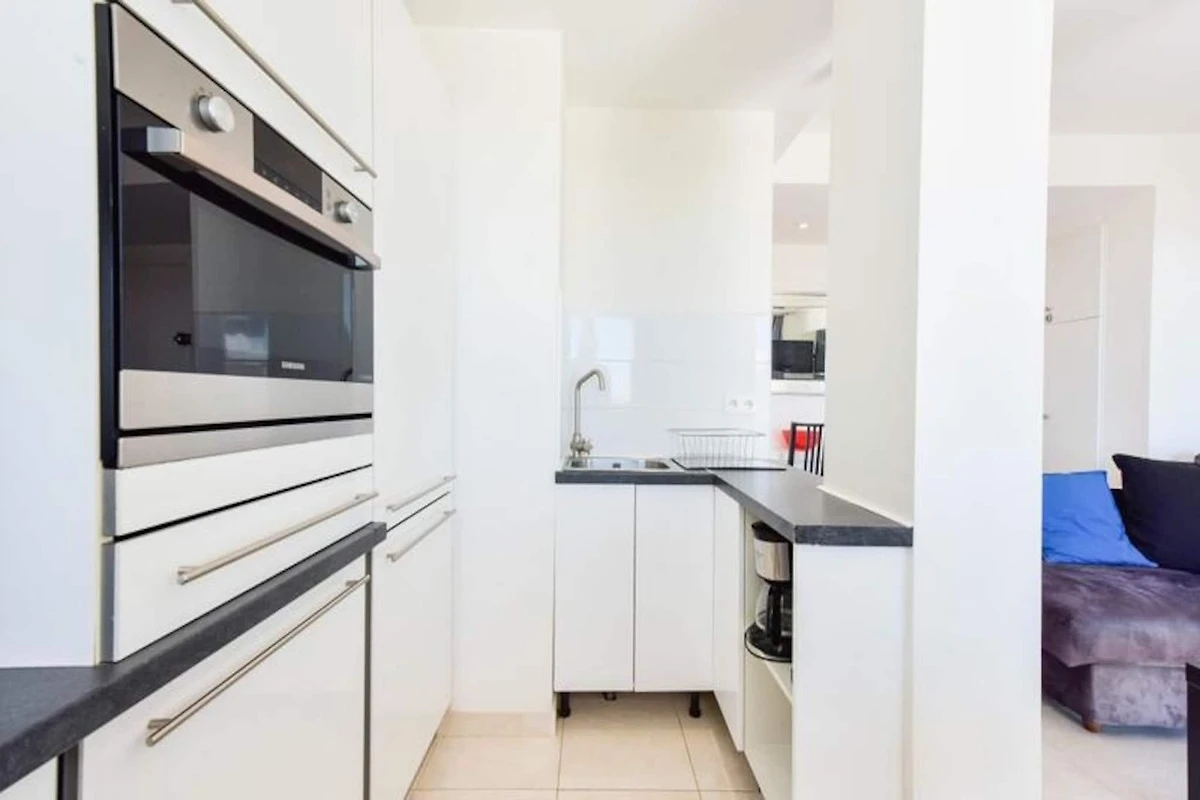 Das Apartment ist durchdacht gestaltet und bietet höchsten Komfort. Treten Sie vor die Tür und schon sind Sie nur wenige Schritte vom Strand Mouré Rouge entfernt. Hier können Sie Ihre Füße im Mittelmeer baden oder in einem charmanten Restaurant am Meer speisen. Das nahegelegene Viertel Palm Beach besticht durch sein dörfliches Flair mit lokalen Geschäften, Bäckereien und Märkten. Wer es etwas glamouröser mag, erreicht die berühmte Croisette und den Palais des Festivals sowie die Luxusboutiquen der Rue d'Antibes in wenigen Minuten.