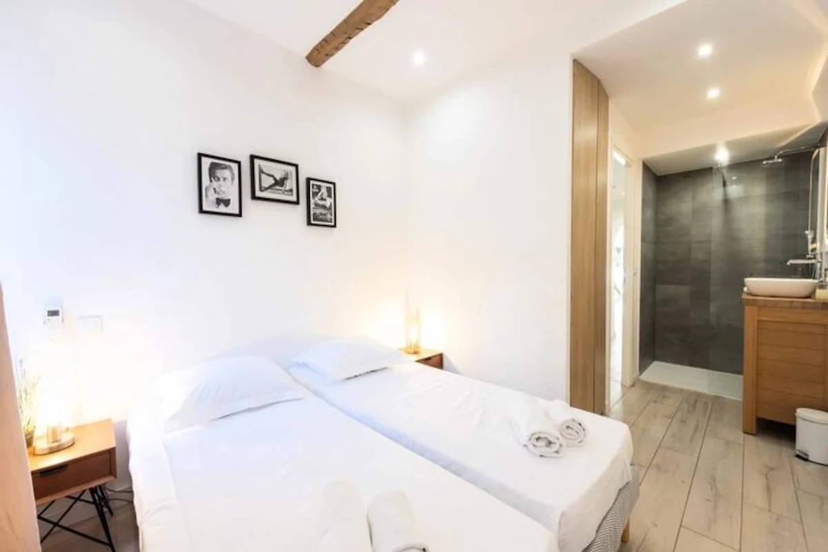 Treten Sie vor die Tür und lassen Sie sich vom Charme von Le Suquet verzaubern. Schlendern Sie durch die engen, kopfsteingepflasterten Gassen, entdecken Sie den lebhaften Forville-Markt oder genießen Sie einen entspannten Spaziergang zu den nahegelegenen Stränden und dem Alten Hafen. Die berühmte Rue d’Antibes und der Palais des Festivals sind fußläufig erreichbar, und vom Fährhafen aus gelangen Sie bequem zu den idyllischen Lérins-Inseln.