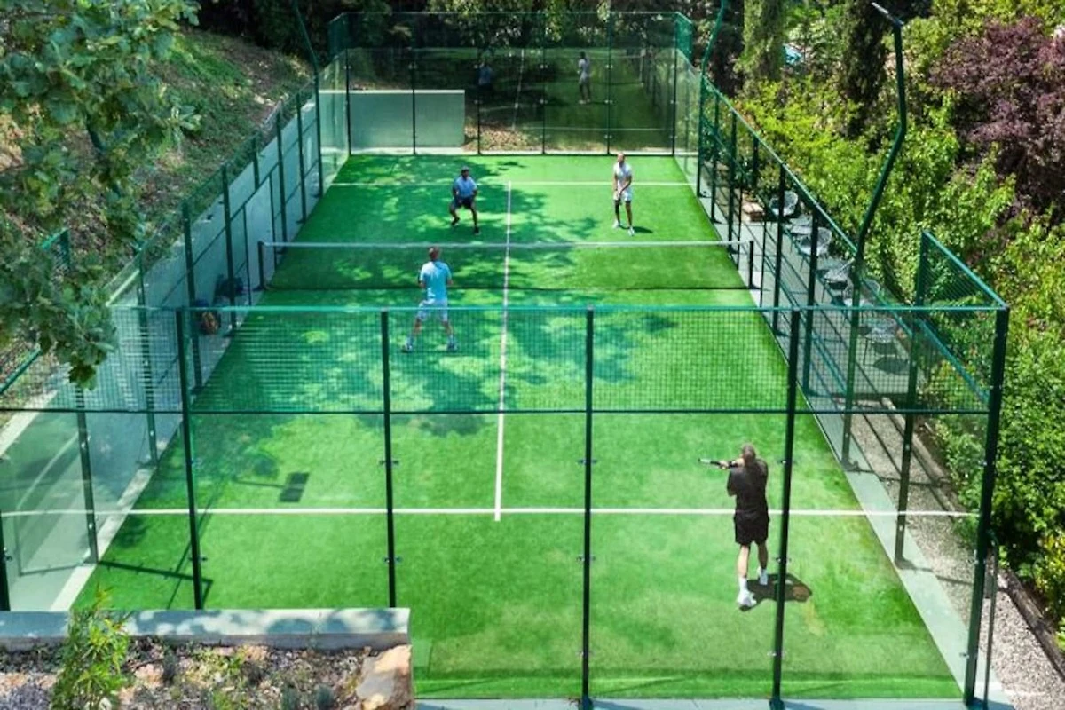 Entdecken Sie draußen ein Paradies für Outdoor-Aktivitäten. Erfrischen Sie sich im 4 x 10 m großen Swimmingpool, fordern Sie Ihre Begleiter zu einem Match auf dem privaten Padelplatz heraus oder spielen Sie eine Partie Volleyball, Boule oder Tischtennis. Der gepflegte Garten bietet viel Platz zum Entspannen, und ein separates Duschbad am Pool sorgt nach einem Tag in der Sonne für zusätzlichen Komfort.