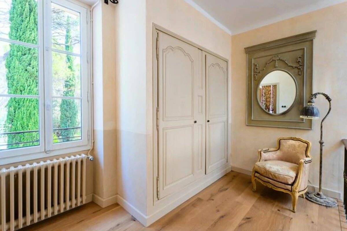 Das Anwesen verfügt über fast 500 Quadratmeter raffinierter Wohnfläche, die traditionelle provenzalische Architektur nahtlos mit modernem Luxus verbindet. Die Hauptbastide verfügt über sechs geräumige Schlafzimmer, die jeweils individuell klimatisiert sind und ganzjährig Komfort bieten. Die Master-Suite mit ihrem Badezimmer aus Naturstein und der zum Garten hin gelegenen Badewanne ist eine Oase der Entspannung. Ein privater Kinoraum, eine Bibliothek-Lounge und eine voll ausgestattete Küche mit hochwertigen Geräten sorgen dafür, dass keine Wünsche offen bleiben. Angrenzend an die Bastide bietet das klimatisierte Poolhaus eine Sommerküche, einen Essbereich und eine schattige Lounge und schafft so eine idyllische Umgebung am beheizten Swimmingpool. Für zusätzliche Privatsphäre sorgt ein separates Apartment mit zwei Schlafzimmern, eigener Küche und Wohnbereich, das sich perfekt für Personal oder Gäste eignet.