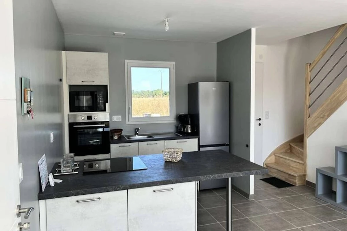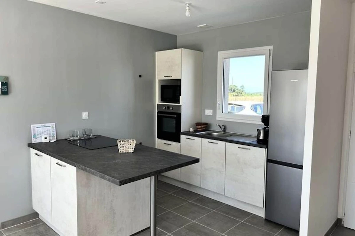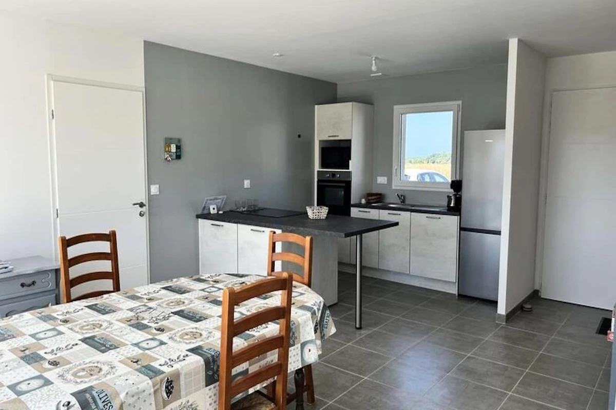 Im Inneren des Hauses erwartet Sie Komfort und Bequemlichkeit. Das Erdgeschoss bietet ein geräumiges Wohnzimmer mit gemütlichen Sofas und einen Essbereich für acht Personen – ideal zum Zusammensein nach einem erlebnisreichen Tag. Die offene Küche ist mit modernen Geräten ausgestattet, darunter eine Nespresso-Maschine und eine Kochinsel, die die Zubereitung von Mahlzeiten zum Kinderspiel macht. Ein Schlafzimmer und ein Badezimmer mit ebenerdiger Dusche im Erdgeschoss gewährleisten Barrierefreiheit für alle. Im Obergeschoss befinden sich drei weitere Schlafzimmer, darunter eines mit einem Queensize-Bett, sowie ein zweites Badezimmer – ausreichend Platz zum Entspannen für alle.