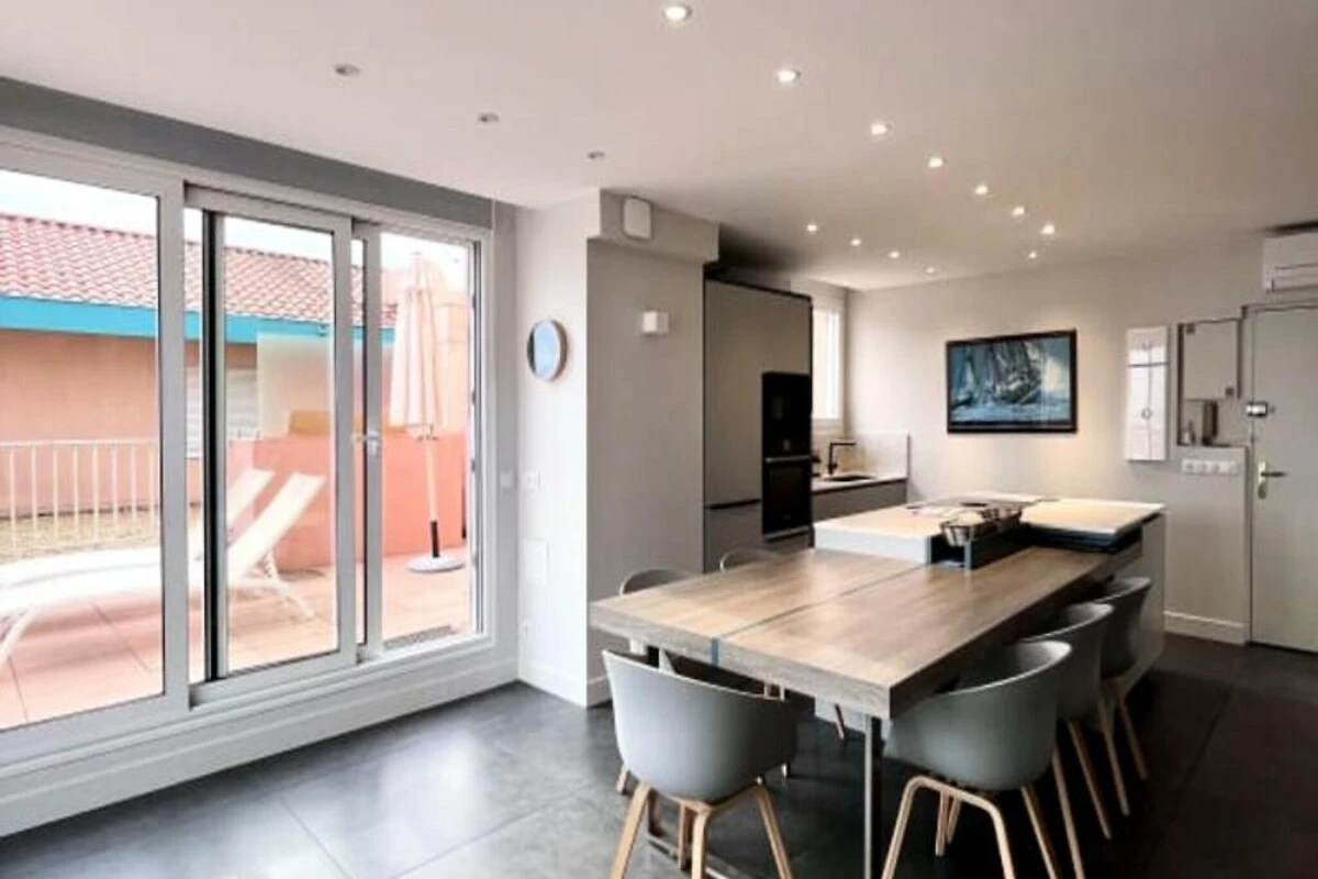 Im Inneren verbindet die komplett renovierte 75 m² große Wohnung nahtlos modernen Komfort mit Küsteneleganz. Die offene Küche, die mit allem ausgestattet ist, was Sie brauchen, geht in einen hellen und luftigen Wohnbereich über, der sich perfekt zum Entspannen nach einem erlebnisreichen Tag eignet. Mit zwei geräumigen Doppelzimmern und einem Dachzimmer, das ideal für Kinder ist, bietet diese Wohnung bequem Platz für bis zu sechs Gäste. Highspeed-Internet, Klimaanlage und Bettwäsche sorgen für einen stressfreien Aufenthalt, während durchdachte Details wie vor der Ankunft gemachte Betten und die Endreinigung den Komfort zusätzlich erhöhen.