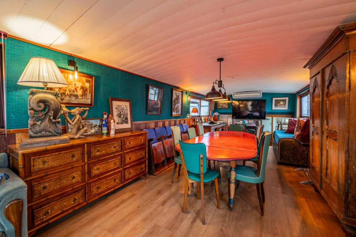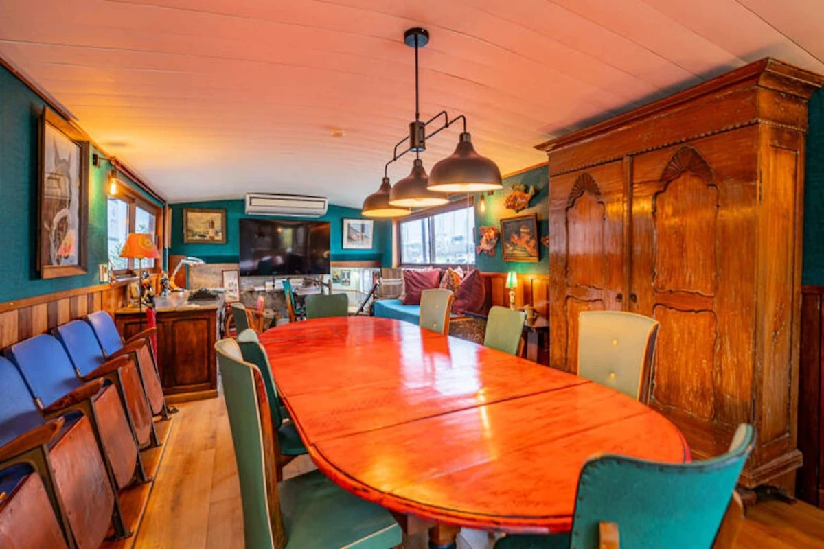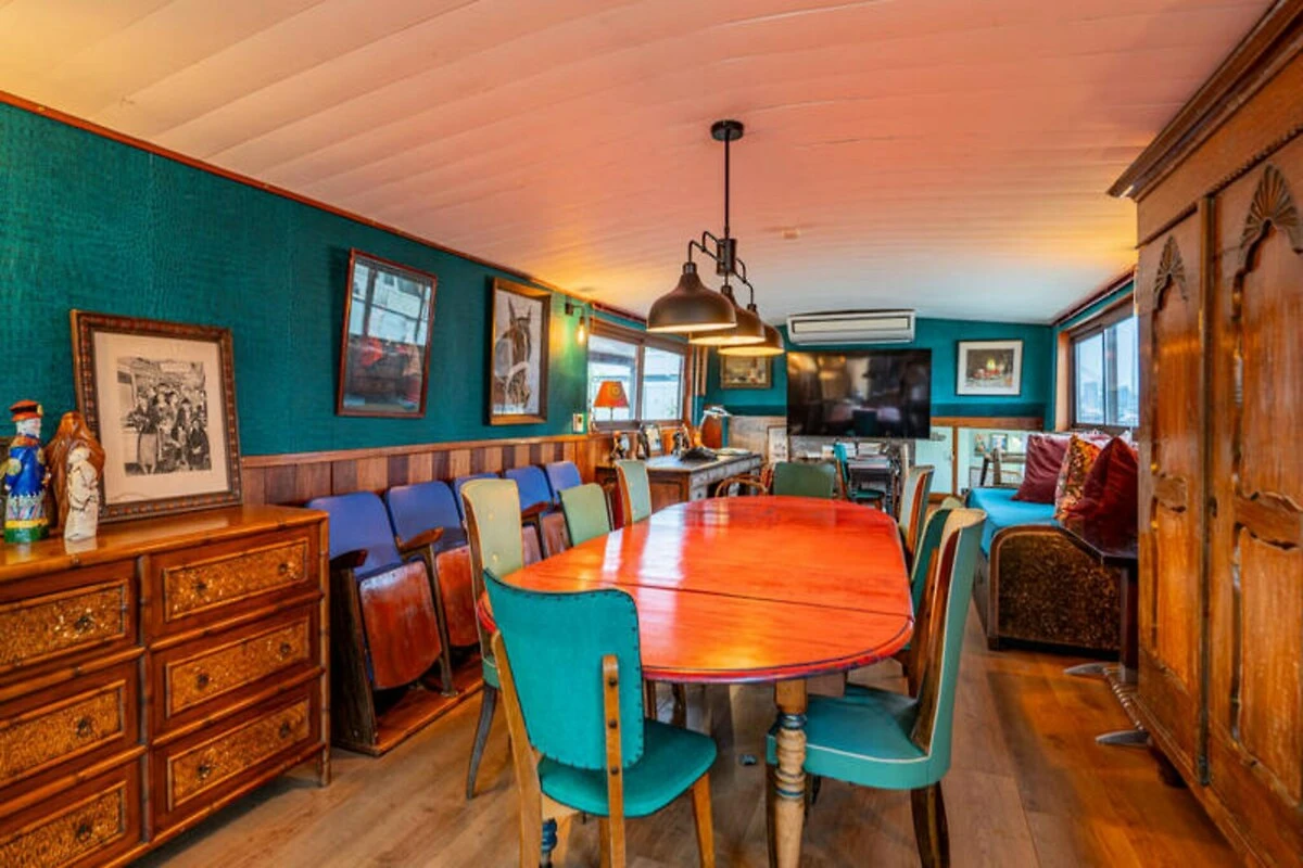 Das 80 Quadratmeter große Apartment auf der Petite Annick ist komfortabel und stilvoll gestaltet. Im Obergeschoss durchflutet ein geräumiges Wohnzimmer mit großen Fenstern den Raum mit Tageslicht und bietet einen atemberaubenden Blick auf den Fluss. Ein gemütliches Schlafsofa bietet Platz für zwei Gäste, und die moderne Küche ist komplett ausgestattet, um Mahlzeiten zuzubereiten. Das Hausboot verfügt außerdem über gemeinschaftliche Außenbereiche, darunter eine Sonnenliege am Kai und eine Dachterrasse mit kleinem Pool – ideal zum Sonnenbaden oder Entspannen nach einem erlebnisreichen Tag. Kostenlose Parkplätze direkt vor der Tür sorgen für Komfort, und die kleinen Aufmerksamkeiten wie kostenloser Kaffee, Tee und Gebäck lassen Sie sich wie zu Hause fühlen.