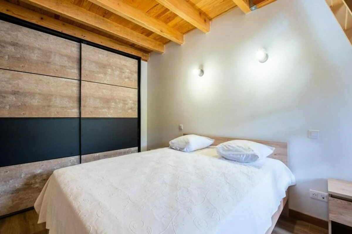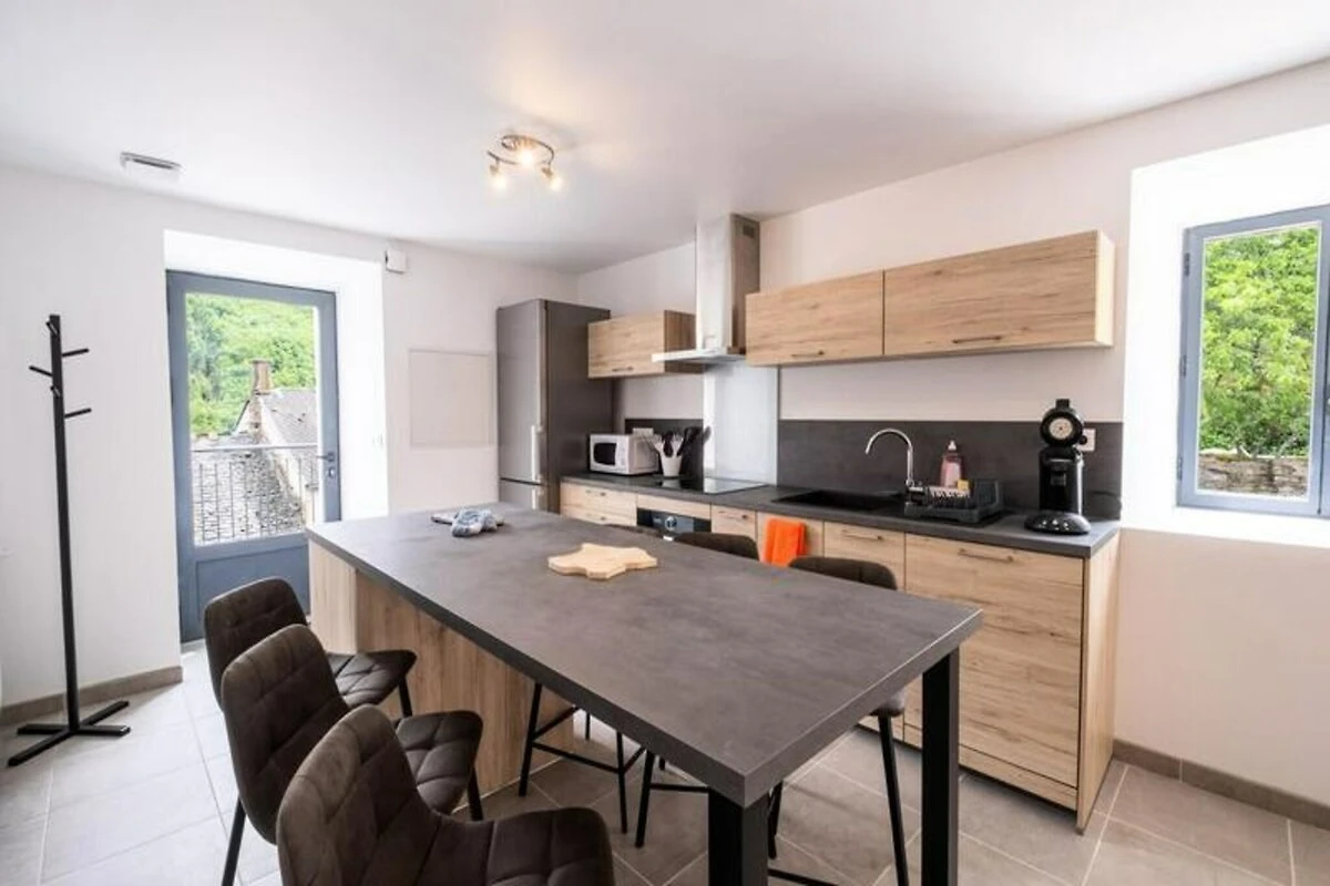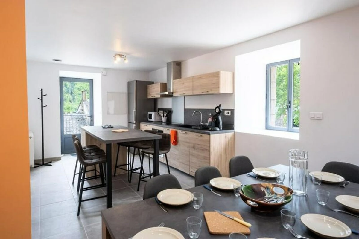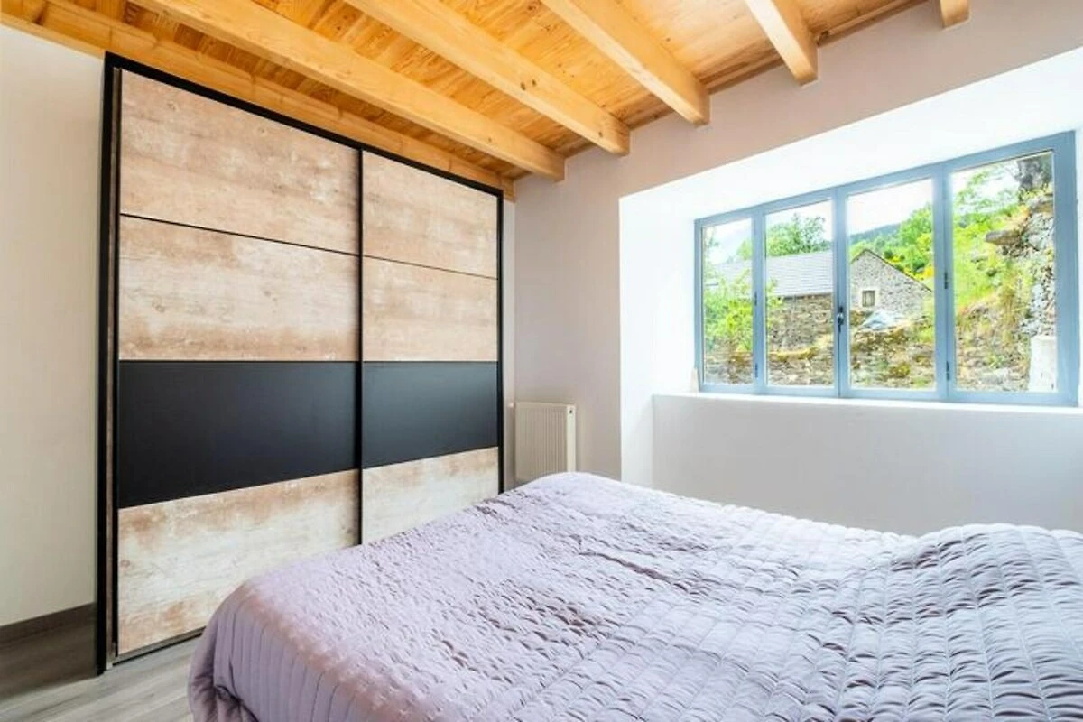 Im malerischen Dörfchen Lozeret am Fuße des Mont Lozère lädt diese charmant renovierte ehemalige Scheune zum Verweilen und Genießen der Ruhe des ländlichen Frankreichs ein. Umgeben von üppigen Landschaften und unzähligen Möglichkeiten für Outdoor-Aktivitäten ist sie der perfekte Rückzugsort für Naturliebhaber und Abenteuerlustige gleichermaßen. Ob Sie die nahegelegenen Wanderwege erkunden oder einfach die friedliche Atmosphäre auf sich wirken lassen möchten – dieses Anwesen bietet eine authentische Auszeit vom Alltag. Nur eine kurze Autofahrt entfernt finden Sie lokale Geschäfte und den bekannten Kurort Bagnols-les-Bains, die Ihren Aufenthalt noch angenehmer und luxuriöser gestalten. \n\nIm Inneren vereint das ebenerdige Ferienhaus rustikalen Charme mit modernem Komfort. Das gemütliche Wohnzimmer verfügt über einen Pelletofen, einen Fernseher und eine Sitzecke, die nahtlos in den Essbereich und die voll ausgestattete Küchenzeile mit Backofen, Mikrowelle, Kühl-/Gefrierkombination, Geschirrspüler und Kapselkaffeemaschine übergeht. Drei liebevoll gestaltete Schlafzimmer bieten Platz für bis zu zehn Gäste, darunter ein Schlafzimmer mit Queensize-Bett, ein Schlafzimmer mit Doppelbett und ein Zwischengeschoss mit zwei Doppelbetten. Ein Duschbad und ein separates WC sorgen für Komfort. Treten Sie hinaus auf die private Terrasse mit Gartenmöbeln und Grill – ideal für ein Essen im Freien unter dem Sternenhimmel. \n\nGäste haben außerdem Zugang zu einem Gemeinschaftspool auf einem weitläufigen 8000 m² großen Gelände, der nach einem erlebnisreichen Tag zum Entspannen einlädt. Mit privaten Parkplätzen und kostenfreiem WLAN wurde an jedes Detail gedacht, um Ihren Aufenthalt so angenehm wie möglich zu gestalten. Ob Wandern, Radfahren oder einfach nur Entspannen – diese Unterkunft bietet eine einzigartige Kombination aus Komfort und Abenteuer im Herzen der Cevennen. \n\nBuchen Sie jetzt Ihren Aufenthalt und entdecken Sie die Magie von Mont Lozère, wo atemberaubende Landschaften und herzliche Gastfreundschaft unvergessliche Erinnerungen schaffen.