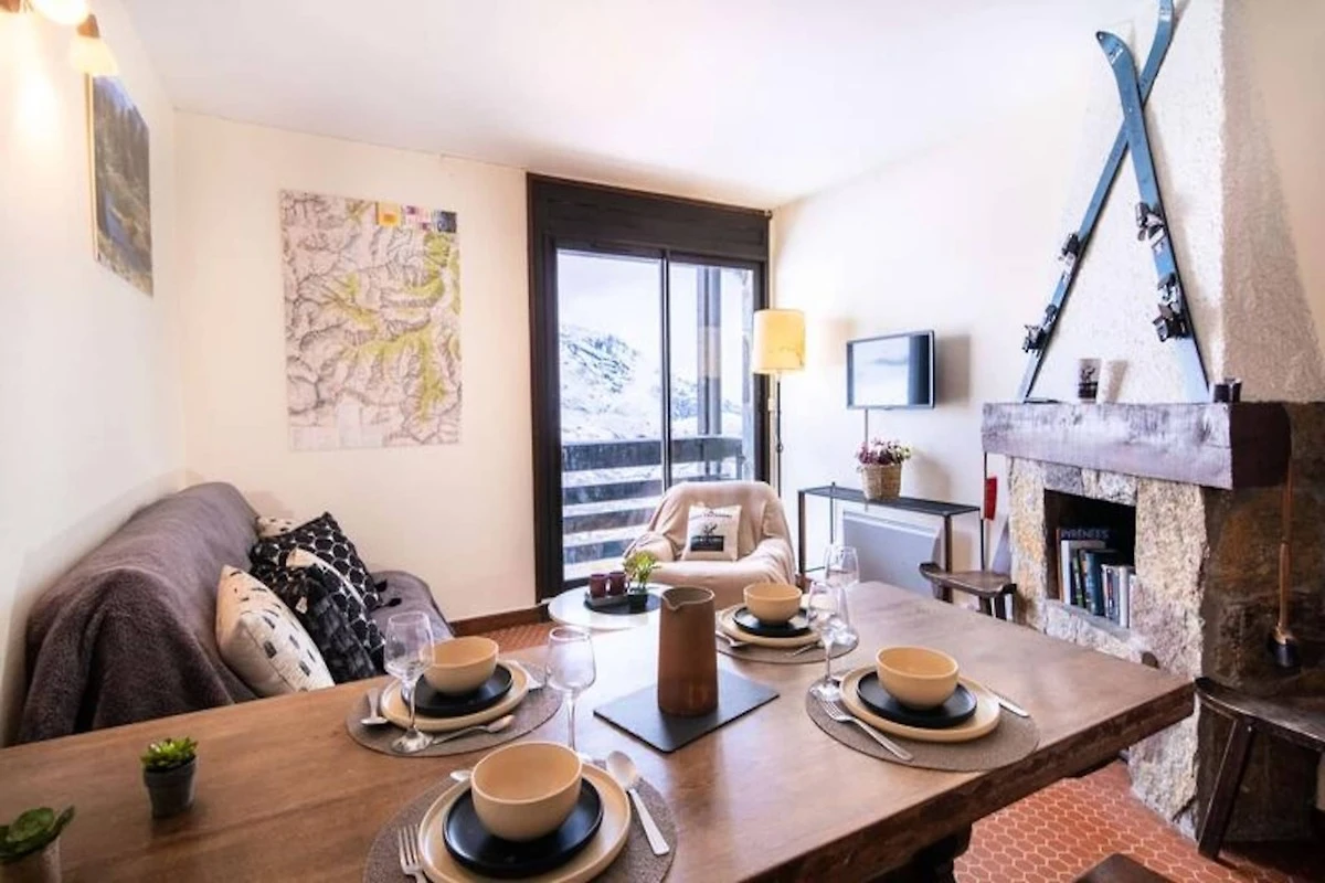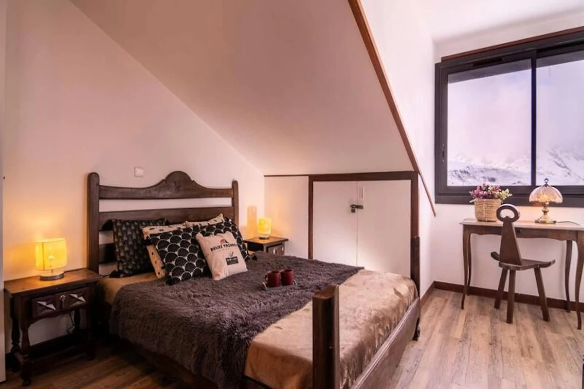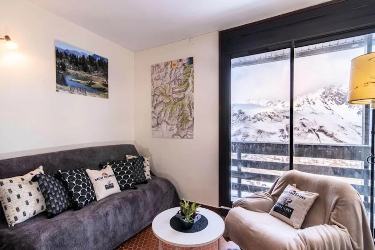 Hoch über den malerischen Pyrenäen bietet dieses charmante Apartment in der Residenz L'Armazan einen unvergesslichen alpinen Aufenthalt. Mit atemberaubender Aussicht und erstklassiger Lage nahe Pisten, Skischule und Seilbahn ist es ein Paradies für Wintersportler und Bergliebhaber gleichermaßen. Stellen Sie sich vor, Sie wachen mit der klaren Bergluft auf, stehen nur wenige Schritte von Ihrer Tür entfernt auf der Piste und tauchen ein in die friedliche Schönheit von Pla d'Adet. Ob Sie Abenteuer oder Entspannung suchen, dieses gemütliche Refugium bietet die perfekte Grundlage für einen gelungenen Urlaub. \n\nDas Apartment ist durchdacht gestaltet und vereint Komfort und Funktionalität. Zwei geräumige Schlafzimmer sind mit Doppelbetten ausgestattet, während zwei gemütliche Hütten mit Etagenbetten ideal für Kinder oder weitere Gäste sind. Das Wohnzimmer lädt zum Entspannen nach einem erlebnisreichen Tag ein, und die moderne, voll ausgestattete Küche ermöglicht die einfache Zubereitung leckerer Mahlzeiten. Ein komfortables Badezimmer sorgt für angenehme Temperaturen, und optionale Extras wie Bettwäscheverleih und WLAN-Hotspot bieten Ihnen zusätzliche Flexibilität. Bitte beachten Sie, dass Haustiere nicht erlaubt sind, um allen Gästen eine ruhige und allergikerfreundliche Umgebung zu gewährleisten.\n\nNeben dem Apartment bietet Pla d'Adet eine Vielzahl an Aktivitäten, die Ihren Urlaub bereichern. Von Schneeschuhwandern und Schneemobilfahren über Canyoning bis hin zu geführten Bergtouren ist für jeden etwas dabei. Qualifizierte Experten stehen Ihnen zur Verfügung, um Ihre Zeit in den Pyrenäen optimal zu nutzen. Darüber hinaus können Sie Skiliftpässe und Ausrüstung zu Vorzugspreisen im Voraus buchen und so Ihre Anreise reibungslos und stressfrei gestalten.\n\nOb Sie unberührte Pisten hinabsausen, die raue Schönheit der Pyrenäen erkunden oder einfach nur die alpine Atmosphäre genießen – dieses Apartment ist Ihr Tor zu unvergesslichen Erinnerungen. Lassen Sie sich von der Magie von Pla d'Adet zu Ihrem nächsten Abenteuer inspirieren.