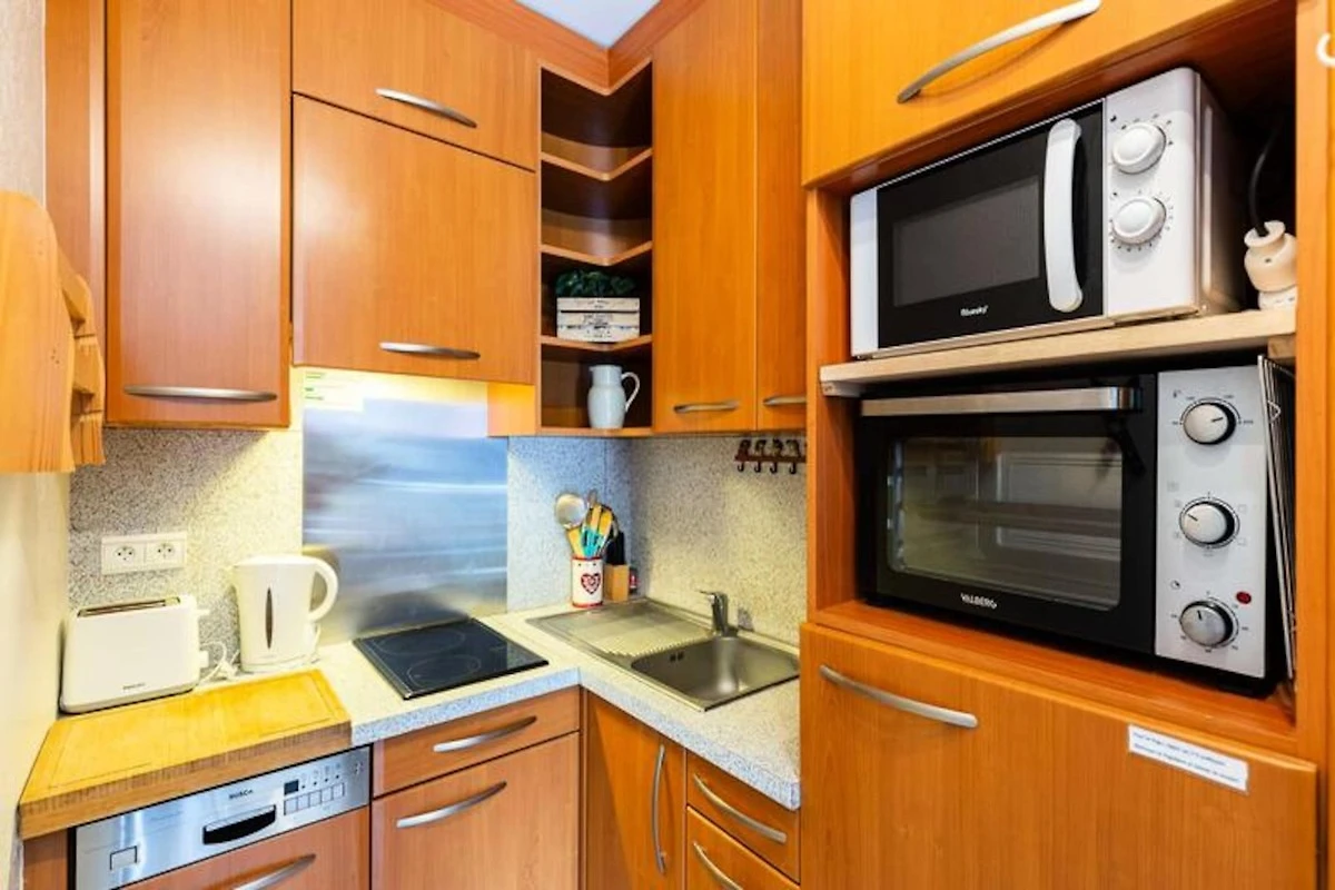 Im Inneren vereint das Apartment modernen Komfort mit gemütlichem Charme. Im Erdgeschoss befindet sich ein helles Wohnzimmer mit einem bequemen Schlafsofa, einem Fernseher und direktem Zugang zum Balkon – der ideale Ort, um nach einem Tag auf der Piste zu entspannen. Die offene Küche ist komplett ausgestattet mit Cerankochfeld, Backofen, Geschirrspüler und allen Utensilien, die Sie für die Zubereitung leckerer Mahlzeiten benötigen. Im Obergeschoss finden Sie ein ruhiges Hauptschlafzimmer mit einem Doppelbett und einem zusätzlichen Einzelbett sowie ein fröhliches Kinderzimmer mit zwei Einzelbetten. Ein Duschbad und ein separates WC runden das Raumangebot ab und bieten Komfort für bis zu sechs Gäste.