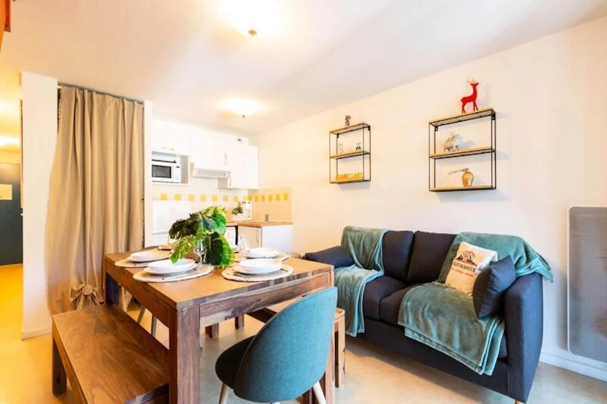 Abseits der Wohnung lockt Saint-Lary-Soulan mit seinem lebendigen Dorfcharme. Entspannen Sie sich in den Thermalbädern oder nutzen Sie die Skilifte, um die unberührten Pisten der Pyrenäen zu erreichen. Im Sommer verwandelt sich die Region in ein Paradies für Wanderer und Naturliebhaber mit Wanderwegen, die zu atemberaubenden Aussichten führen. Ob Sie Abenteuer oder Ruhe suchen – diese Maisonette-Wohnung bietet die perfekte Balance aus beidem und ist somit ein unvergessliches Reiseziel für Familien und Freunde.