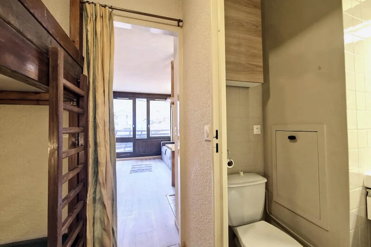 Hoch über den malerischen Hängen von Val d'Isère bietet dieses charmante Studio-Apartment einen gemütlichen Rückzugsort für Paare oder kleine Familien, die das ultimative Ski-in/Ski-out-Erlebnis suchen. Die Residenz Le Valbel liegt im Gebiet La Daille und vereint Komfort und alpinen Charme mit einem atemberaubenden Südblick von Ihrem privaten Balkon. Stellen Sie sich vor, Sie wachen mit der frischen Bergluft auf, treten auf den Balkon, um die schneebedeckten Gipfel zu bewundern, und fahren direkt auf die Piste. Der kostenlose Shuttlebus nach Le Fornet und ins Ortszentrum hält direkt vor der Tür, sodass Sie das lebhafte Dorfleben bequem erkunden können. \n\nDas Apartment ist durchdacht gestaltet und bietet maximalen Komfort und Funktionalität. Das Wohnzimmer verfügt über ein Doppelschlafsofa, einen Essbereich und eine Sitzecke mit Fernseher und WLAN (je nach Verfügbarkeit). Im Eingangsbereich befinden sich zwei Etagenbetten, ideal für Kinder oder zusätzliche Gäste. Die Küche ist komplett ausgestattet mit Elektroherd, Backofen und Geschirrspüler, sodass Sie nach einem Tag auf der Piste ganz einfach leckere Mahlzeiten zubereiten können. Das Badezimmer ist mit einem WC ausgestattet, und Bettwäsche, Handtücher und Kissenbezüge stehen Ihnen zur Verfügung. Die Residenz Le Valbel bietet praktische Annehmlichkeiten wie einen Aufzug, einen Skiraum und die Nähe zu einem Einkaufszentrum mit Restaurants, Skiverleih und Skischule. Ob Sie die legendären Pisten von Tignes und Val d'Isère hinunterfahren oder einfach die ruhige Alpenatmosphäre genießen möchten – hier finden Sie alles, was Sie brauchen. Dank vergünstigter Skipasspreise im Winter und zusätzlichen Services wie Parkplatz und Reinigung garantiert Ihnen dieses Apartment einen unbeschwerten Aufenthalt. Erleben Sie unvergessliche Momente in einem der bekanntesten Skigebiete der französischen Alpen.