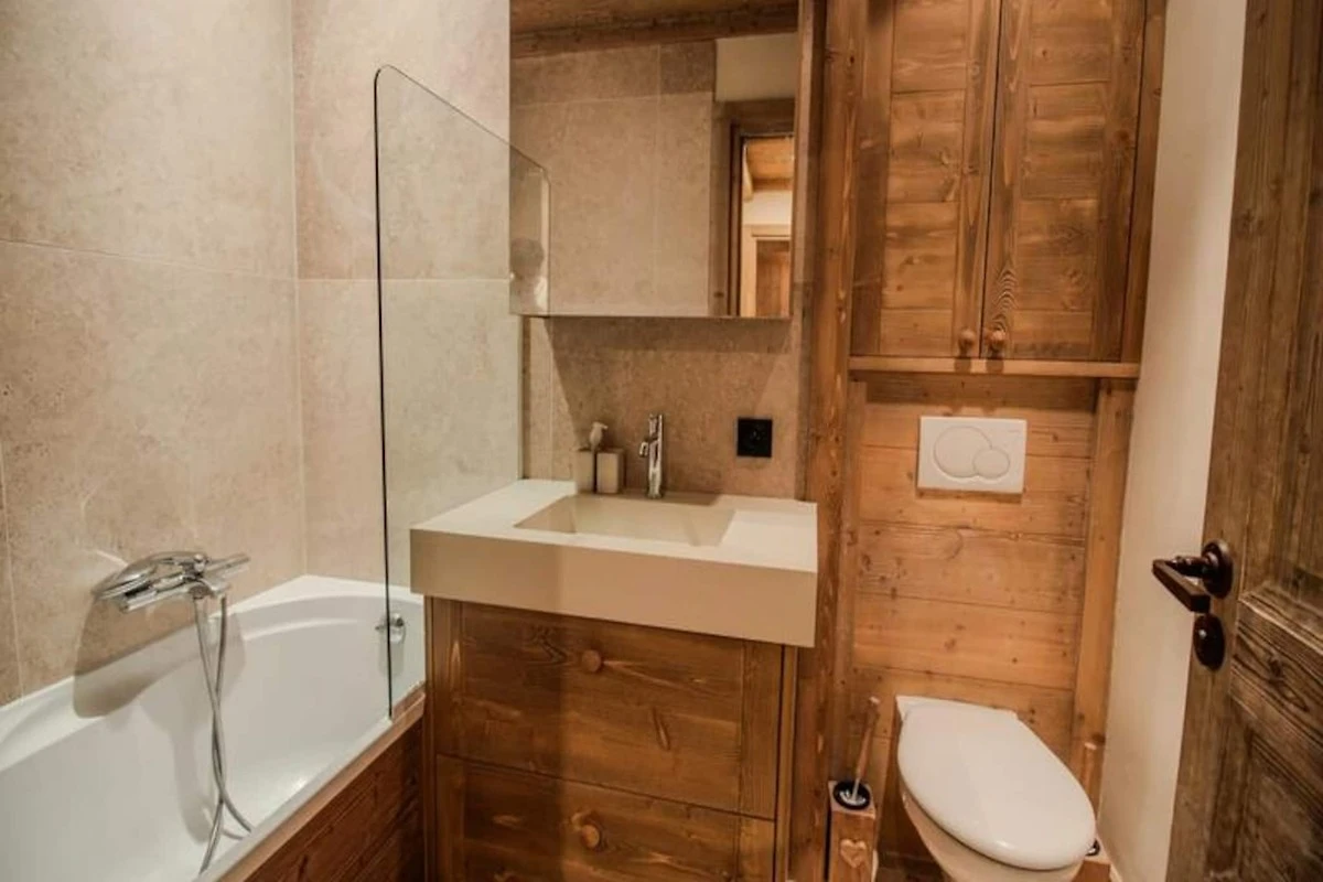 Das Apartment besticht durch einen großzügigen und gemütlichen Grundriss, der Komfort und Stil vereint. Mit vier geschmackvoll eingerichteten Schlafzimmern – zwei mit Doppelbetten, eines mit zwei Einzelbetten und eines mit drei Etagenbetten – bietet es bequem Platz für Familien oder Gruppen von bis zu neun Personen. Das helle Wohnzimmer mit großem Essbereich lädt zum Verweilen und Entspannen nach einem Tag auf der Piste ein. Eine voll ausgestattete Küche, drei moderne Badezimmer und zwei separate WCs sorgen für einen unbeschwerten Aufenthalt. Der nach Osten ausgerichtete Balkon ist der perfekte Ort, um Ihren Morgenkaffee mit Blick auf die Alpenkulisse zu genießen. Zu den weiteren Annehmlichkeiten gehören ein überdachter Parkplatz und Premium-Services wie die Lieferung von Skipässen, Rabatte auf den Ausrüstungsverleih und sogar Massagen im Haus.
