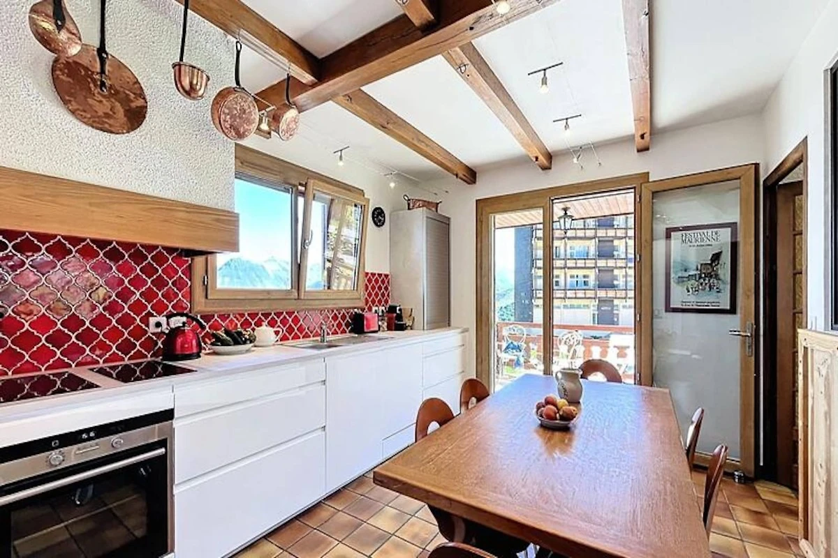 Umgeben von der atemberaubenden Schönheit der französischen Alpen bietet dieses authentische und geräumige Chalet einen idyllischen Rückzugsort für Familien und Freunde. Nur 150 Meter von der nächsten Skipiste entfernt und mit einem kostenlosen Shuttlebus direkt vor der Tür, vereint dieses charmante Anwesen Komfort mit der ruhigen Atmosphäre des Berglebens. Von der nach Süden ausgerichteten Terrasse genießen Sie einen ungestörten Blick auf die majestätischen Aiguilles d'Arves – ein Anblick, der Sie jeden Tag aufs Neue begeistern wird. Ob Wintersport oder Sommerwanderungen, dieses Chalet verspricht eine unvergessliche Auszeit inmitten der Natur. Das Chalet ist durchdacht gestaltet und bietet Platz für bis zu 15 Gäste. Durch die Anmietung der Erdgeschosswohnung kann die Kapazität auf 23 Personen erweitert werden. Im Inneren erwartet Sie ein gemütliches, lichtdurchflutetes Wohnzimmer, eine voll ausgestattete Küche, ideal für die Zubereitung herzhafter Mahlzeiten, und ein Essbereich mit Zugang zur Terrasse. Die Schlafzimmer sind warm und einladend, einige bieten einen atemberaubenden Blick auf den Sonnenaufgang über den Gipfeln. Besondere Details wie Raclette- und Fondue-Sets verleihen dem Chalet einen Hauch savoyischen Charmes, während moderne Annehmlichkeiten wie WLAN, Waschmaschine und privater Parkplatz für einen komfortablen Aufenthalt sorgen. \n\nJenseits des Chalets erwartet Sie das Skigebiet Sybelles mit unzähligen Möglichkeiten zum Skifahren, Snowboarden und Erkunden. In den wärmeren Monaten verwandelt sich die Region in ein Paradies für Wanderer, Radfahrer und Naturliebhaber. Das nur 10 Gehminuten entfernte Dorfzentrum versprüht lokalen Charme und bietet Geschäfte, Restaurants und kulturelle Highlights. Dank eines kostenlosen Shuttlebusses, der das gesamte Dorf verbindet, haben Sie alles Notwendige bequem in Reichweite. \n\nOb Sie Abenteuer oder Entspannung suchen, dieses Chalet bietet den perfekten Rahmen für unvergessliche Momente. Von der authentischen Bergatmosphäre bis zur unschlagbaren Lage – hier fühlt sich jeder Augenblick magisch an.
