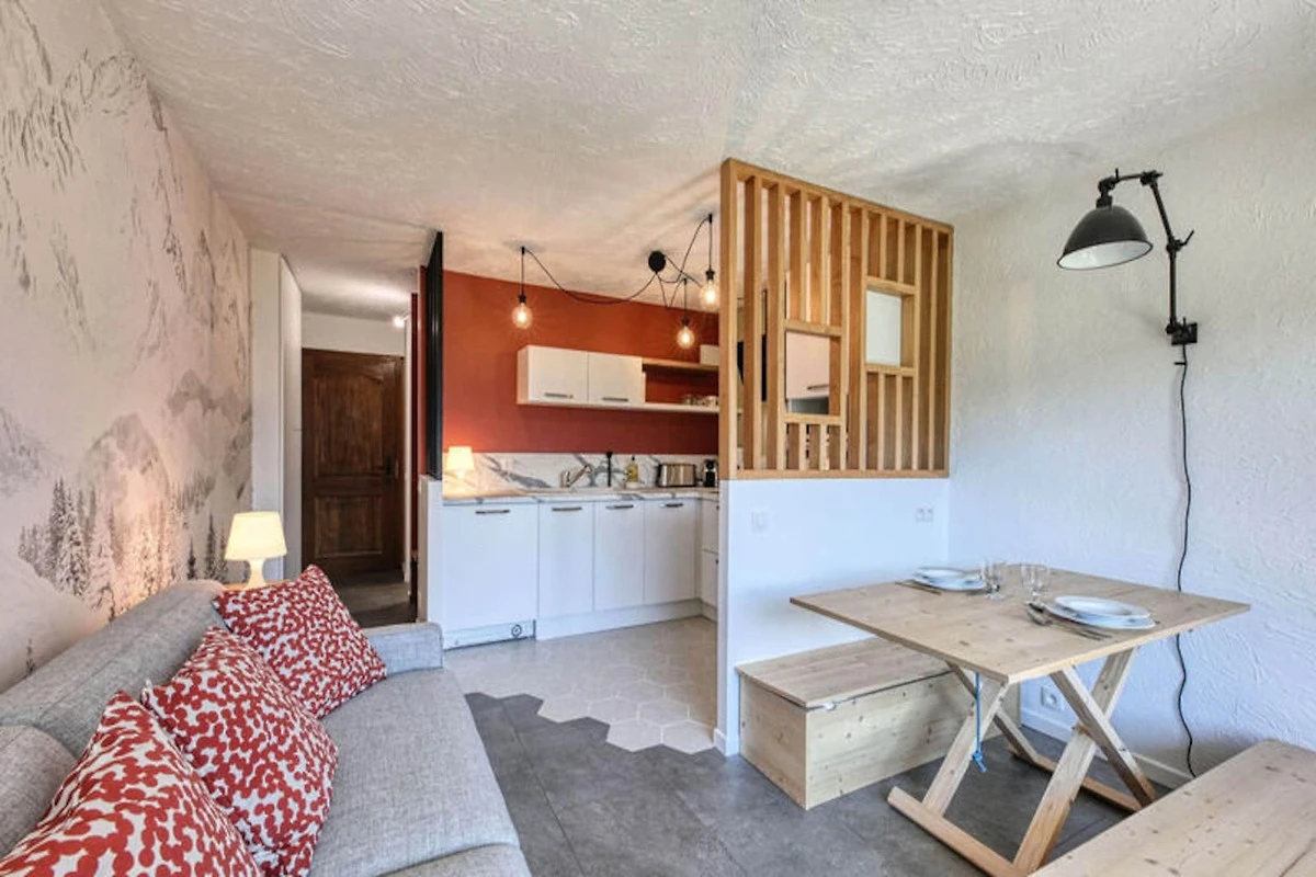 Die durchdachte Raumaufteilung umfasst eine offene, voll ausgestattete Küche, einen komfortablen Wohnbereich mit Esstisch und Lounge sowie einen Schlafbereich mit einem bequemen Schlafsofa (160 x 190 cm). Das moderne und funktionale Badezimmer verfügt über Dusche und WC. Treten Sie auf den privaten Balkon und genießen Sie den Panoramablick über das ikonische Mont-Blanc-Massiv. WLAN, Bettwäsche und bezogene Betten bei Ihrer Ankunft sorgen für einen reibungslosen und entspannten Aufenthalt. Nur wenige Schritte von den Skipisten entfernt, ist dieses Apartment der ideale Ausgangspunkt für aufregende Wintersportarten und malerische Sommerwanderungen. Saint-Gervais-les-Bains ist bekannt für seine Thermalbäder, die charmante Dorfatmosphäre und die Nähe zum weitläufigen Skigebiet Evasion Mont Blanc. Ob Sie auf pulvrigen Pisten Ski fahren, auf malerischen Wanderwegen spazieren gehen oder die savoyischen Spezialitäten genießen – dieses Reiseziel verspricht unvergessliche Erlebnisse.