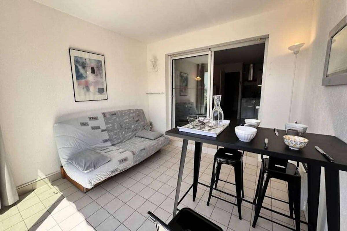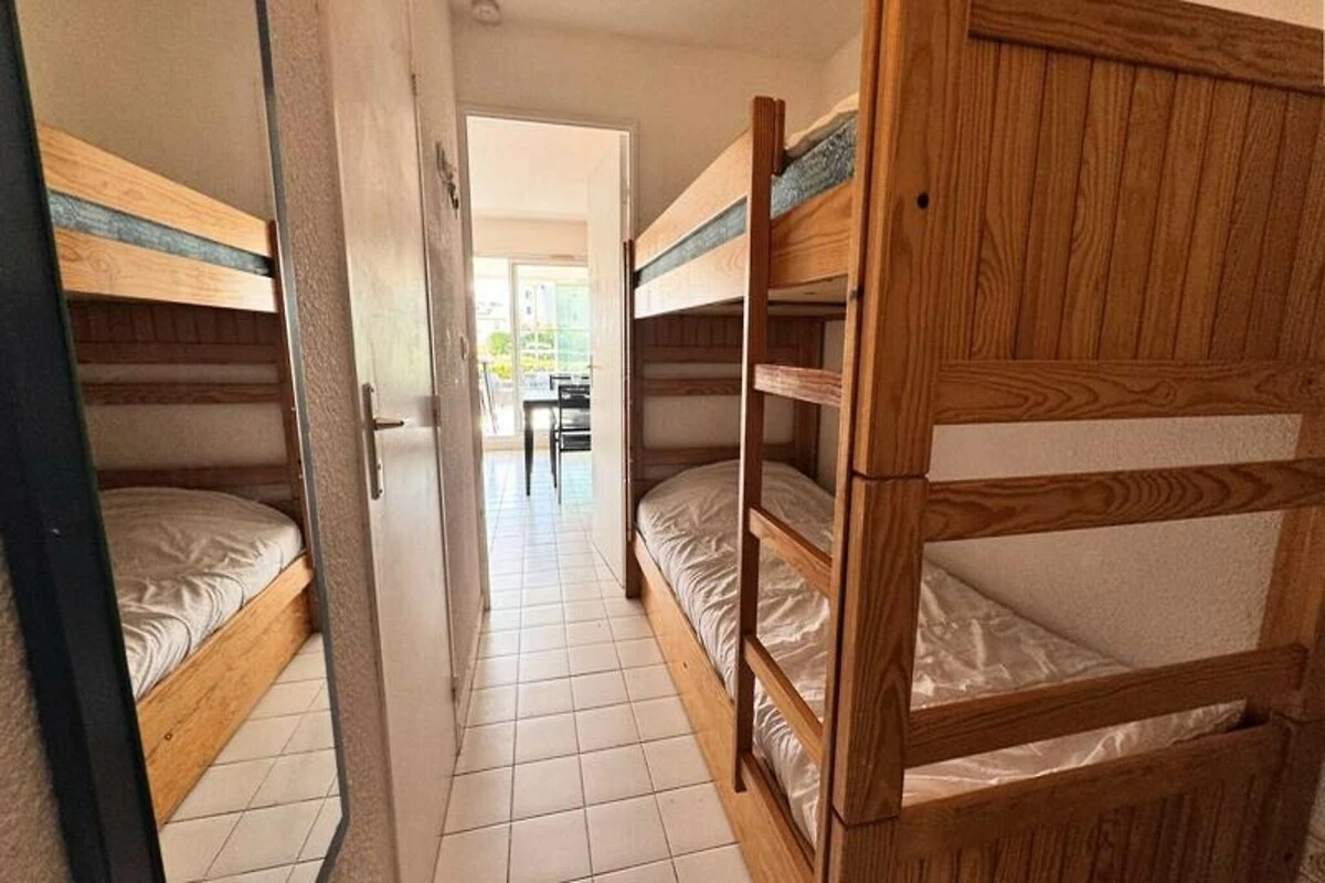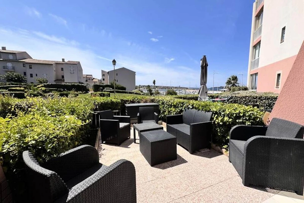 Inmitten des üppigen Grüns des Anwesens Coudoulière bietet diese charmante Ferienwohnung im Erdgeschoss einen ruhigen Rückzugsort am Meer, nur 100 Meter vom Strand entfernt. Stellen Sie sich vor, wie Sie vom sanften Rauschen der Wellen geweckt werden und die Meeresbrise genießen, umgeben vom idyllischen Wald des Anwesens. Diese Unterkunft ist ideal für Paare und Familien und vereint Komfort, Bequemlichkeit und die Schönheit der Natur zu einem unvergesslichen Urlaub. Ob Sie Entspannung oder Abenteuer suchen, die Umgebung lädt Sie ein, den mediterranen Lebensstil zu genießen. \n\nDie Wohnung ist durchdacht gestaltet und bietet einen gemütlichen und funktionalen Aufenthalt. Die Eingangsnische ist mit Etagenbetten ausgestattet, ideal für Kinder, während das Wohnzimmer über ein Schlafsofa für zwei Personen verfügt. Die offene Küche ist für die Zubereitung von Mahlzeiten ausgestattet, die Sie im Garten oder im Essbereich genießen können. Ein separates Schlafzimmer mit Doppelbett sorgt für Privatsphäre, und das moderne Duschbad mit Waschmaschine bietet zusätzlichen Komfort. Mit separatem WC und optionalen Services wie Bettwäscheverleih wurde an jedes Detail gedacht, um Ihren Aufenthalt so angenehm wie möglich zu gestalten. Das Anwesen selbst ist ein wahres Paradies für Aktivitäten: malerische Spazierwege, Meer- und Hafenblick sowie die Nähe zu allen Annehmlichkeiten laden zum Verweilen ein. Ob Sie die Strände der Umgebung erkunden, in Restaurants am Wasser speisen oder den lebhaften Yachthafen genießen möchten – alles ist bequem erreichbar. Naturliebhaber finden in der Umgebung Möglichkeiten zum Wandern und Radfahren, während Erholungssuchende im Garten entspannen oder an der Küste entlangspazieren können. Wählen Sie dieses charmante Apartment für eine Auszeit, die Komfort, natürliche Schönheit und den Reiz des Mittelmeers vereint. Dank der inkludierten Endreinigung können Sie sich ganz darauf konzentrieren, in dieser idyllischen Umgebung unvergessliche Erinnerungen zu schaffen.