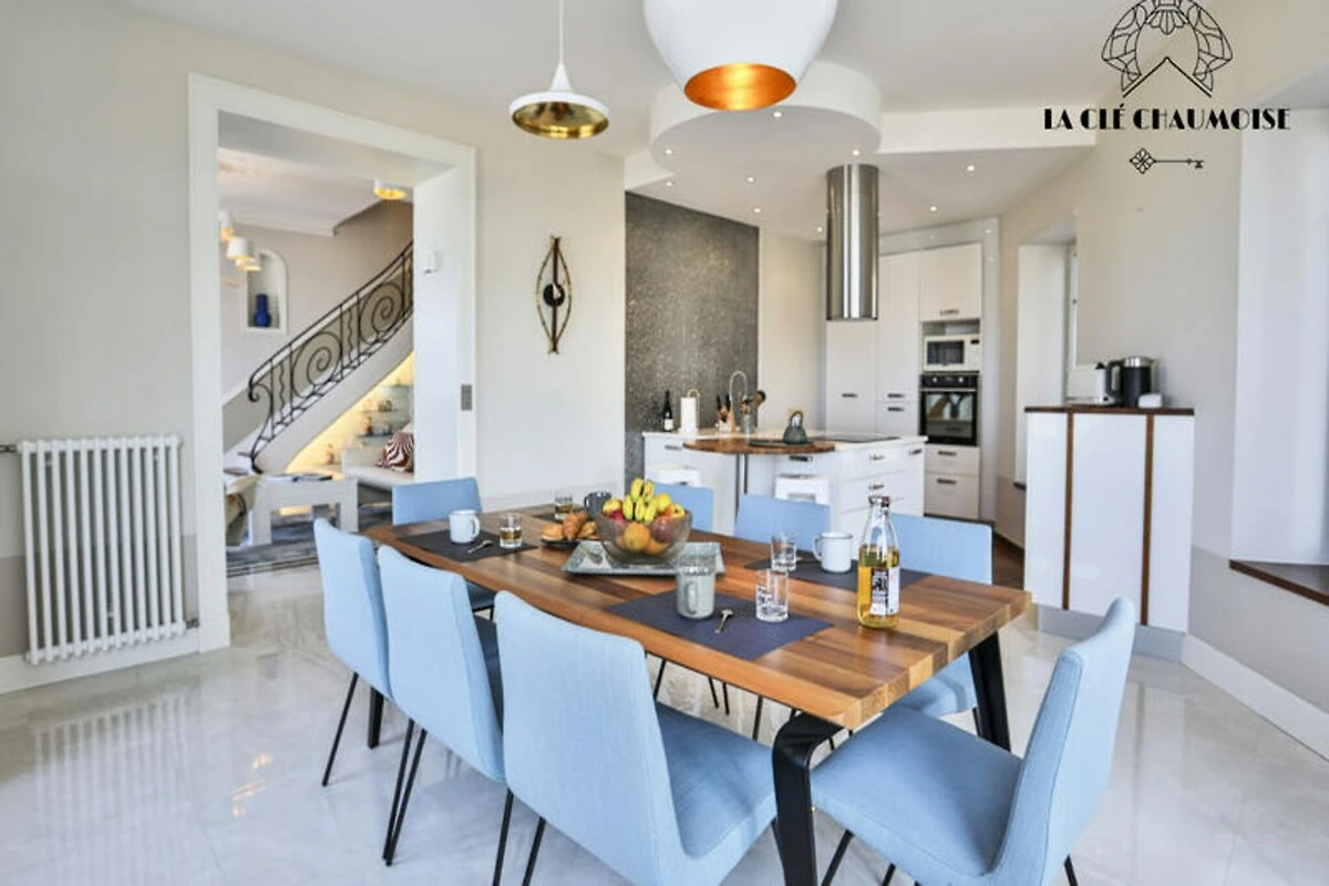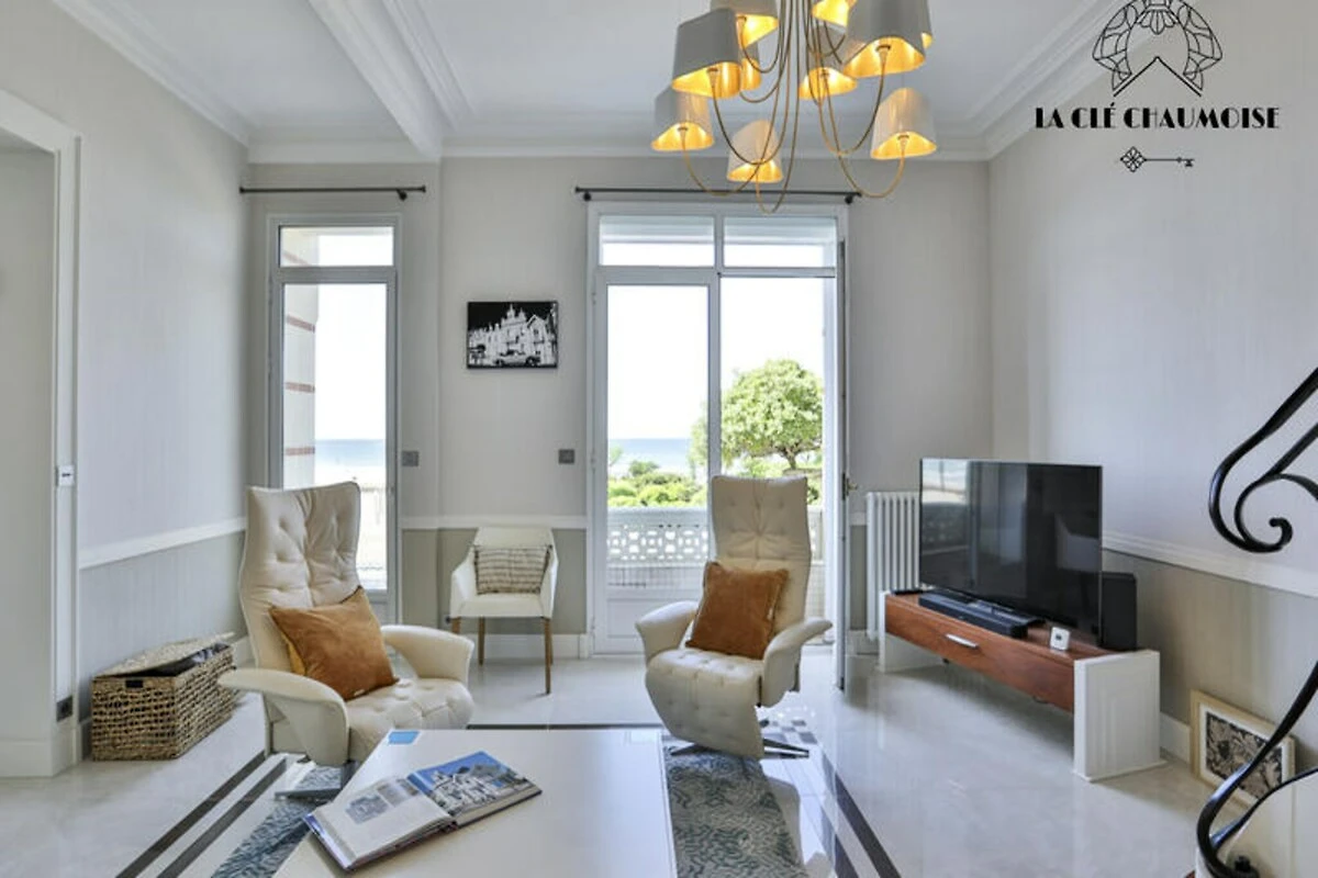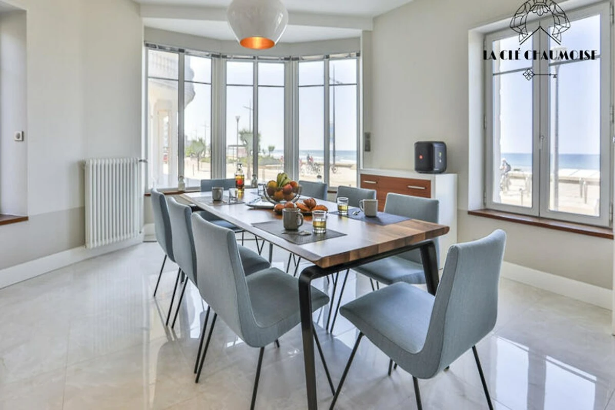 Stellen Sie sich vor, Sie wachen zum sanften Rauschen der Wellen auf, während die Sonne über einer der schönsten Buchten der Welt aufgeht. Diese außergewöhnliche Villa in Les Sables d'Olonne bietet einen atemberaubenden 180°-Panoramablick aufs Meer. Direkt an der berühmten Strandpromenade gelegen, ist sie das ultimative Ziel für einen luxuriösen Strandurlaub, bei dem sich jeder Moment wie ein Traum anfühlt. Ob Sie Ihren Morgenkaffee genießen oder einen Cocktail zum Sonnenuntergang probieren – das Meer ist stets Ihre Kulisse. Die beeindruckende Villa erstreckt sich über 275 m² und bietet auf mehreren Ebenen Komfort und Eleganz. Im Erdgeschoss empfängt Sie eine gemütliche Sitzecke und ein prachtvolles Wohnzimmer mit bequemen Sofas und Sesseln, die den atemberaubenden Meerblick perfekt einrahmen. Der offene Essbereich und die voll ausgestattete Küche machen das Bewirten von Gästen zum Kinderspiel, während sich im ersten Stock eine ruhige Suite, eine Lounge zum Entspannen und ein separater Arbeitsbereich befinden. Die oberen Etagen bieten zusätzliche Suiten mit eigenem Bad und atemberaubender Aussicht, sodass jeder Gast sein eigenes kleines Paradies genießt. Für zusätzlichen Komfort verfügt die Villa über einen Waschraum, eine private Garage und großzügigen Stauraum. \n\nTreten Sie vor die Tür und Sie sind nur wenige Schritte vom pulsierenden Leben von Les Sables d'Olonne entfernt. Schlendern Sie an der Promenade entlang, erkunden Sie die lokalen Geschäfte oder lassen Sie sich in den nahegelegenen Restaurants mit frischen Meeresfrüchten verwöhnen. Die Gegend ist bekannt für ihre Wassersportmöglichkeiten, Radwege und kulturellen Attraktionen und somit ein Paradies für Entspannung und Abenteuer gleichermaßen. \n\nOb Sie Ruhe oder Abenteuer suchen, diese Villa bietet die perfekte Kombination aus Luxus und erstklassiger Lage. Buchen Sie jetzt und schaffen Sie unvergessliche Erinnerungen in diesem Refugium am Meer.