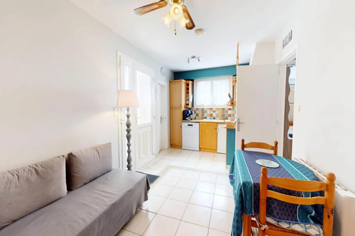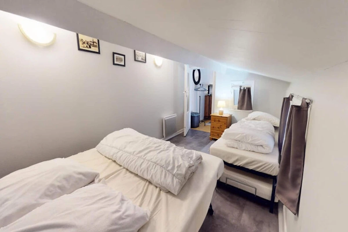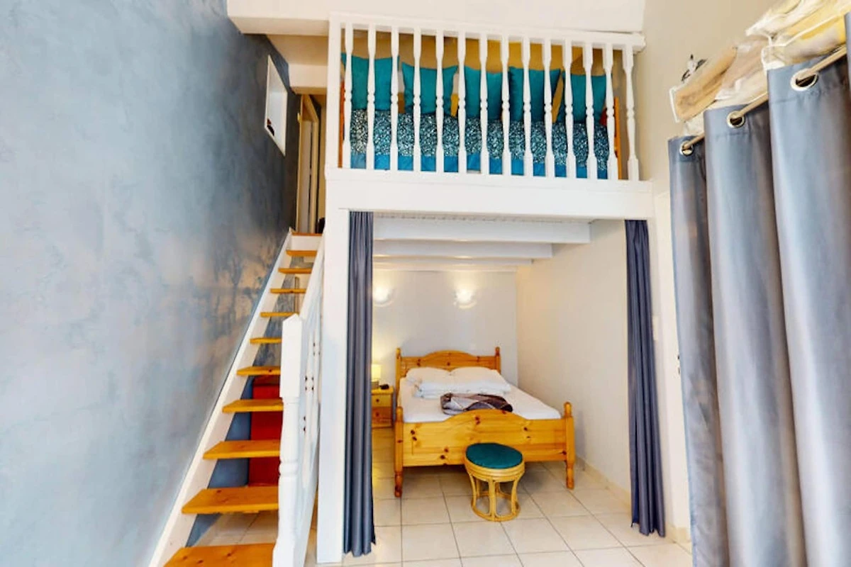 Im charmanten Städtchen Saint-Gilles-Croix-de-Vie, wo das Rauschen der Wellen auf die lebendige Energie des lokalen Lebens trifft, lädt Sie Le Goéland de la Vie zu einem perfekten Küstenurlaub ein. Versteckt in einer ruhigen Straße, liegt dieses entzückende Ferienhaus nur wenige Schritte vom Yachthafen, Sandstränden, lebhaften Märkten und malerischen Geschäften entfernt und bietet eine harmonische Mischung aus Entspannung und Komfort. Ob Sie ruhige Morgenstunden am Meer oder gesellige Abende in der Stadt verbringen möchten – diese Unterkunft ist der ideale Ausgangspunkt. \n\nDas Stadthaus ist durchdacht gestaltet und bietet Komfort und Funktionalität. Im Erdgeschoss erwartet Sie eine voll ausgestattete Küche, perfekt für die Zubereitung frischer Meeresfrüchte aus der Region oder ein entspanntes Frühstück vor Ihren Ausflügen. Angrenzend an die Küche lädt das gemütliche Wohnzimmer zum Verweilen mit einem Buch oder zum Ansehen Ihrer Lieblingssendungen ein. Der Schlafbereich verfügt über ein Doppelbett und eine charmante Nische für ruhige Momente. Im Obergeschoss verströmt ein zweiter Wohnbereich mit Lichterketten, Sofa und Fernseher einen charmanten, verspielten Charakter und führt zu einem geräumigen Schlafzimmer mit vier Einzelbetten – ideal für Familien oder Freundesgruppen. \n\nAuf der privaten Terrasse mit Gartenmöbeln und Grill können Sie gemütlich im Freien speisen oder laue Sommerabende genießen. Zwei Badezimmer, eines davon in praktischer Nähe zur Garage, und ein separates WC sorgen für Komfort für alle Gäste. \n\nSaint-Gilles-Croix-de-Vie bietet eine Fülle an Aktivitäten: Radfahren entlang der Vendée Corniche, Erkundungstouren auf der Île d'Yeu oder ein Besuch der lebhaften Nachtmärkte. Les Sables-d'Olonne und der berühmte Puy du Fou sind nur eine kurze Autofahrt entfernt. Ob Sie Abenteuer oder Entspannung suchen – Le Goéland de la Vie verspricht einen unvergesslichen Aufenthalt an der Küste der Vendée.
