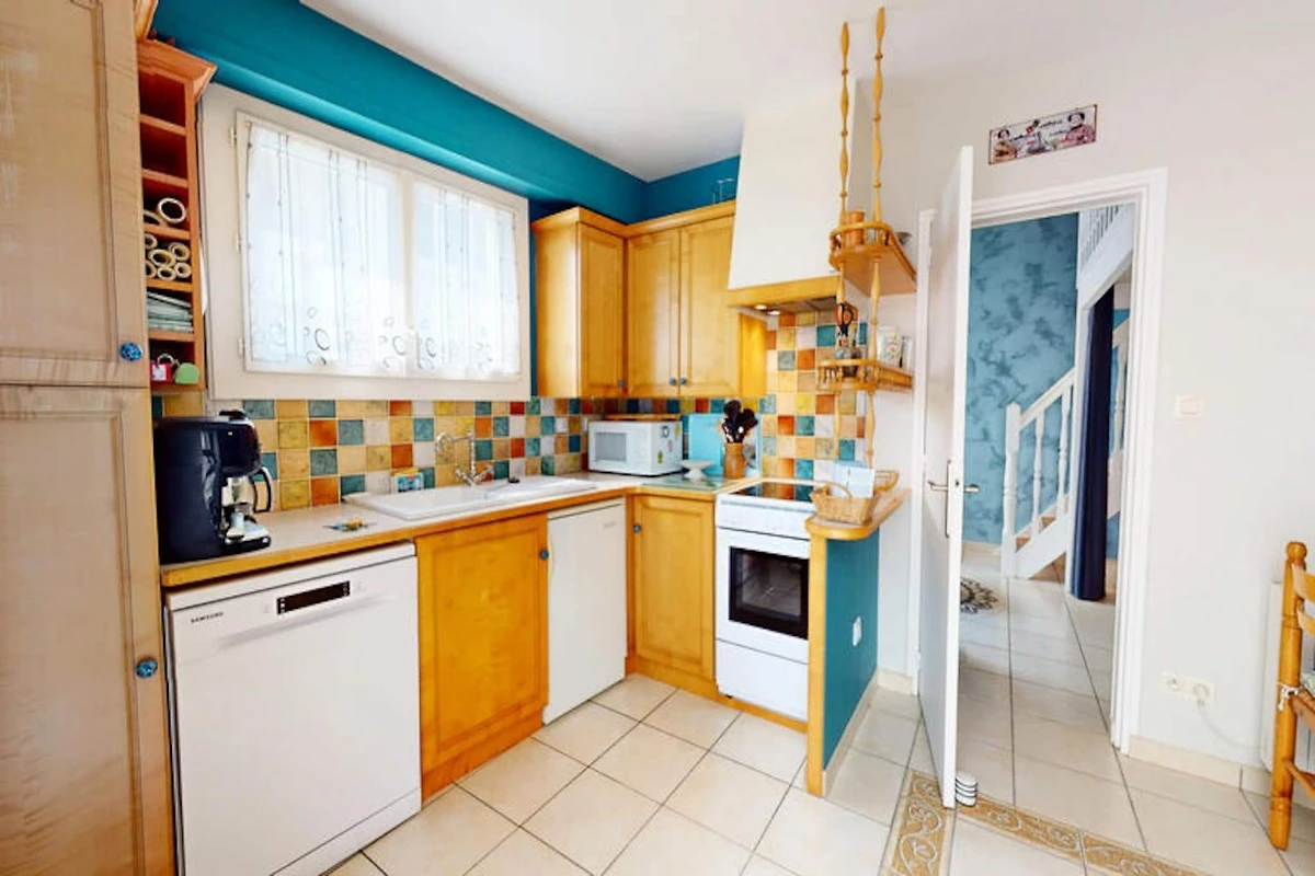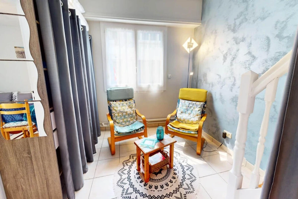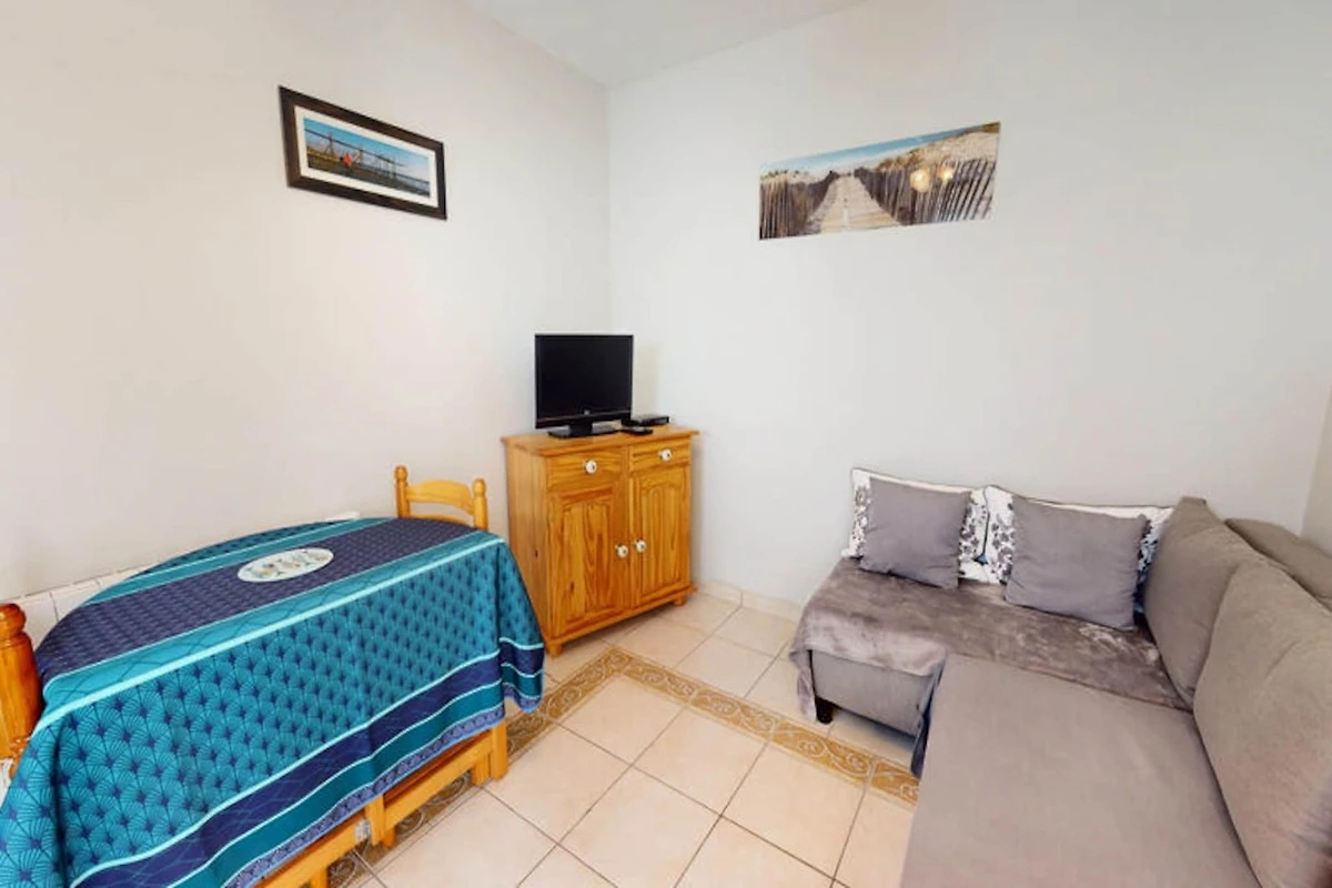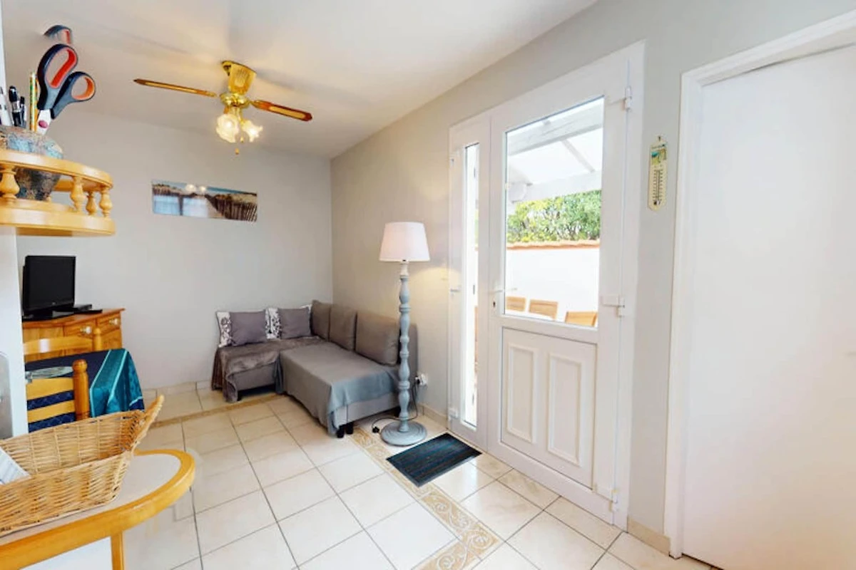 Im charmanten Städtchen Saint-Gilles-Croix-de-Vie, wo das Rauschen der Wellen auf die lebendige Energie des lokalen Lebens trifft, lädt Sie Le Goéland de la Vie zu einem perfekten Küstenurlaub ein. Versteckt in einer ruhigen Straße, liegt dieses entzückende Ferienhaus nur wenige Schritte vom Yachthafen, Sandstränden, lebhaften Märkten und malerischen Geschäften entfernt und bietet eine harmonische Mischung aus Entspannung und Komfort. Ob Sie ruhige Morgenstunden am Meer oder gesellige Abende in der Stadt verbringen möchten – diese Unterkunft ist der ideale Ausgangspunkt. \n\nDas Stadthaus ist durchdacht gestaltet und bietet Komfort und Funktionalität. Im Erdgeschoss erwartet Sie eine voll ausgestattete Küche, perfekt für die Zubereitung frischer Meeresfrüchte aus der Region oder ein entspanntes Frühstück vor Ihren Ausflügen. Angrenzend an die Küche lädt das gemütliche Wohnzimmer zum Verweilen mit einem Buch oder zum Ansehen Ihrer Lieblingssendungen ein. Der Schlafbereich verfügt über ein Doppelbett und eine charmante Nische für ruhige Momente. Im Obergeschoss verströmt ein zweiter Wohnbereich mit Lichterketten, Sofa und Fernseher einen charmanten, verspielten Charakter und führt zu einem geräumigen Schlafzimmer mit vier Einzelbetten – ideal für Familien oder Freundesgruppen. \n\nAuf der privaten Terrasse mit Gartenmöbeln und Grill können Sie gemütlich im Freien speisen oder laue Sommerabende genießen. Zwei Badezimmer, eines davon in praktischer Nähe zur Garage, und ein separates WC sorgen für Komfort für alle Gäste. \n\nSaint-Gilles-Croix-de-Vie bietet eine Fülle an Aktivitäten: Radfahren entlang der Vendée Corniche, Erkundungstouren auf der Île d'Yeu oder ein Besuch der lebhaften Nachtmärkte. Les Sables-d'Olonne und der berühmte Puy du Fou sind nur eine kurze Autofahrt entfernt. Ob Sie Abenteuer oder Entspannung suchen – Le Goéland de la Vie verspricht einen unvergesslichen Aufenthalt an der Küste der Vendée.