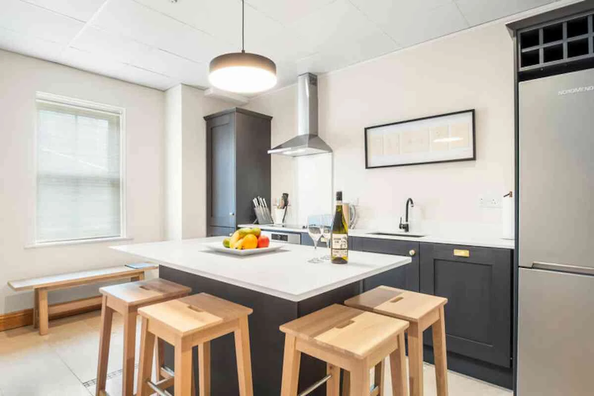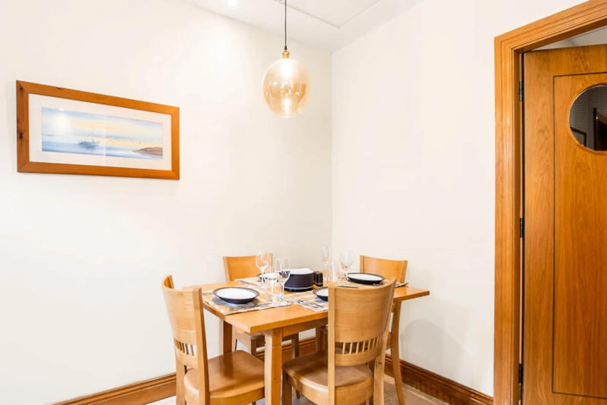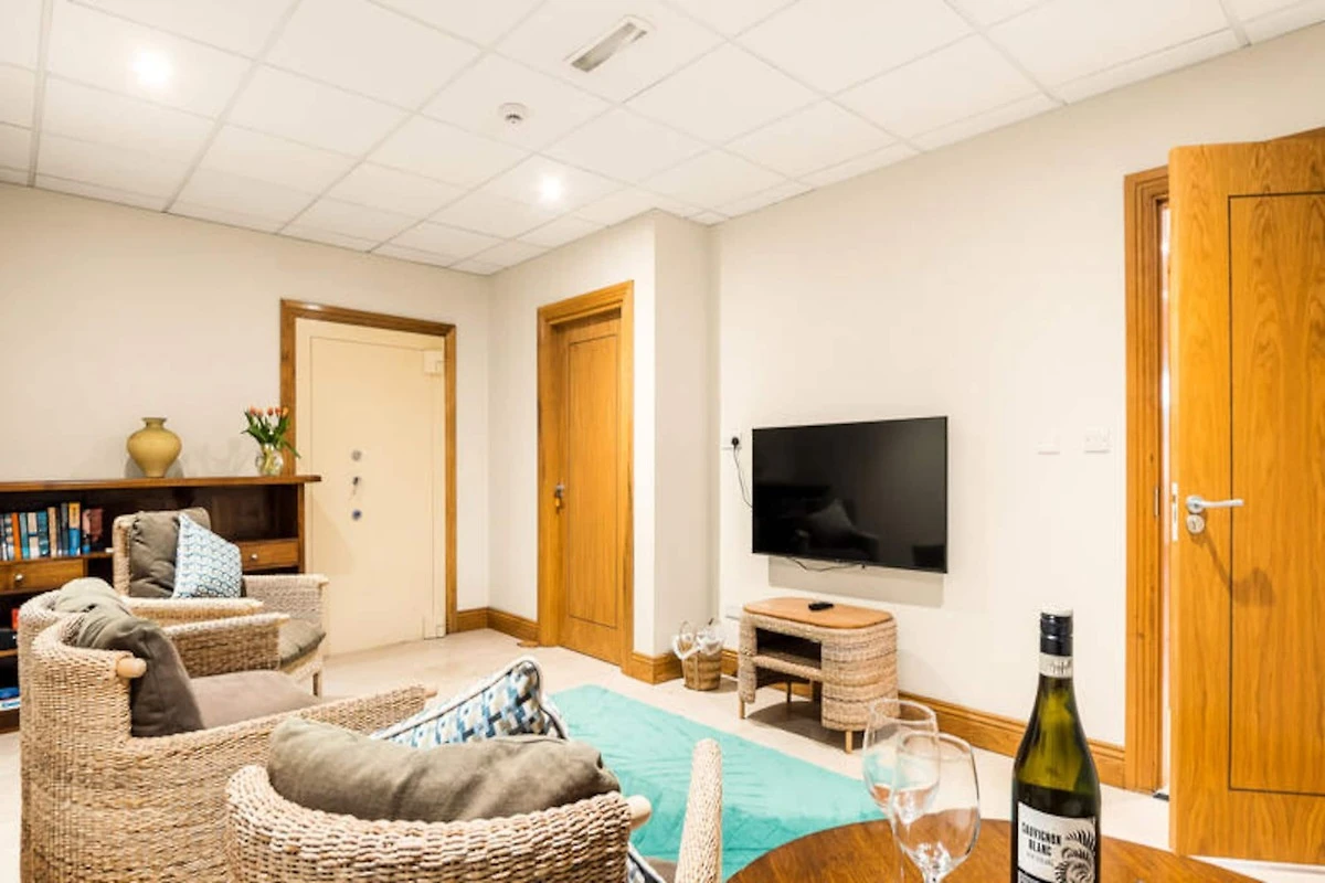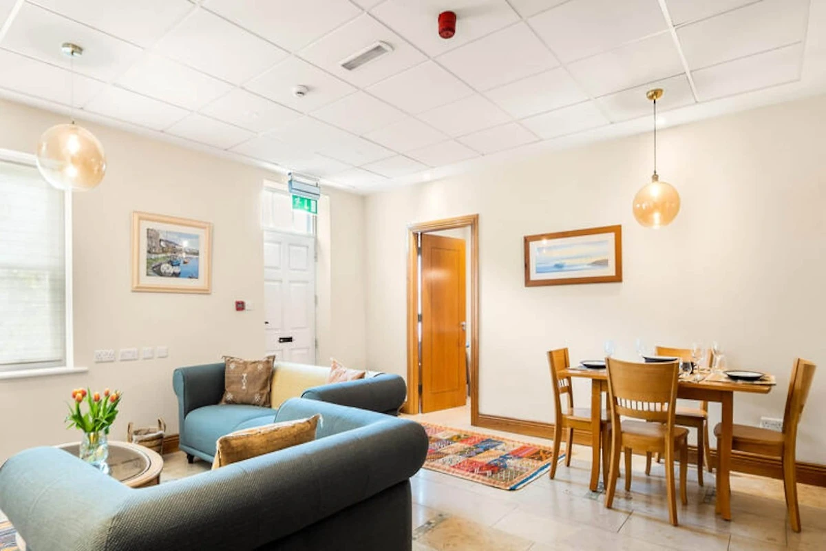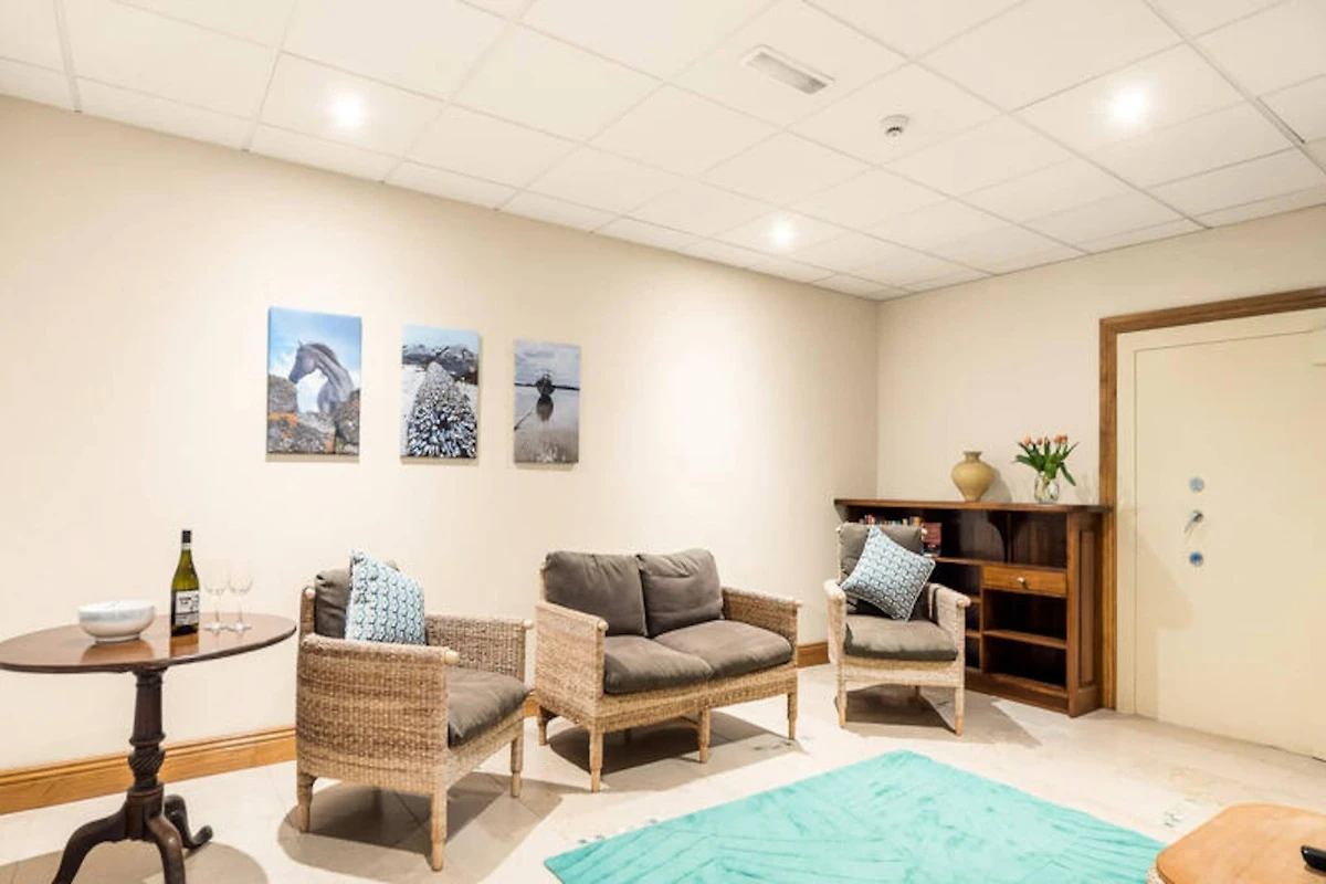 An der rauen Westküste Irlands, wo die Wellen des Atlantiks auf die friedvolle Schönheit Connemaras treffen, bietet dieses charmante Apartment in Clifden einen ruhigen Rückzugsort für alle, die Komfort und Naturverbundenheit suchen. Umgeben von atemberaubenden Landschaften lädt die Unterkunft dazu ein, in den einzigartigen Charme des Wild Atlantic Way einzutauchen – mit seinen sanften Hügeln, imposanten Klippen und dem endlosen Himmel. Ob Sie einen erholsamen Urlaub oder eine abenteuerliche Reise planen, dieses Apartment ist der perfekte Ausgangspunkt, um die Wunder der Region zu entdecken. Das 134 Quadratmeter große Apartment bietet in seinen zwei gemütlichen Schlafzimmern bequem Platz für bis zu vier Gäste. Es ist durchdacht gestaltet und bietet Gartenmöbel, ein umzäuntes Grundstück für mehr Privatsphäre sowie moderne Annehmlichkeiten wie WLAN, Zentralheizung und einen Parkplatz. Die separate Küche ist komplett ausgestattet mit allem, was Sie für die Zubereitung köstlicher Mahlzeiten benötigen, darunter Kühlschrank, Mikrowelle, Backofen, Gefrierschrank, Geschirrspüler und vieles mehr. Zusätzliche Annehmlichkeiten wie Waschmaschine, Trockner und Bügeleisen sorgen für einen unbeschwerten Aufenthalt, während Details wie ein Haartrockner Ihren Komfort erhöhen. Clifden, oft als Hauptstadt von Connemara bezeichnet, ist nur wenige Minuten entfernt und bietet eine reizvolle Mischung aus Boutiquen, traditionellen Pubs und Gourmetrestaurants. In der Nähe finden Sie traumhafte Strände, malerische Wanderwege und historische Sehenswürdigkeiten wie Kylemore Abbey und die Sky Road, die einige der spektakulärsten Aussichten Irlands bietet. Für Outdoor-Fans gibt es zahlreiche Möglichkeiten zum Wandern, Radfahren und Reiten, und das reiche kulturelle Erbe der Region verspricht unvergessliche Erlebnisse für alle. Ob Sie im Garten Tee genießen oder die unberührte Schönheit von Connemara erkunden – dieses Apartment bietet eine einladende Oase, in der unvergessliche Erinnerungen entstehen. Lassen Sie sich während Ihres Aufenthalts vom Zauber der irischen Westküste verzaubern.