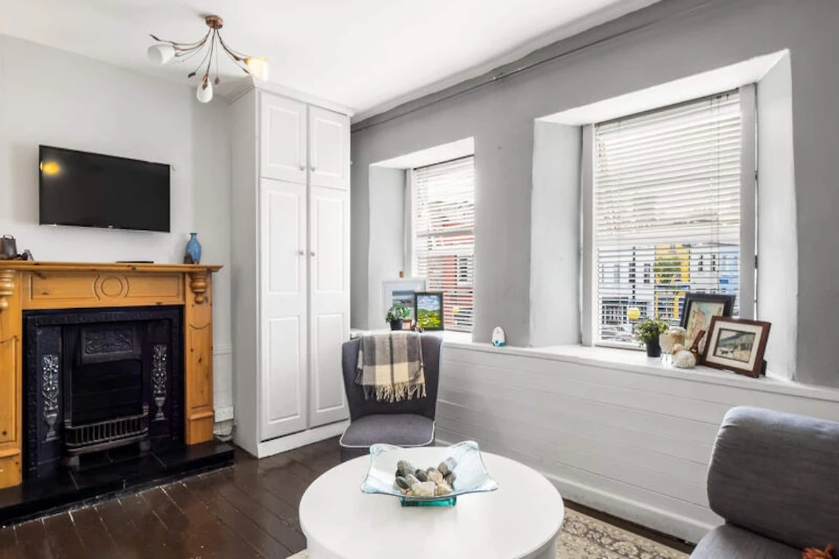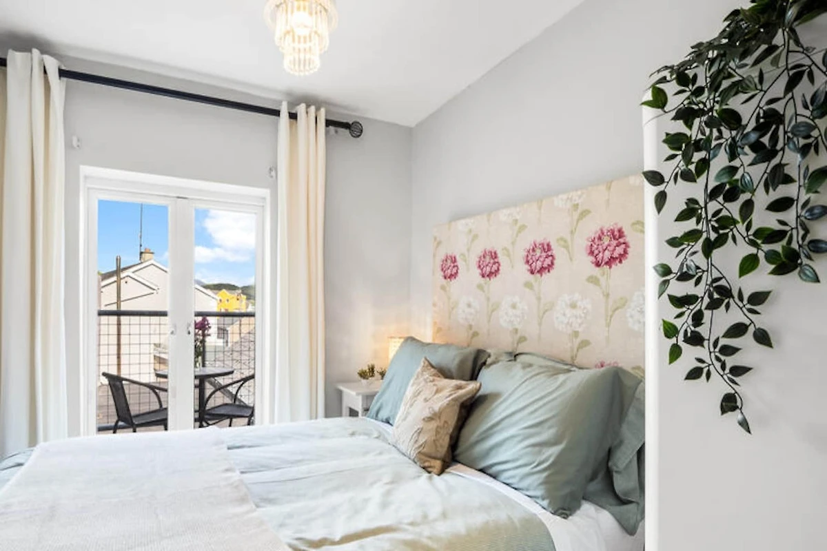 An der rauen Küste des Wild Atlantic Way in Irland bietet dieses charmante Apartment in Clifden einen intimen Rückzugsort für zwei Personen. Mit seinem gemütlichen Ambiente und der atemberaubenden Umgebung ist es der perfekte Ausgangspunkt, um die unberührte Schönheit Connemaras zu entdecken. Stellen Sie sich vor, Sie wachen mit der frischen Meeresbrise auf und genießen Ihren Morgenkaffee auf Ihrem privaten Balkon, dessen Aussicht ebenso inspirierend ist wie die Landschaften, die auf Ihre Abenteuer warten. Ob Sie Ruhe suchen oder die Natur erkunden möchten – diese Unterkunft lädt Sie ein, den Zauber der irischen Westküste zu erleben. \n\nDas Apartment erstreckt sich über 100 m² durchdacht gestalteten Raum und vereint Komfort und Funktionalität. Die offene Küche ist mit modernen Geräten wie Elektroherd, Backofen, Mikrowelle und Kühlschrank ausgestattet, sodass Sie Ihre Mahlzeiten mühelos zubereiten können. Der Wohnbereich mit Kamin und Fernseher bietet einen warmen und einladenden Ort zum Entspannen nach einem erlebnisreichen Tag. Zusätzliche Annehmlichkeiten wie WLAN, elektrische Heizung, Waschmaschine und Haartrockner sorgen für einen unbeschwerten Aufenthalt. Das Schlafzimmer, das für erholsame Nächte konzipiert wurde, trägt zum gemütlichen und charmanten Ambiente bei. Clifden, oft als Hauptstadt von Connemara bezeichnet, ist eine lebendige Stadt voller Charakter. Von traditionellen Pubs und Kunsthandwerksläden bis hin zu malerischen Fahrten entlang der Sky Road – es gibt unzählige Möglichkeiten, Ihren Aufenthalt zu bereichern. In der Nähe finden Sie unberührte Strände, anspruchsvolle Wanderwege und kulturelle Sehenswürdigkeiten, die Irlands reiches Erbe widerspiegeln. Ob Sie Kylemore Abbey erkunden oder die Panoramablicke im Derrigimlagh Bog genießen – jeder Moment bietet die Gelegenheit, Natur und Geschichte hautnah zu erleben. Dieses Apartment ist mehr als nur eine Unterkunft; es ist das Tor zu unvergesslichen Erlebnissen. Lassen Sie sich vom Charme Clifdens und dem Zauber Connemaras verzaubern und schaffen Sie Erinnerungen, die noch lange nach Ihrer Reise nachklingen werden.