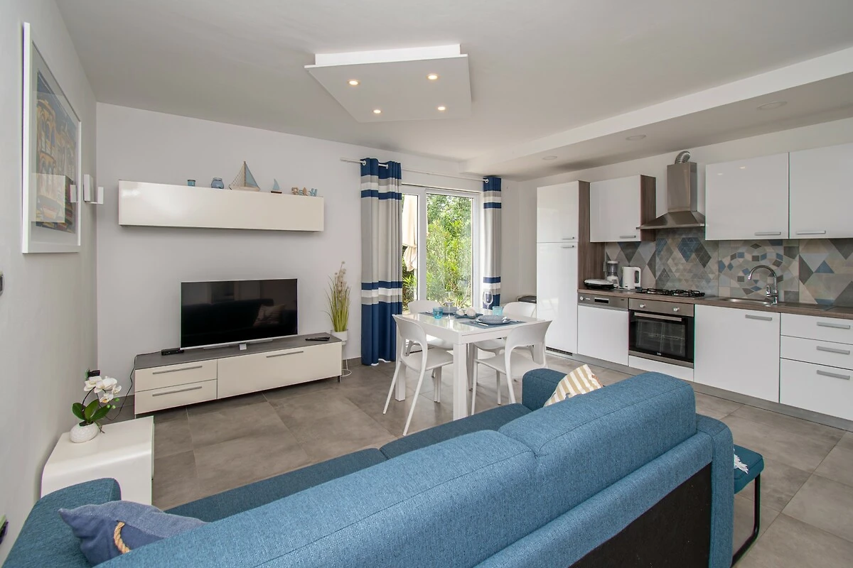 Die Villa besteht aus drei separaten Wohneinheiten, die ausschließlich als Ganzes vermietet werden. Jede verfügt über ein eigenes Wohnzimmer, eine Küche, Schlafzimmer, ein Badezimmer und eine Waschmaschine, was den Gästen Komfort und Unabhängigkeit garantiert.
