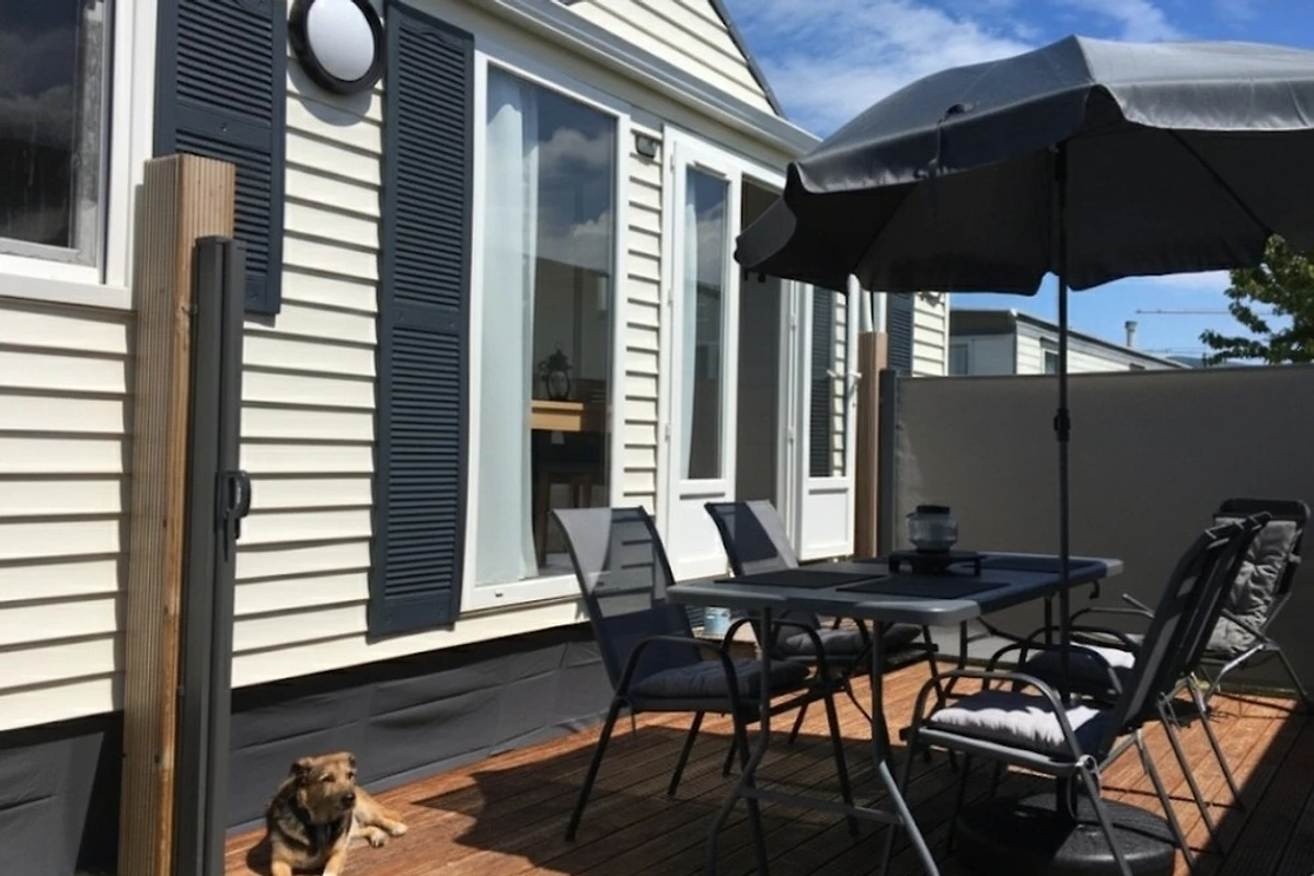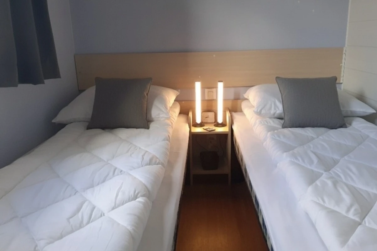 Das Mobilheim verfügt über 2 Schlafzimmer .