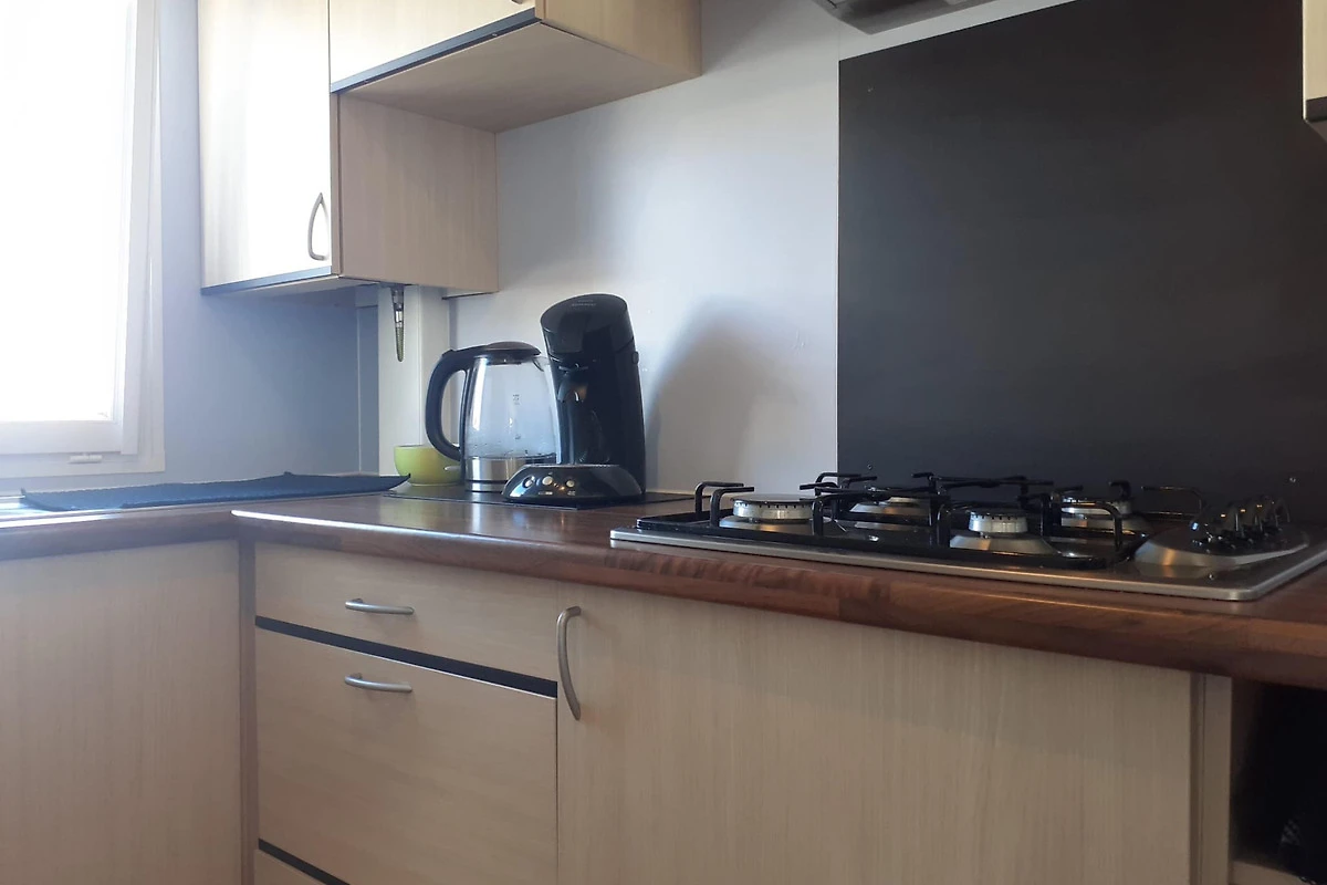 Küche mit Gasherd (komplett eingerichtet, nur Geschirrtücher müssen mitgebracht werden)