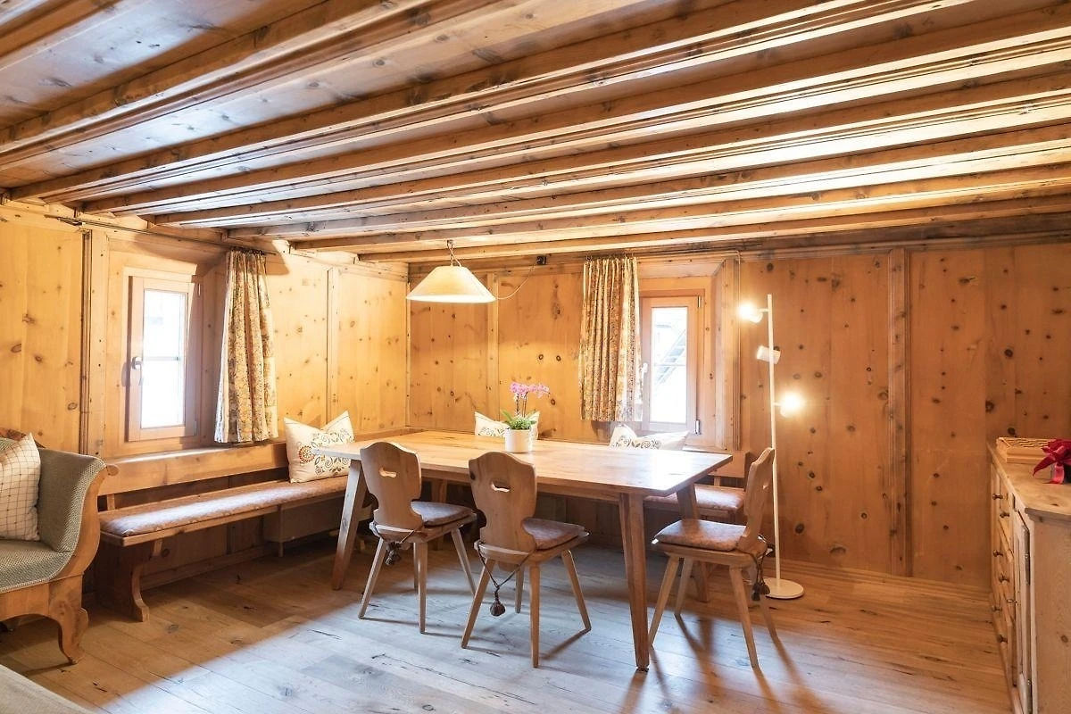 Die Wohnung Muragl vereint grosszügigen Wohnraum mit traditionellem Engadiner Stil und modernem Komfort. Besonders hervorzuheben ist das elegante Wohnzimmer mit Cheminée, Ledersofas und antiken Möbeln, die eine warme, stilvolle Atmosphäre schaffen. Die angrenzende Engadinerstube mit Esstisch, Eckbank und zusätzlichem Sofa lädt zu geselligen Stunden ein, während die Galerie mit zwei weiteren Betten ideal für Familien oder Freunde ist. Die historische Gewölbeküche ist vollständig ausgestattet und bietet Platz zum gemeinsamen Kochen und Geniessen. Ein Badezimmer mit Badewanne und ein separates WC ergänzen den Wohnkomfort. Durchdachte Details wie WLAN, Netflix-TV und Bodenheizung sorgen für ein zeitgemässes Ambiente, während das Haus selbst Geschichte und authentischen Engadiner Charme ausstrahlt. Hunde sind herzlich willkommen, und der Check-in erfolgt bequem über eine Schlüsselbox.