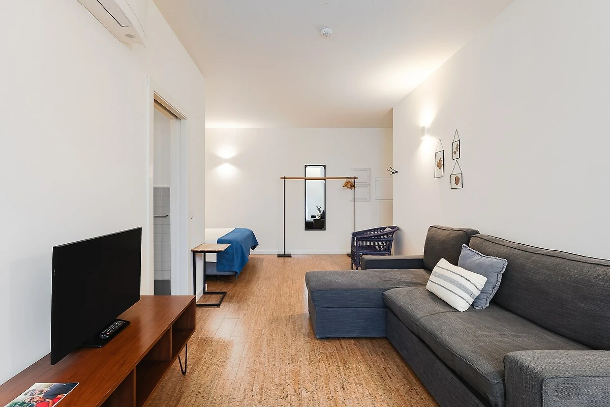 On Trend Nightlife Studio Entdecken Sie diese elegante 48 m² große Wohnung, ideal für 4 Personen, wo sich modernes Design mit Komfort an einem privilegierten Standort im Herzen von Porto verbindet. Sie besteht aus einem Schlafzimmer mit Queen-Size-Bett, einem Doppelsofa und einem mit Dusche ausgestatteten Badezimmer. Ideal für Paare oder Freunde Diese Wohnung wurde so konzipiert, dass sie sowohl Paare als auch Freunde aufnehmen kann. • Kinderbett auf Anfrage verfügbar, was es ideal für Reisende mit Babys macht Komfort und Stil Diese Wohnung bietet eine gemütliche und stilvolle Atmosphäre, perfekt zum Entspannen nach einem Tag voller Entdeckungen: • Ein kostenloses Fernsehgerät und WLAN, das sicherstellt, dass Sie immer verbunden sind • In der Nähe des Gebäudes befindet sich ein Parkplatz. • Haartrockner • Haustiere erlaubt • Bügeleisen • Zugang zur Dachterrasse von 100 m² im obersten Stockwerk des Gebäudes mit Panoramablick auf die Stadt • Kostenparkplatz in 400 m Entfernung, vorbehaltlich Verfügbarkeit Küchenzeile Bereiten Sie Ihre Mahlzeiten mit absoluter Leichtigkeit in der voll ausgestatteten Küche: • Küchenutensilien, Induktionsherd, Kühlschrank, Gefrierschrank, Toaster, Fritteuse, elektrischer Krug und Mikrowelle • Kaffeemaschine für einen belebenden Tagesbeginn • Geschirrspülmaschine und Waschmaschine für Komfort während Ihres Aufenthalts • Zugang zum gesamten Apartment und Annehmlichkeiten, ohne Einschränkungen und exklusiv. Unvergleichliche Lage Die Rua Galerias de Paris ist bekannt für ihr Nachtleben, wie der Name der Wohnung schon andeutet, da sie sich in einer Straße befindet, die voller Restaurants, Bars und einiger Diskotheken ist, sodass der leichte Zugang und Unterhaltung kein Problem darstellen. • Umgeben von Attraktionen und Sehenswürdigkeiten, wenn es um portugiesische Gastronomie geht, befindet sich diese Wohnung etwa 100 m vom weltberühmten Hard Rock Café und der Cervejaria Levar entfernt, die sich etwa 750 m entfernt befindet, mit den berühmten Francesinhas. • Das Krankenhaus Santo António befindet sich ebenfalls etwa 500 m entfernt, falls ein Notfall vorliegt, und es gibt auch eine Apotheke in 3 Minuten Entfernung. Personalisierte Erfahrung Obwohl der Check-in selbstständig über einen digitalen Schlüssel erfolgt, kann Ihr Aufenthalt mit unseren personalisierten Services noch besonders werden: • Privater Transferservice für einen komfortablen Transport zum und vom Flughafen • Frühstück im Apartment serviert, um den Tag auf die beste Art und Weise zu beginnen • Bootsfahrten mit Porto-Weinprobe, perfekt zum Entspannen und Landschaftsgenuss • Ausflüge ins Alto Douro Vinhateiro, per Boot oder 4x4, um eine der atemberaubendsten Weinregionen zu entdecken • Ein Parkplatz in wenigen Minuten von der Unterkunft entfernt ist gegen einen Aufpreis und vorbehaltlich der Verfügbarkeit erhältlich Genießen Sie unvergessliche Momente und lassen Sie sich von der Magie der Stadt verzaubern – Feel Porto!