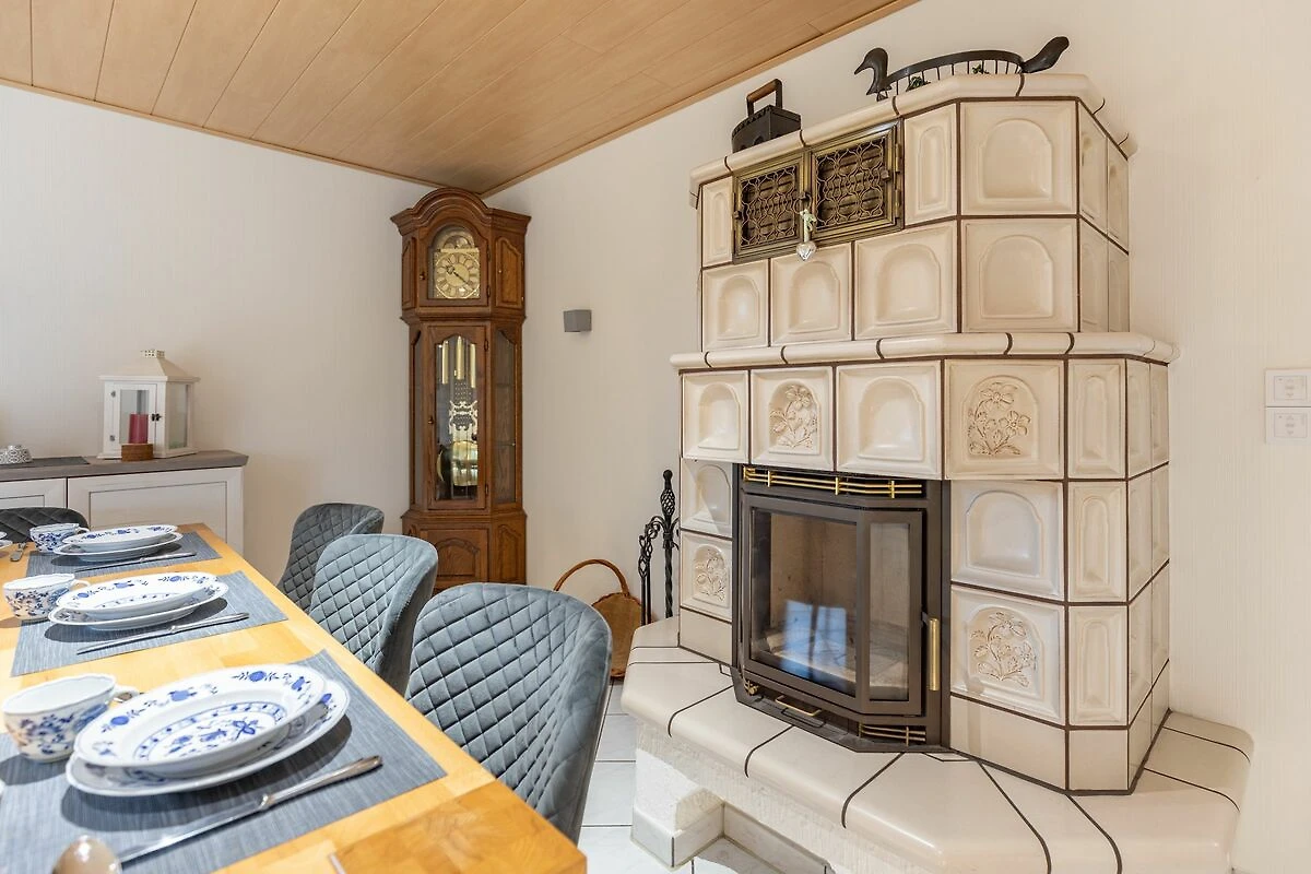 Im Erdgeschoss erwarten Sie ein behagliches Wohn- und Esszimmer mit Kachelofen, eine moderne Küche sowie ein barrierefreies Badezimmer.