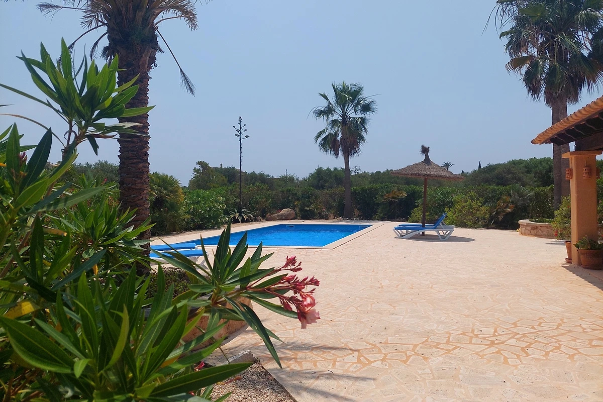 Die schöne Finca Sila liegt in ruhiger Lage nahe Santanyí im sonnigen Süden Mallorcas. Auf einem rund 9.800 m² großen Grundstück mit mediterranem Garten genießen Sie absolute Ruhe und Privatsphäre – perfekt für Familien und Paare, die Erholung suchen. Das charmante Haus bietet 180 m² Wohnfläche für bis zu 6 Personen mit 3 Schlafzimmern und 2 modernen Bädern. Zur Ausstattung gehören WLAN, Ventilatoren, Fußbodenheizung, Waschmaschine und Fliegengitter an den Fenstern.
