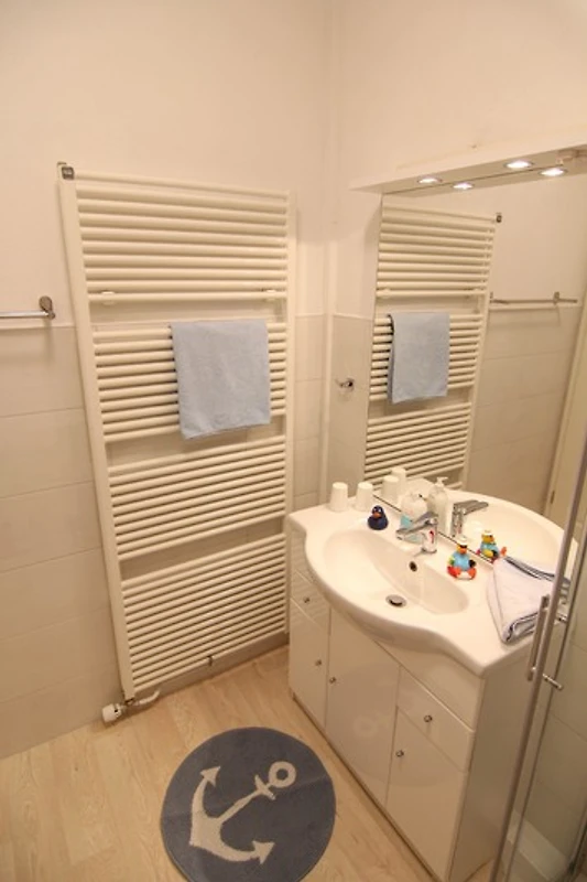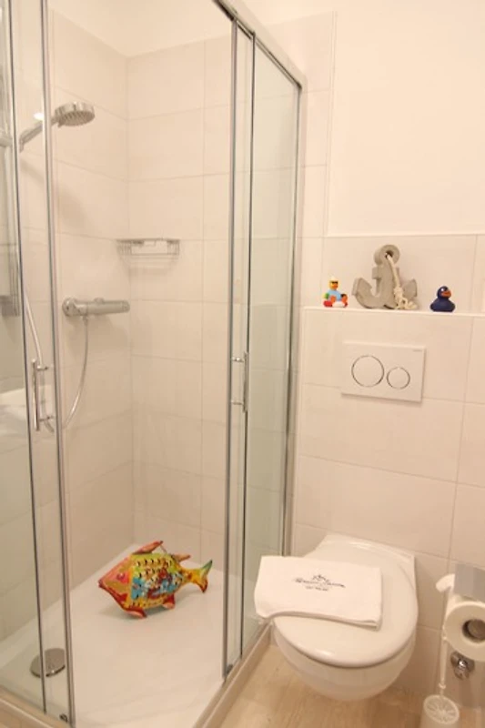 Das Duschbad ist innenliegend. Fön vorhanden.