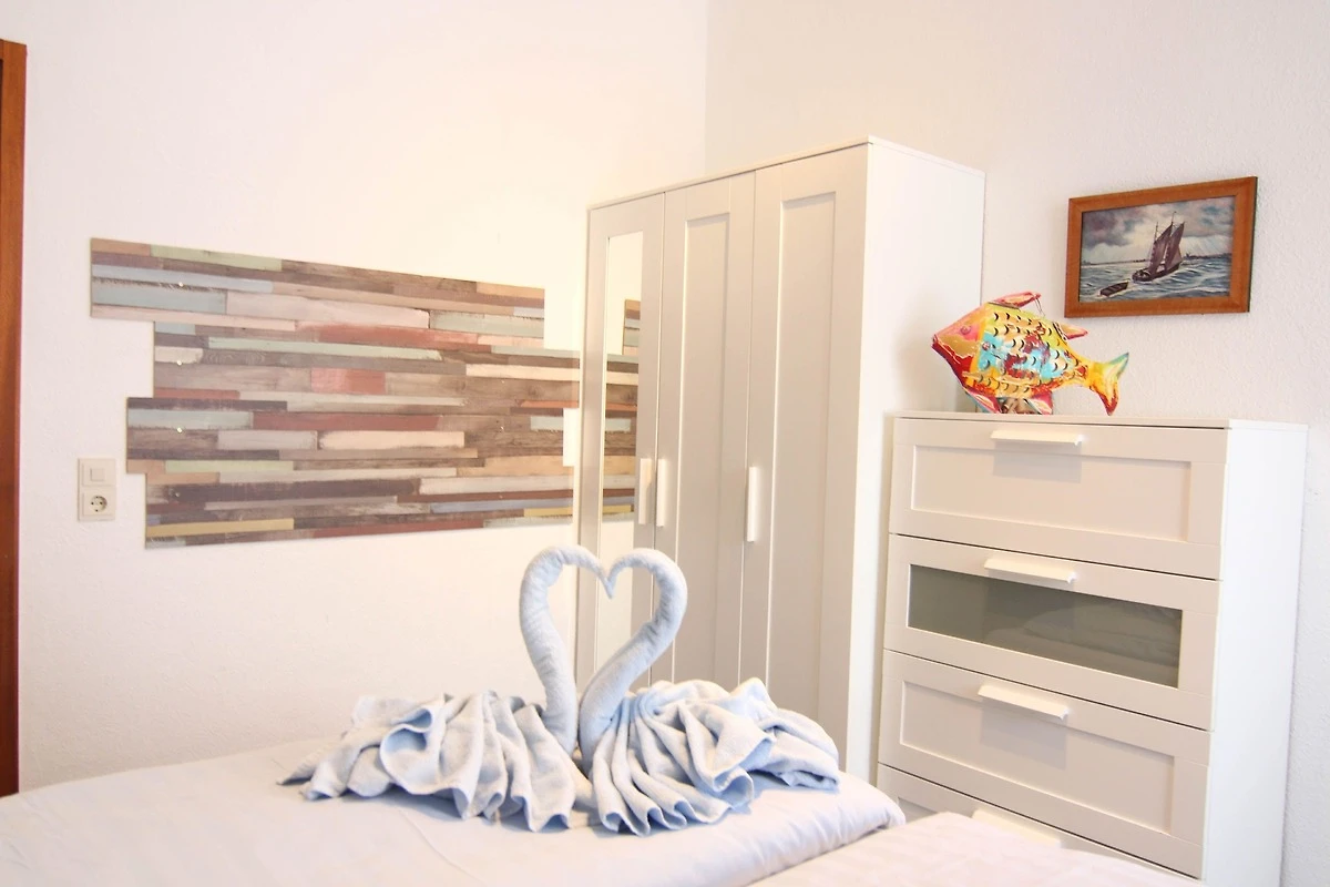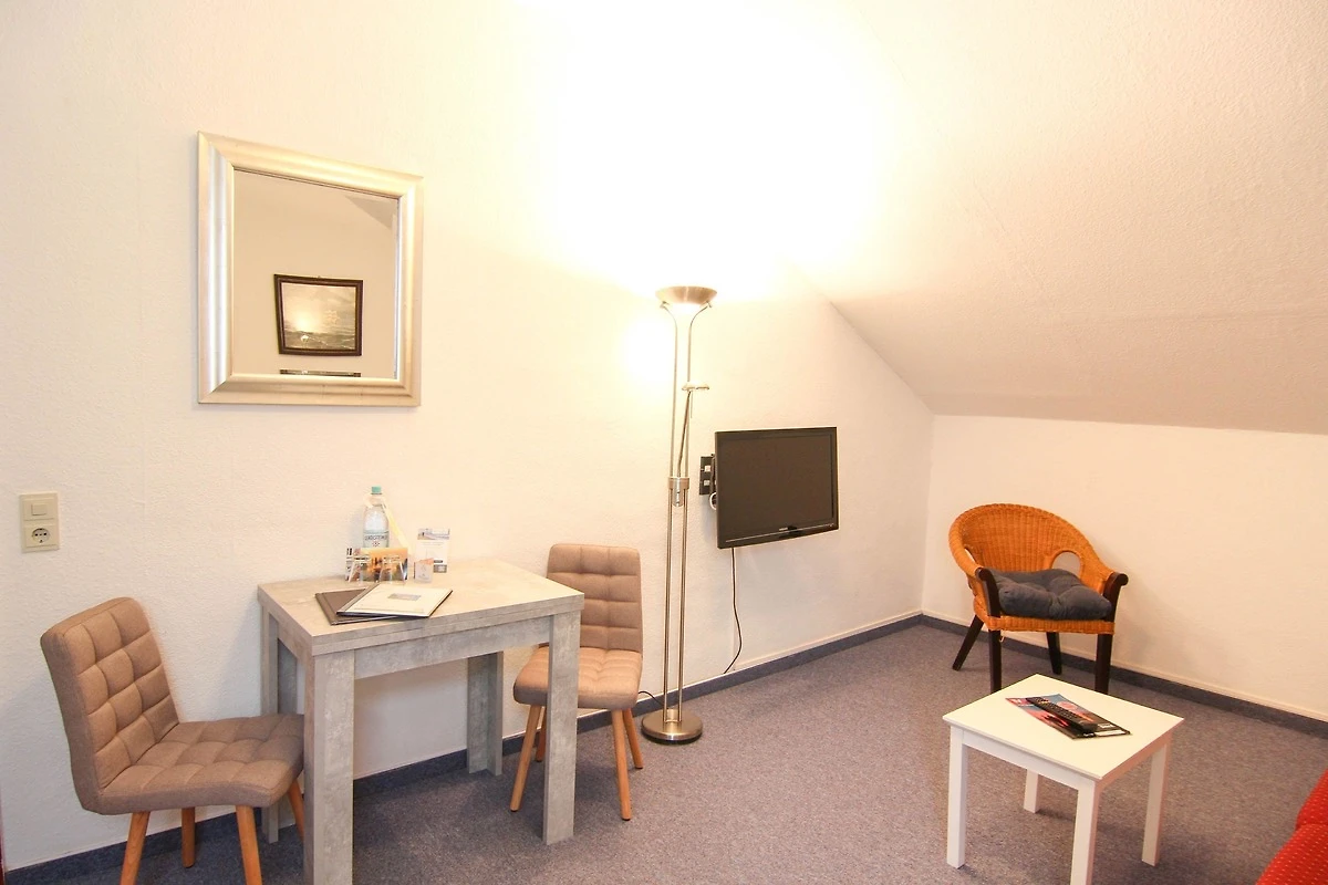 Das Zimmer " Blanker Hans " bietet Platz für die gesamte Familie. Das Schlafzimmer verfügt über ein 2x2 Ehebett, Kommode, Schrank. Im Wohnzimmer bietet das Schlafsofa weiteren Platz für zwei Personen. Das Wohnzimmer verfügt des weiteren über eine Sitzecke zum gemütlichem Beieinander.