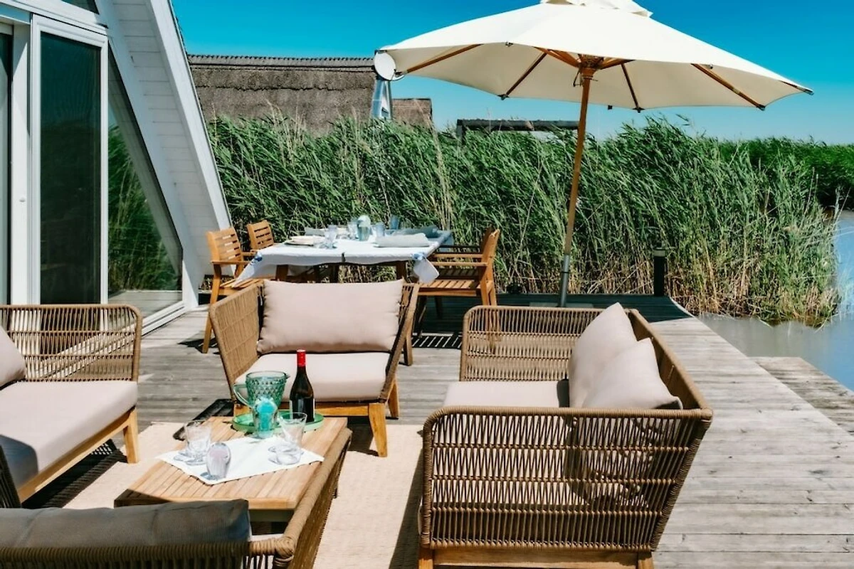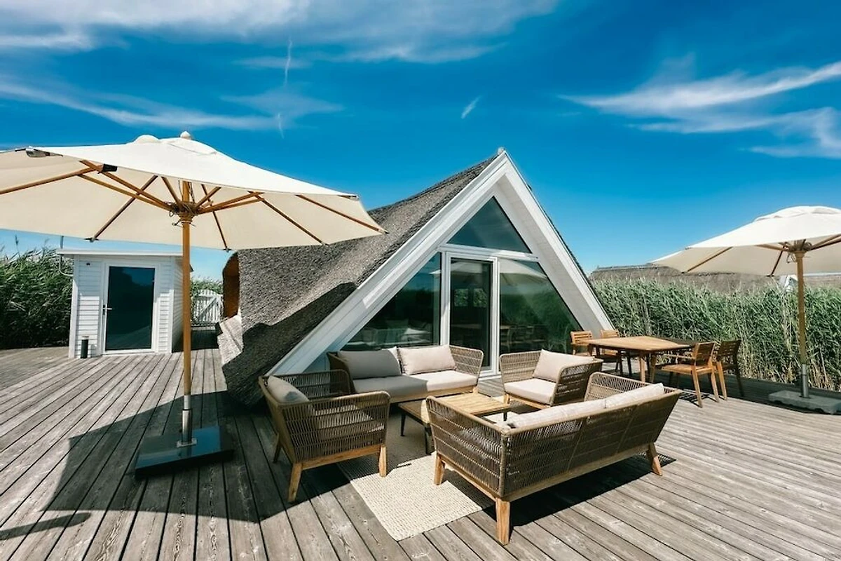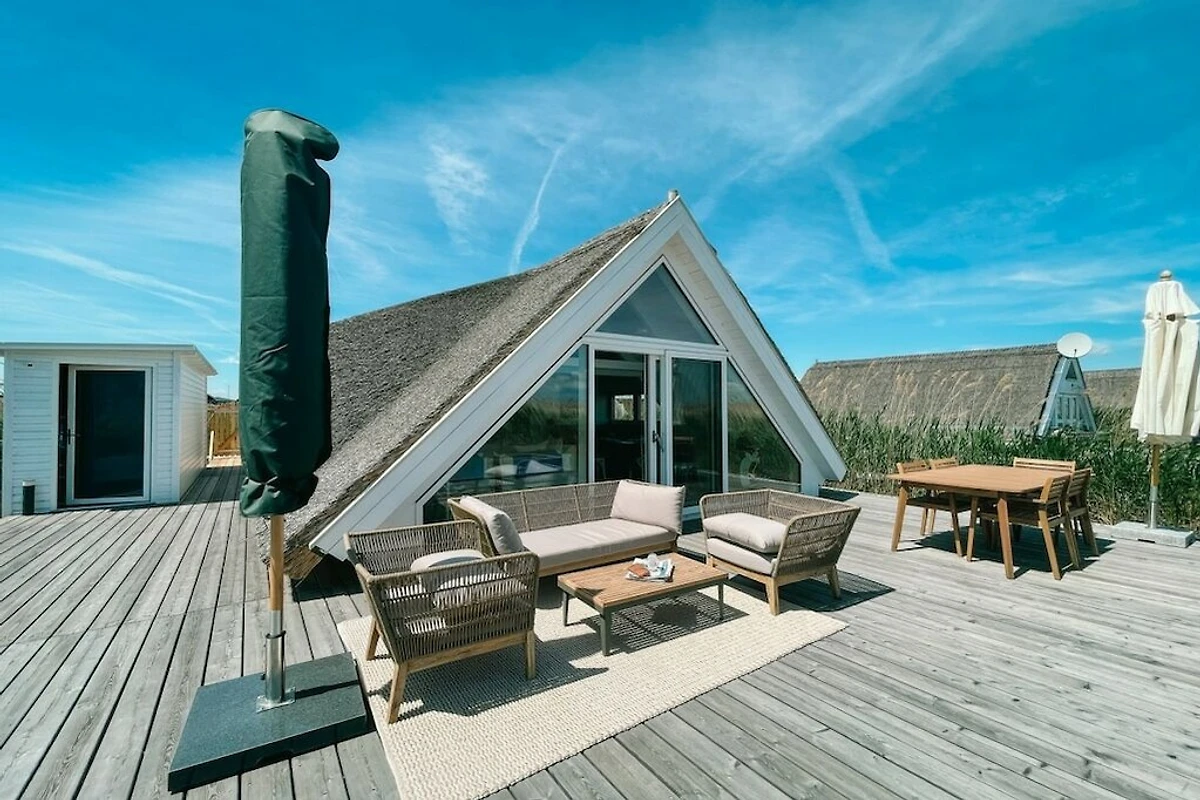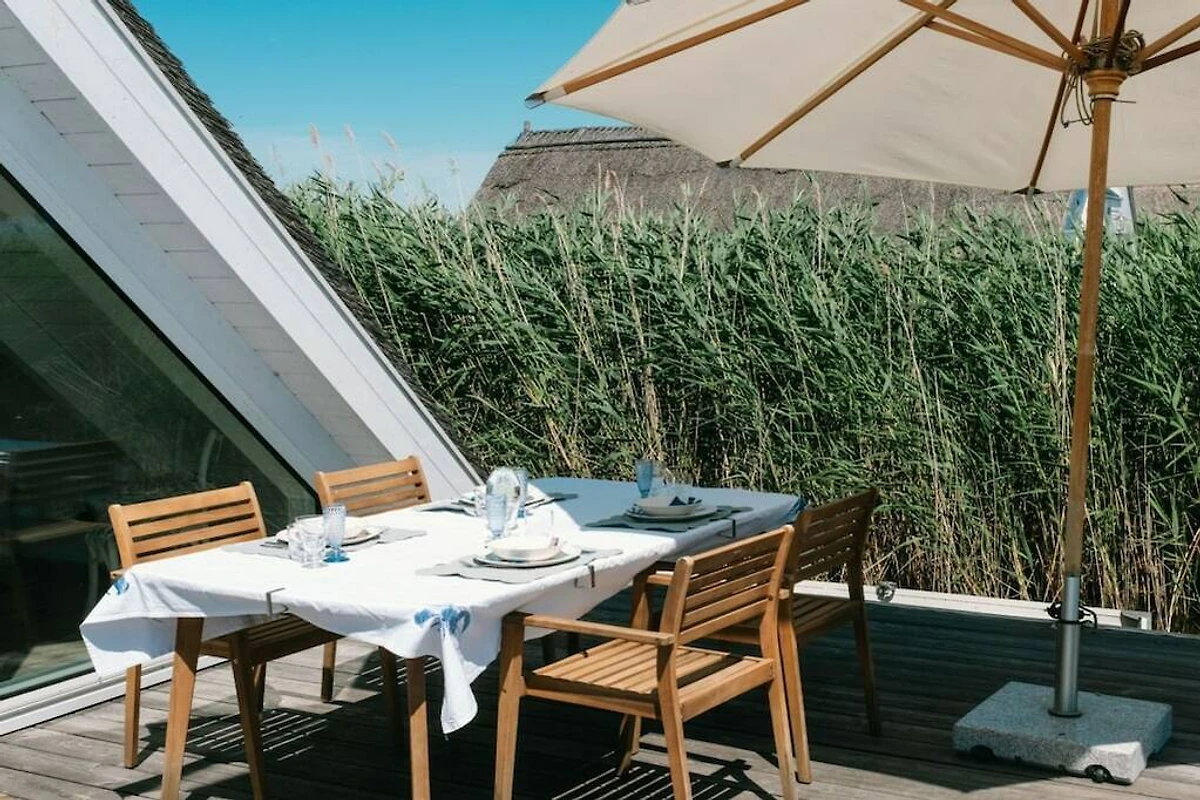 Platz gibt’s genug: Das Sonnenschilf, diese malerische Seehütte, bietet Ihnen 67 Quadratmeter zum Wohlfühlen – ebenerdig und in einer romantischen Schlafkoje, direkt unter dem Dach. Ein Wohnzimmer, zwei Schlafzimmer, eine voll ausgestattete Küche, ein Badezimmer – und ein besonderes Highlight: das 130 Quadratmeter große Sonnendeck mit Outdoordusche, Esstisch und Elektrogriller. Perfekt für entspannte Tage und Abende!