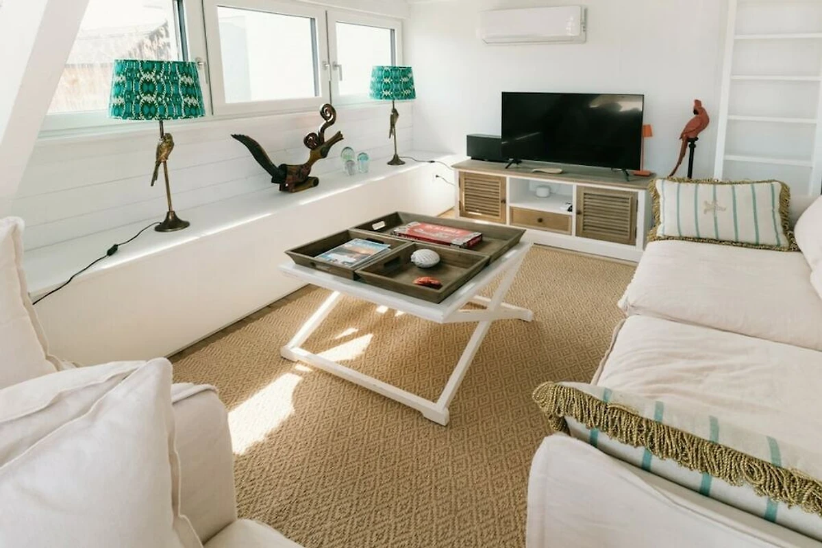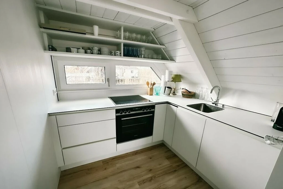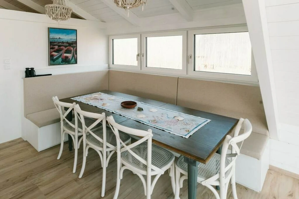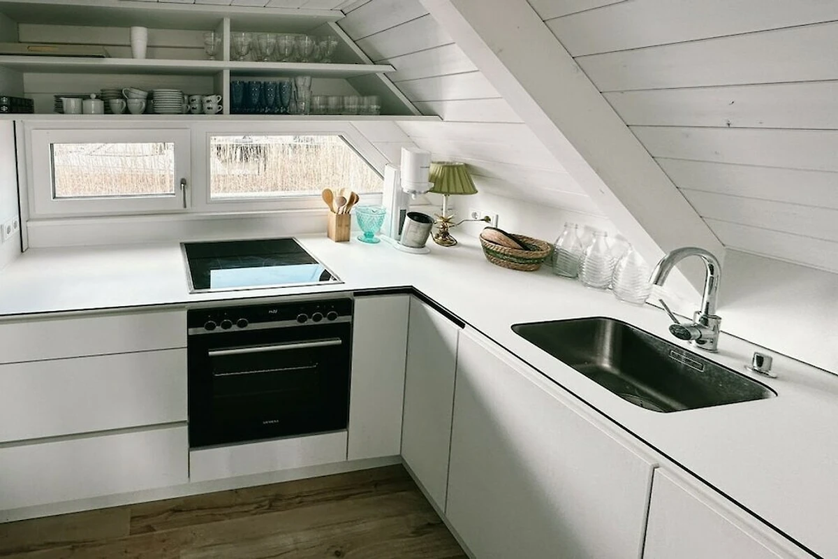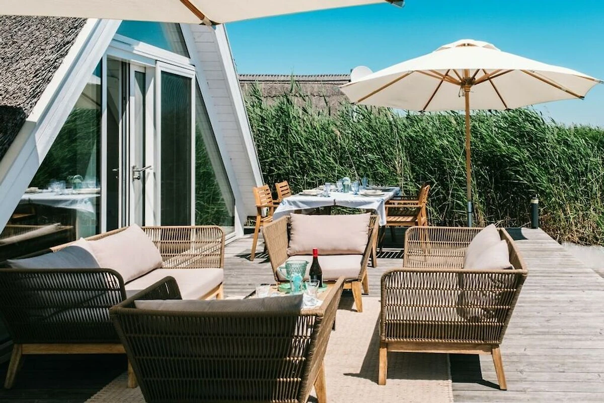 Platz gibt’s genug: Das Sonnenschilf, diese malerische Seehütte, bietet Ihnen 67 Quadratmeter zum Wohlfühlen – ebenerdig und in einer romantischen Schlafkoje, direkt unter dem Dach. Ein Wohnzimmer, zwei Schlafzimmer, eine voll ausgestattete Küche, ein Badezimmer – und ein besonderes Highlight: das 130 Quadratmeter große Sonnendeck mit Outdoordusche, Esstisch und Elektrogriller. Perfekt für entspannte Tage und Abende!