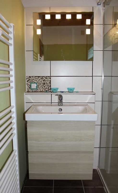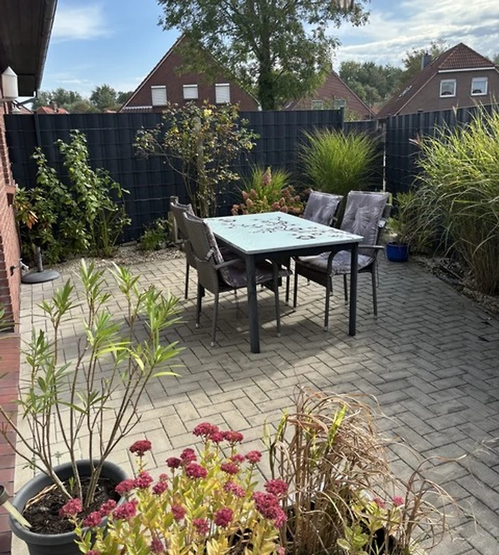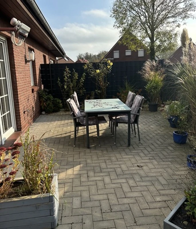 Die Wohnung befindet sich im Erdgeschoss und verfügt über eine große Terrasse. Von der Terasse geht es in einen kleinen Garten, der komplett eingezäunt ist. Für E-Bikes und Fahrräder ist ein überdachter Unterstand vorhanden. Eine Waschmaschine ( gegen Gebühren ) ist vorhanden.