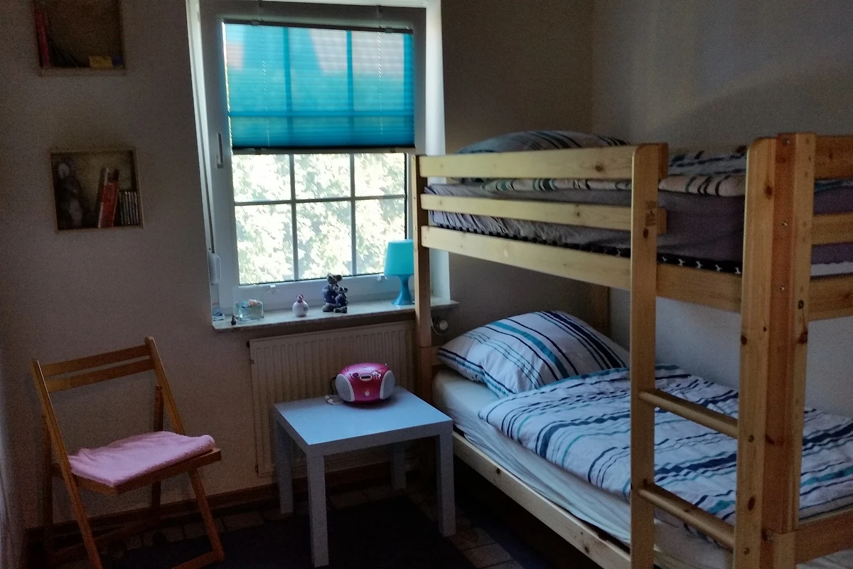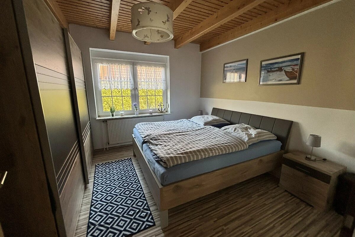 In einem Schlafzimmer befindet sich ein Doppelbett mit großen Kleiderschrank und im weiteren Zimmer ein Stockbett mit Kleiderschrank. Das moderne Schlafzimmer wurde im Jahr 2025 komplett erneuert, inklusiv hochwertiger Matrazen und Lattenroste. Ein zusätlicher Ferseher ist im Schlafbereich vorhanden.