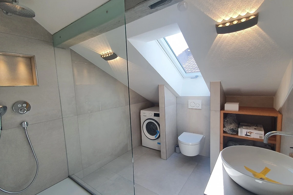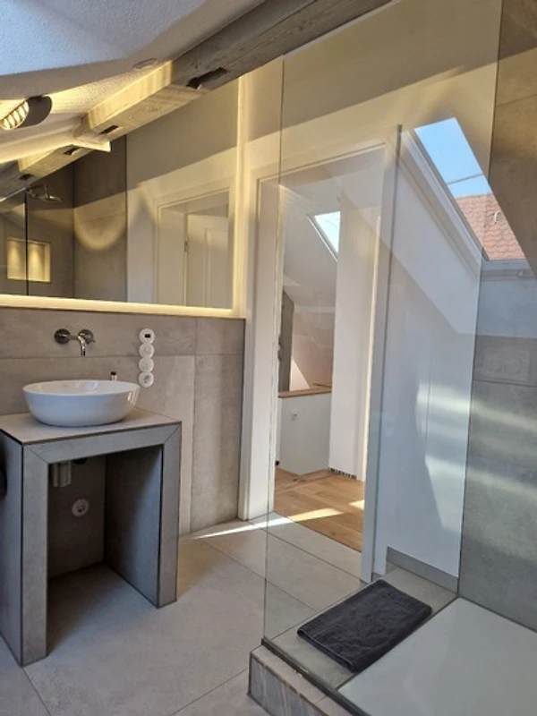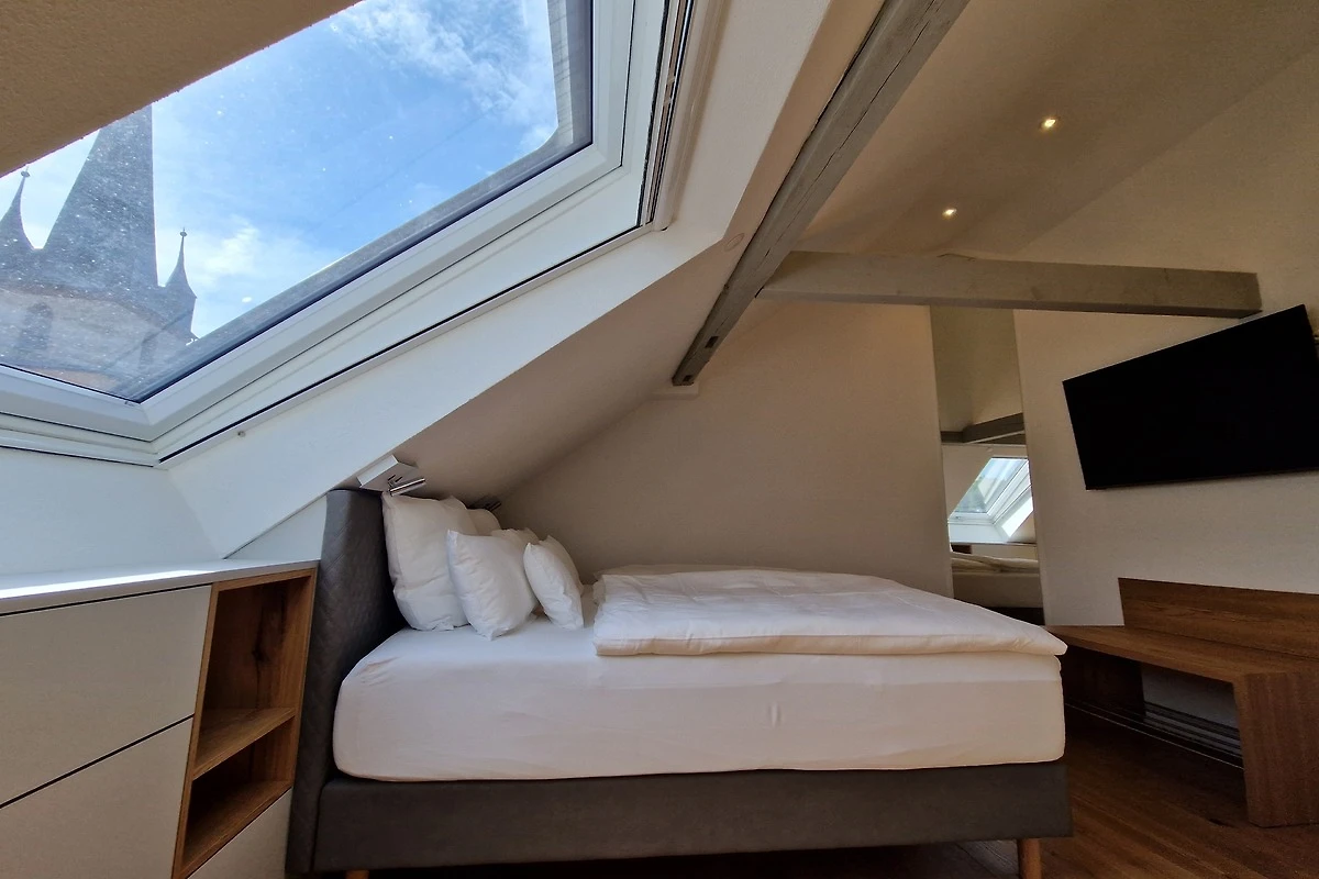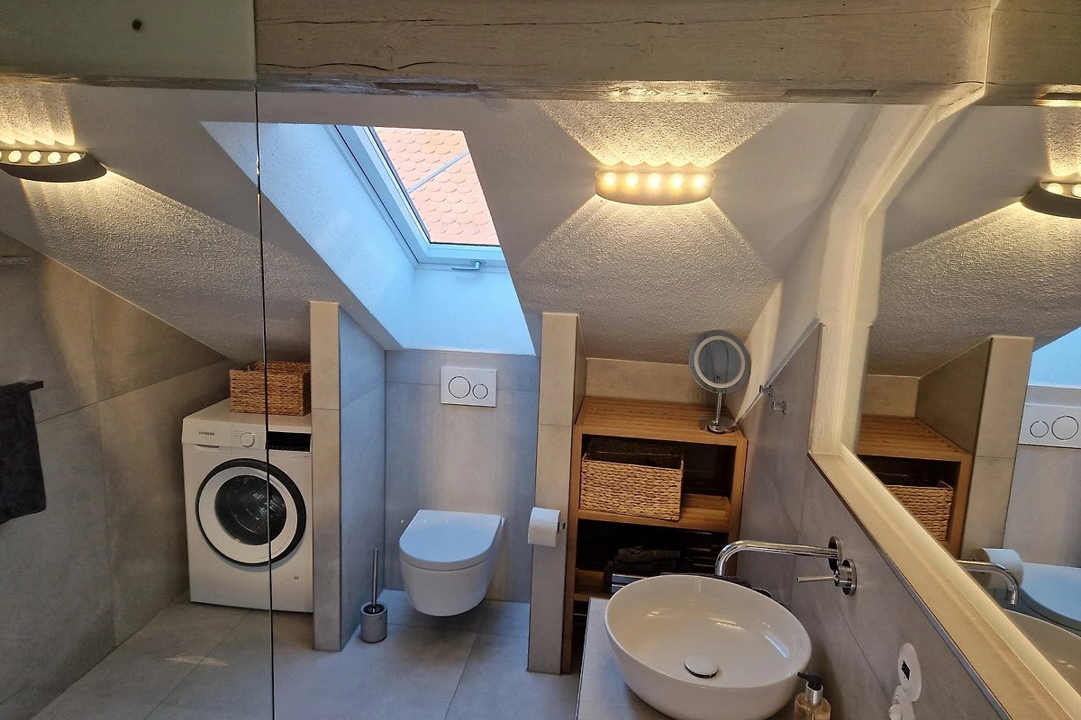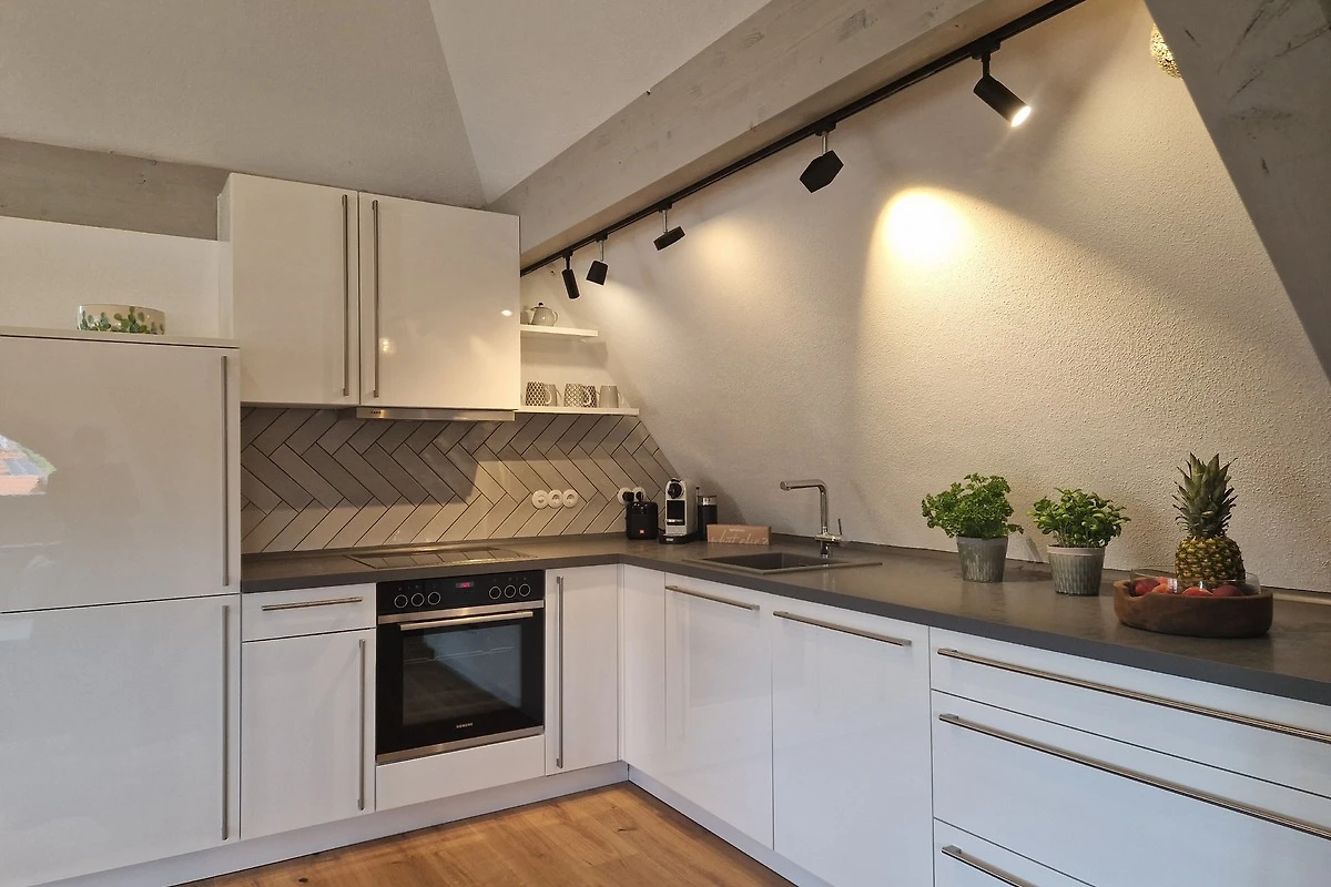 Die stilvoll sanierte Dachgeschosswohnung "gute Stube" bietet Eichenparkett, Kalkputz und kostenfreies WLAN für ein gesundes Wohnklima. Sie verfügt über ein grosszügiges Schlafzimmer mit Boxspringbett(180x200cm) sowie ein separates Zimmer mit 140x200 cm-Bett für einen Erwachsenen oder zwei Kinder. Die geräumige Wohnküche mit Ledersofaecke, Essbereich und moderner Ausstattung lädt zum Verweilen ein. Ein Bad mit Regendusche, Waschtrockner und eine E-Ladestation ( gegen Gebühr ) im Hof ergänzen das komfortable Angebot.Zeige weniger