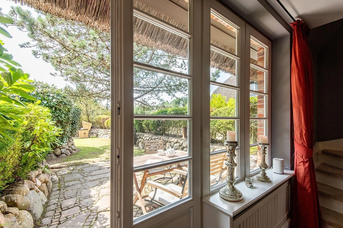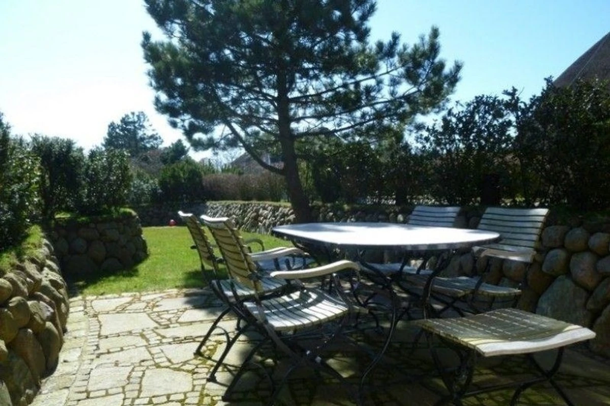 Im Herzen Kampens und ruhig gelegenes edles Reetdachhaus, durch einen Gartenweg von der Strasse entfernt, herrlich eingewachsenes Grundstück mit eigenem sonnigen Süd-Garten.